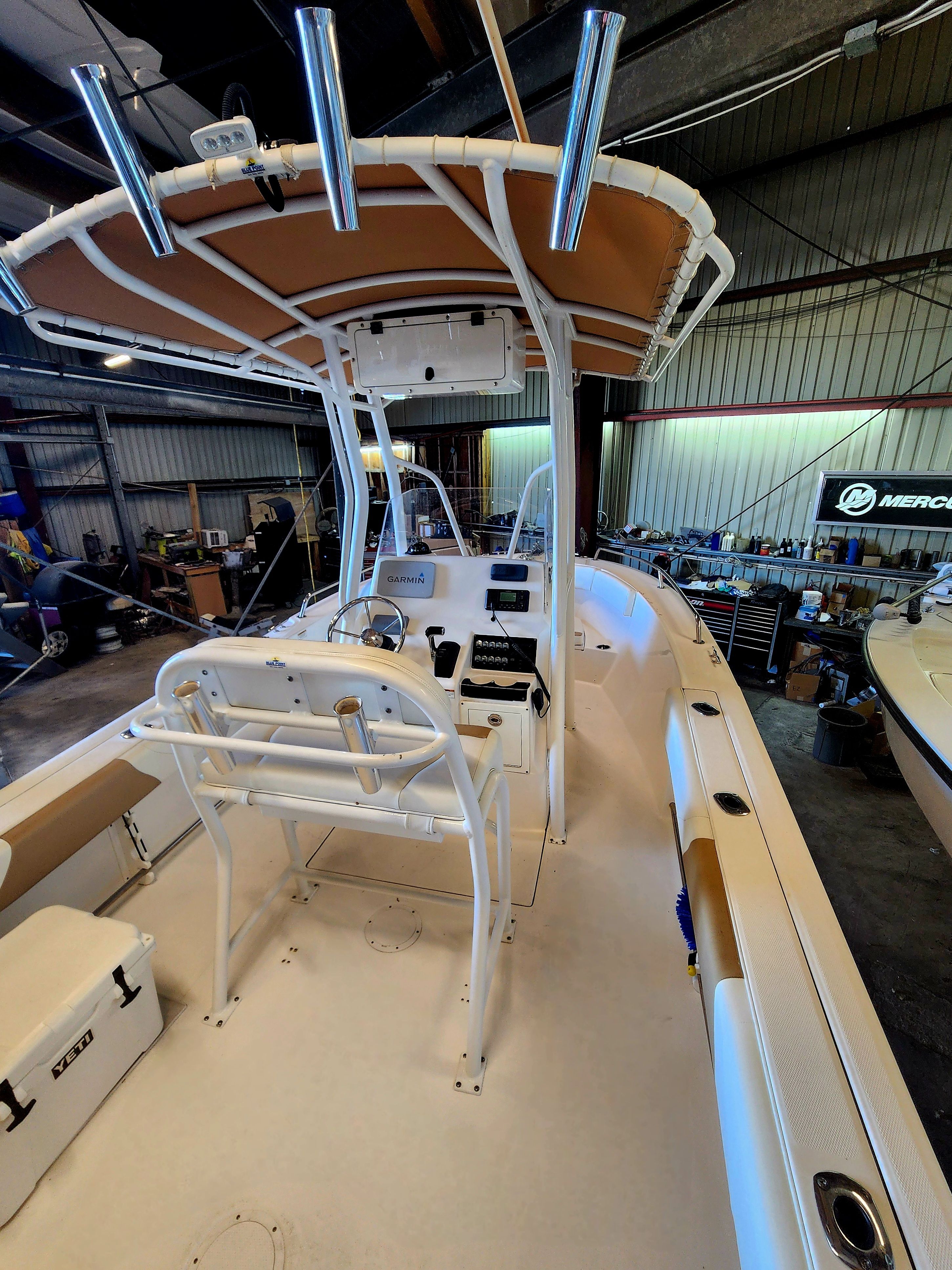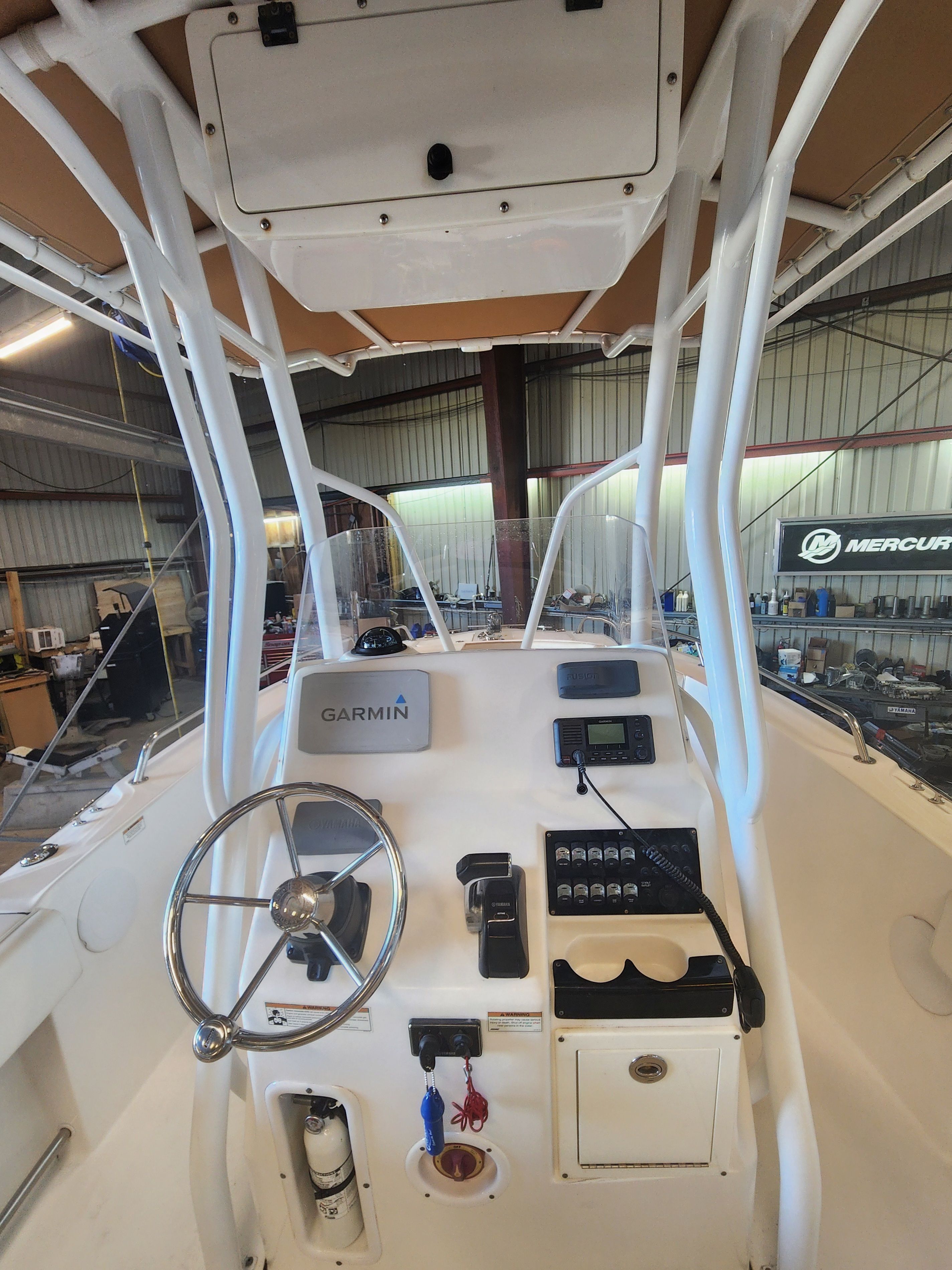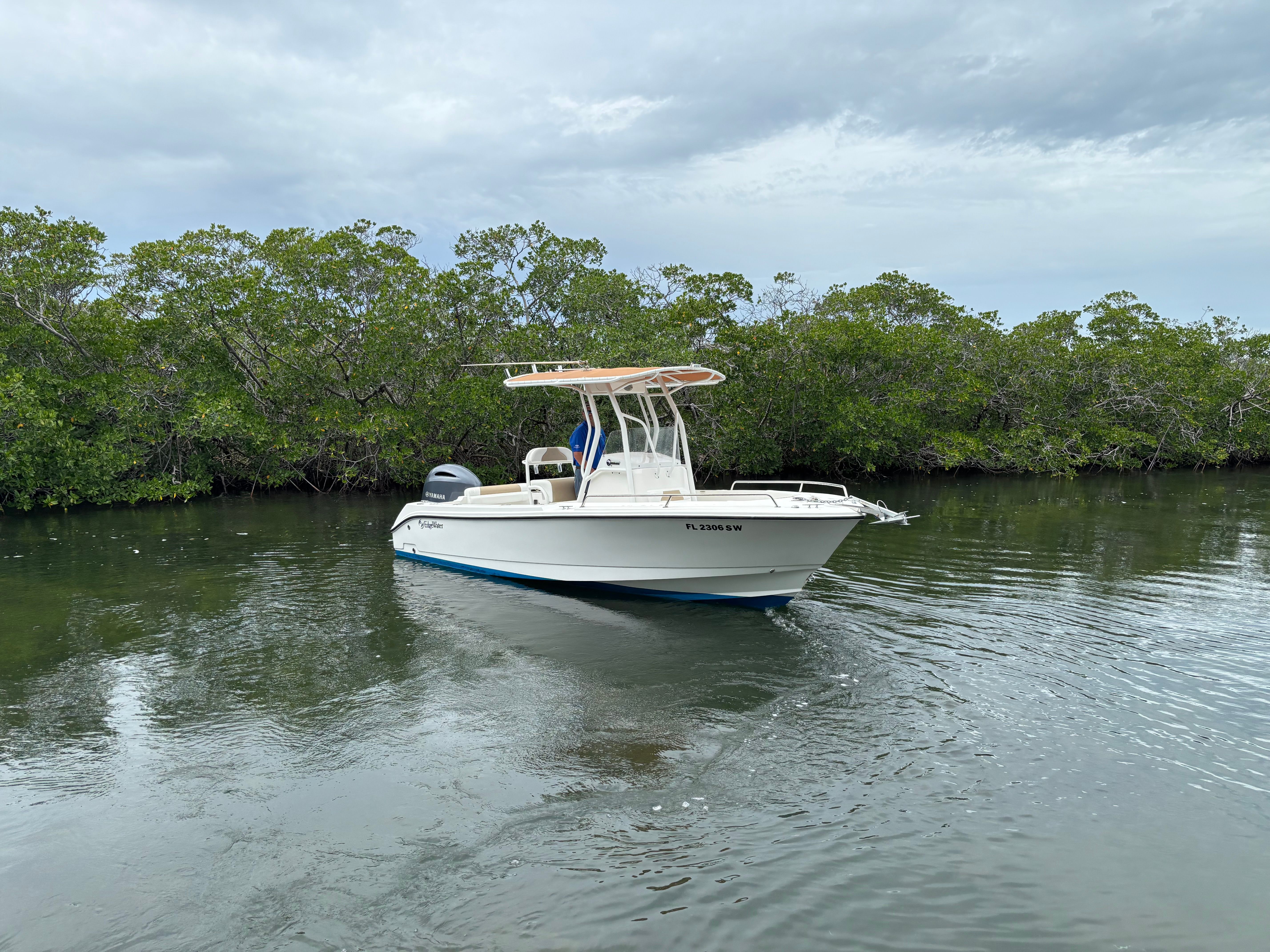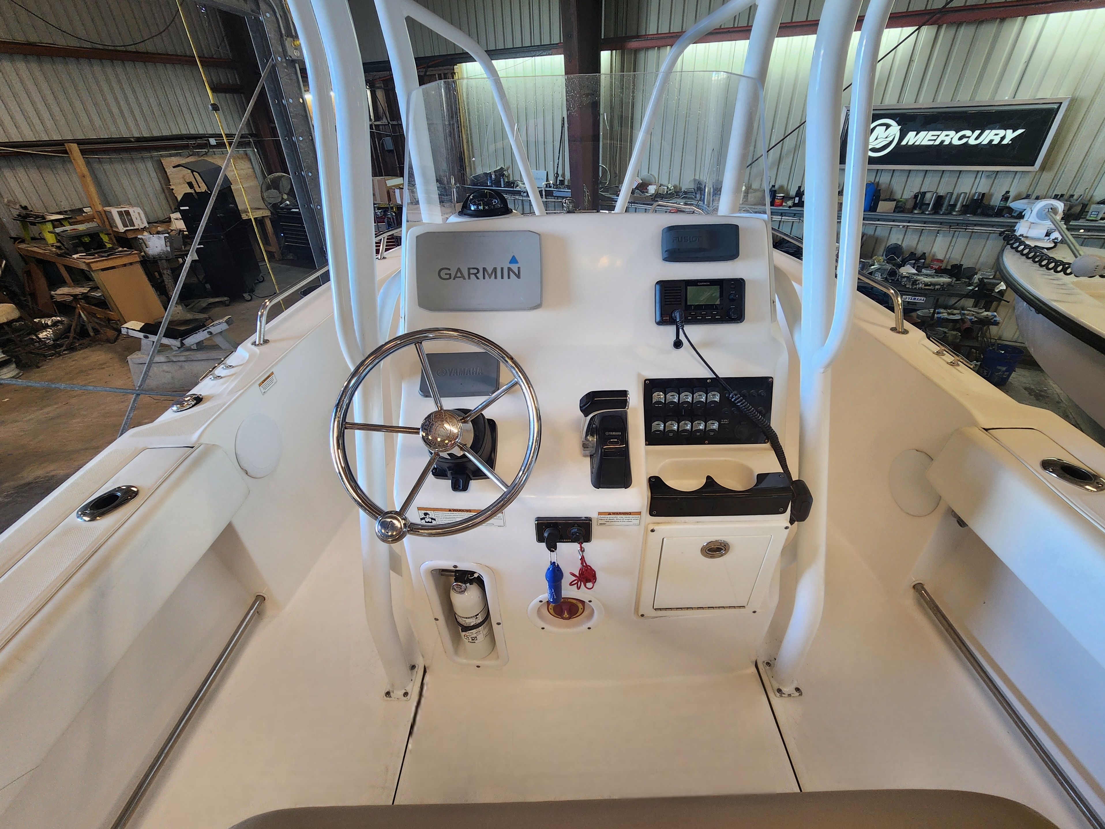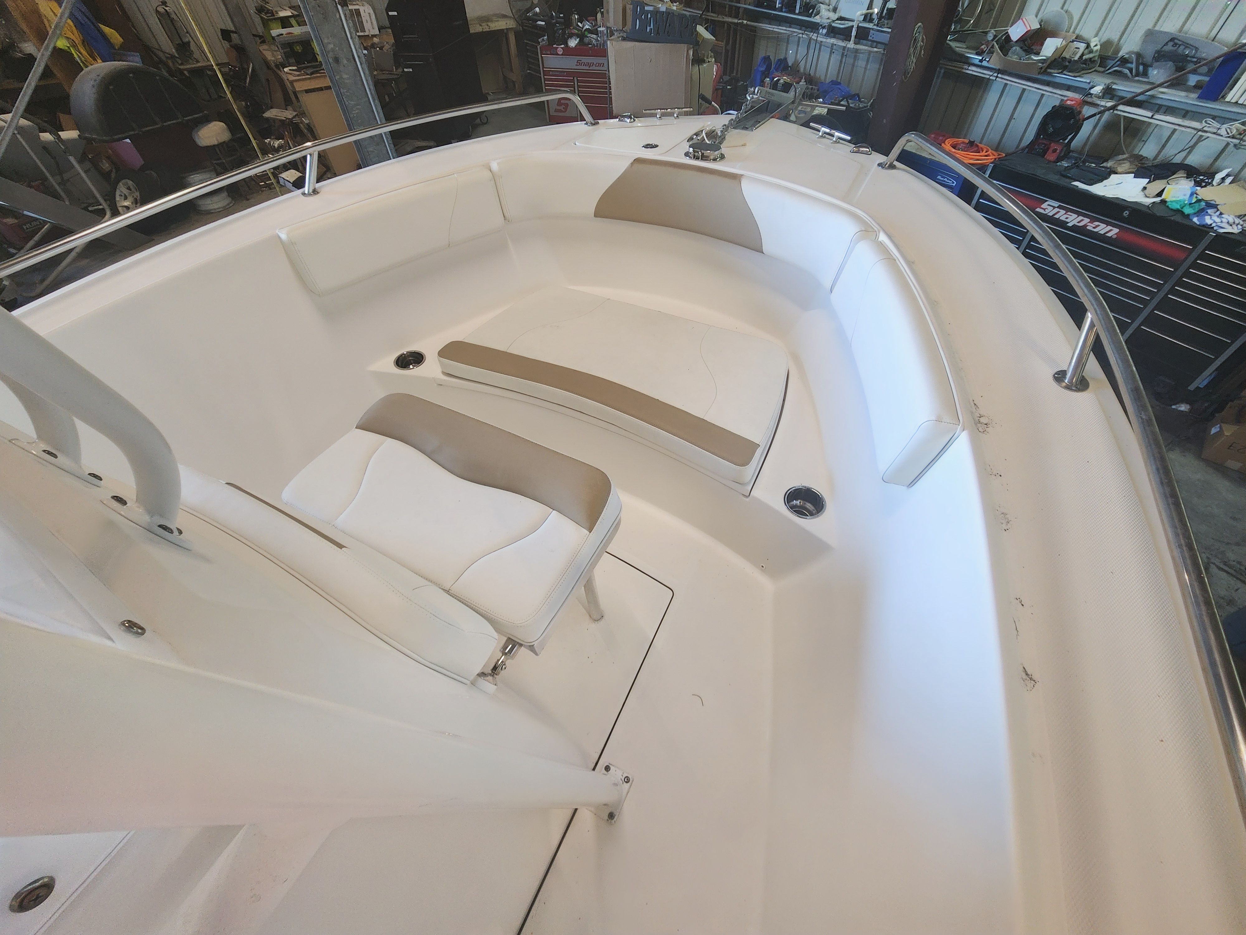 The Edgewater 208 CC Center Console is packed with features that enhance both its recreational and practical appeal. The spacious deck layout provides ample room for casting lines, relaxing with friends, or enjoying water sports. The Center Console configuration offers unobstructed movement around the boat, making it easy to access all areas and ensuring safety for everyone on board.The helm is designed for comfort and control, with intuitive instrumentation and ergonomic seating. The boat’s construction utilizes high-quality materials, ensuring longevity and resistance to the elements. Storage compartments are thoughtfully integrated throughout, allowing you to stow gear, tackle, and personal items securely and conveniently.This Edgewater boat for sale is built to accommodate a variety of activities, from serious fishing trips to leisurely cruises. The Center Console design is perfect for anglers who need 360-degree access to the water, while families will appreciate the open layout and comfortable seating options.