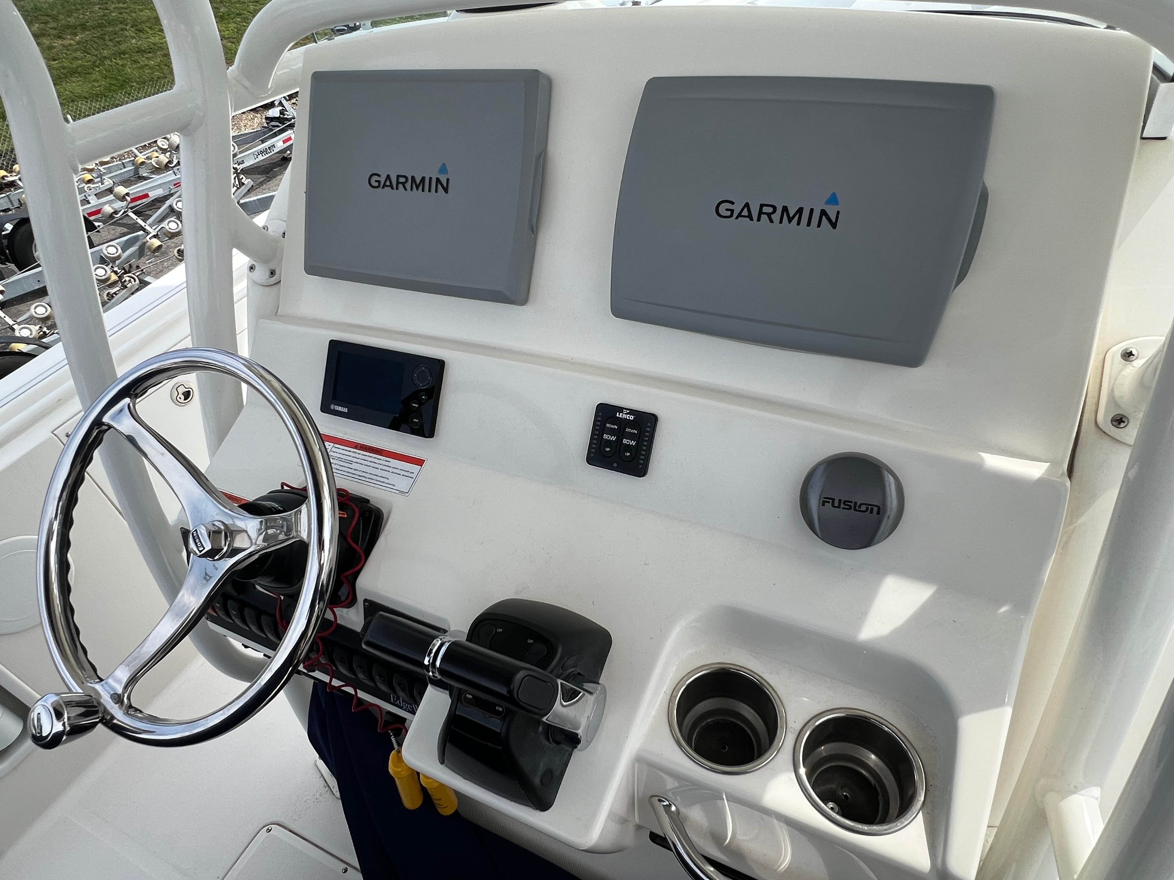 The Edgewater 318 CC is packed with features that cater to both recreational and practical boating needs. Its spacious 31-foot length provides ample room for passengers, gear, and activities, making it ideal for group outings or solo adventures. The Center Console layout maximizes deck space, allowing for easy movement and access to all areas of the boat.Special features of this model include a well-designed helm station with intuitive controls, comfortable seating arrangements, and generous storage compartments for gear and supplies. The twin engines not only offer impressive horsepower but also contribute to the boat’s balanced handling and stability. The overall condition of this used Edgewater boat for sale is excellent, reflecting careful maintenance and attention to detail.