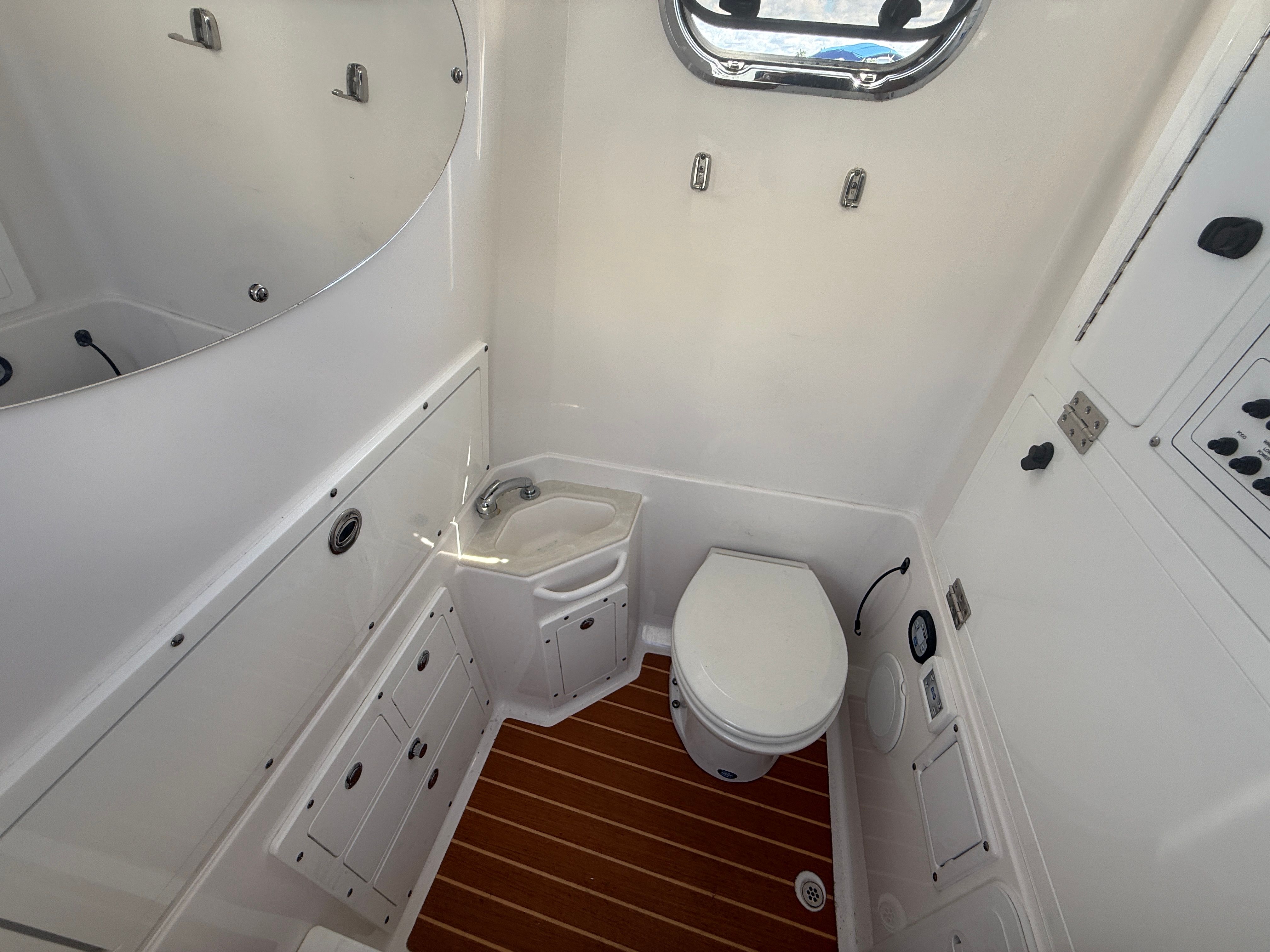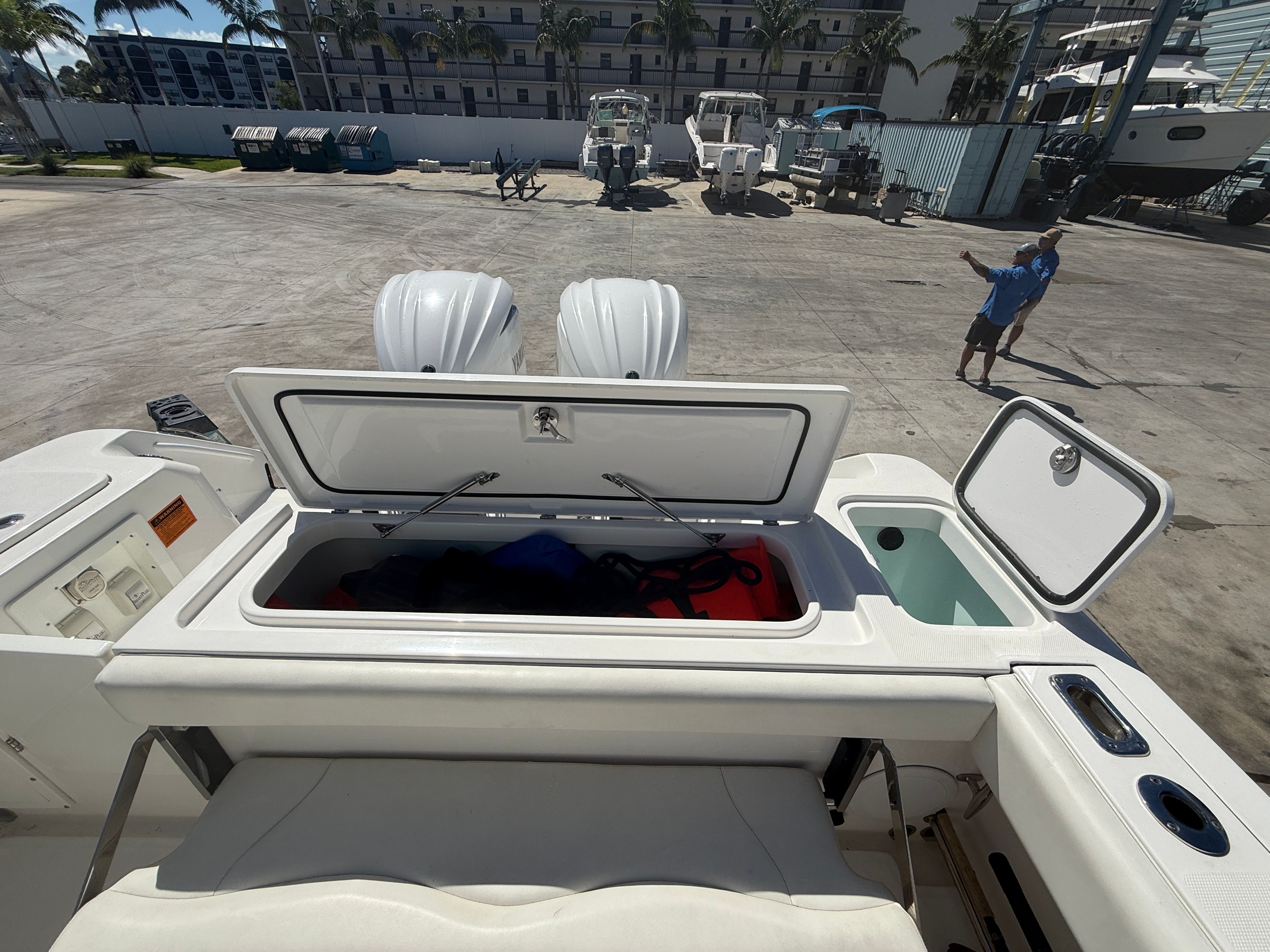 Powering this Edgewater 325 CC are twin engines, delivering a combined 600 horsepower for exhilarating speed and responsive handling. With two engines, you’ll enjoy enhanced maneuverability, reliability, and the confidence to tackle both calm bays and choppy offshore waters. The 600 horsepower ensures that this Center Console boat for sale is more than capable of reaching your favorite fishing spots quickly or enjoying high-speed runs along the coastline. With only 180 engine hours, these motors have plenty of life left, offering peace of mind and dependable performance for years to come.