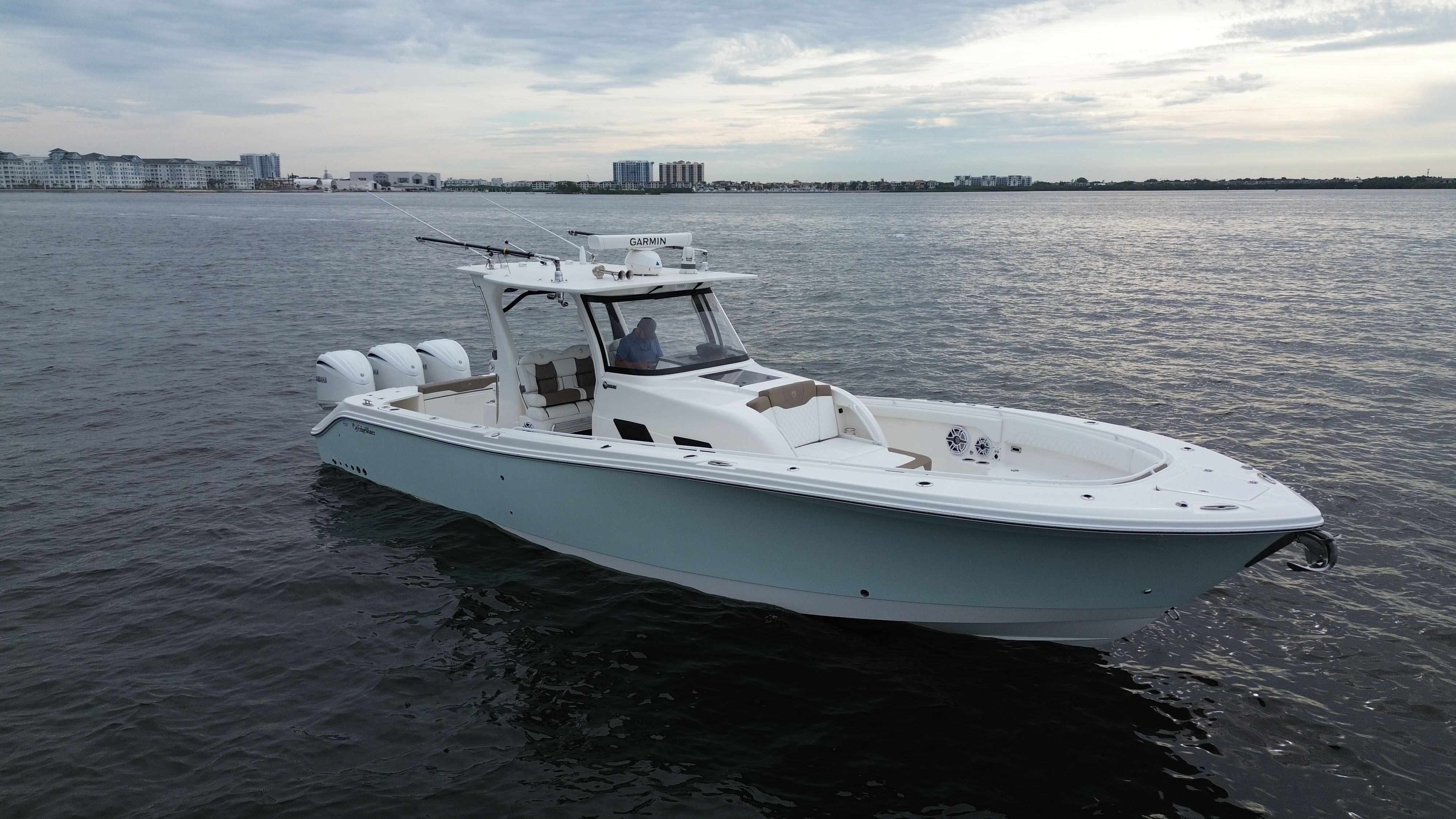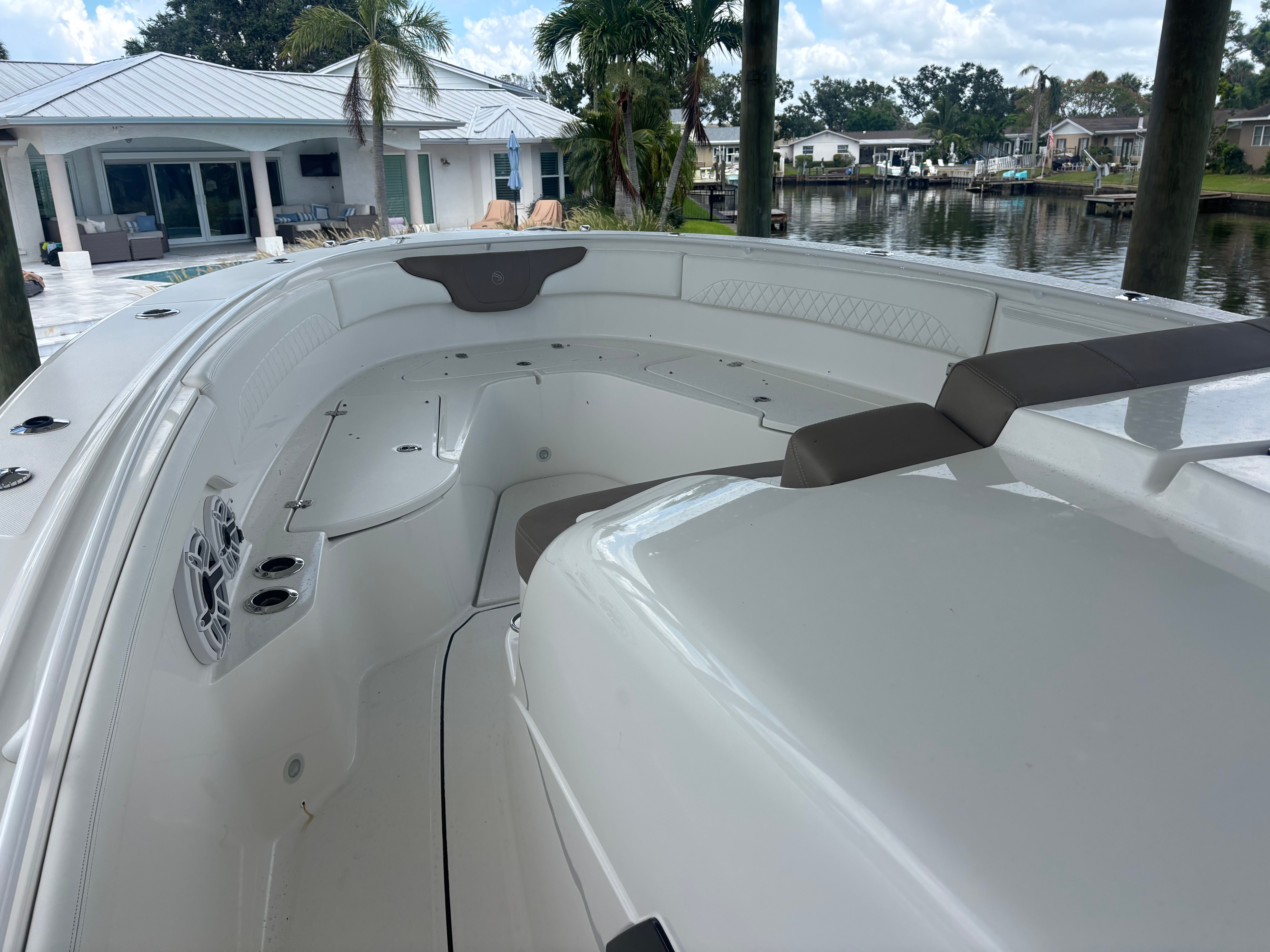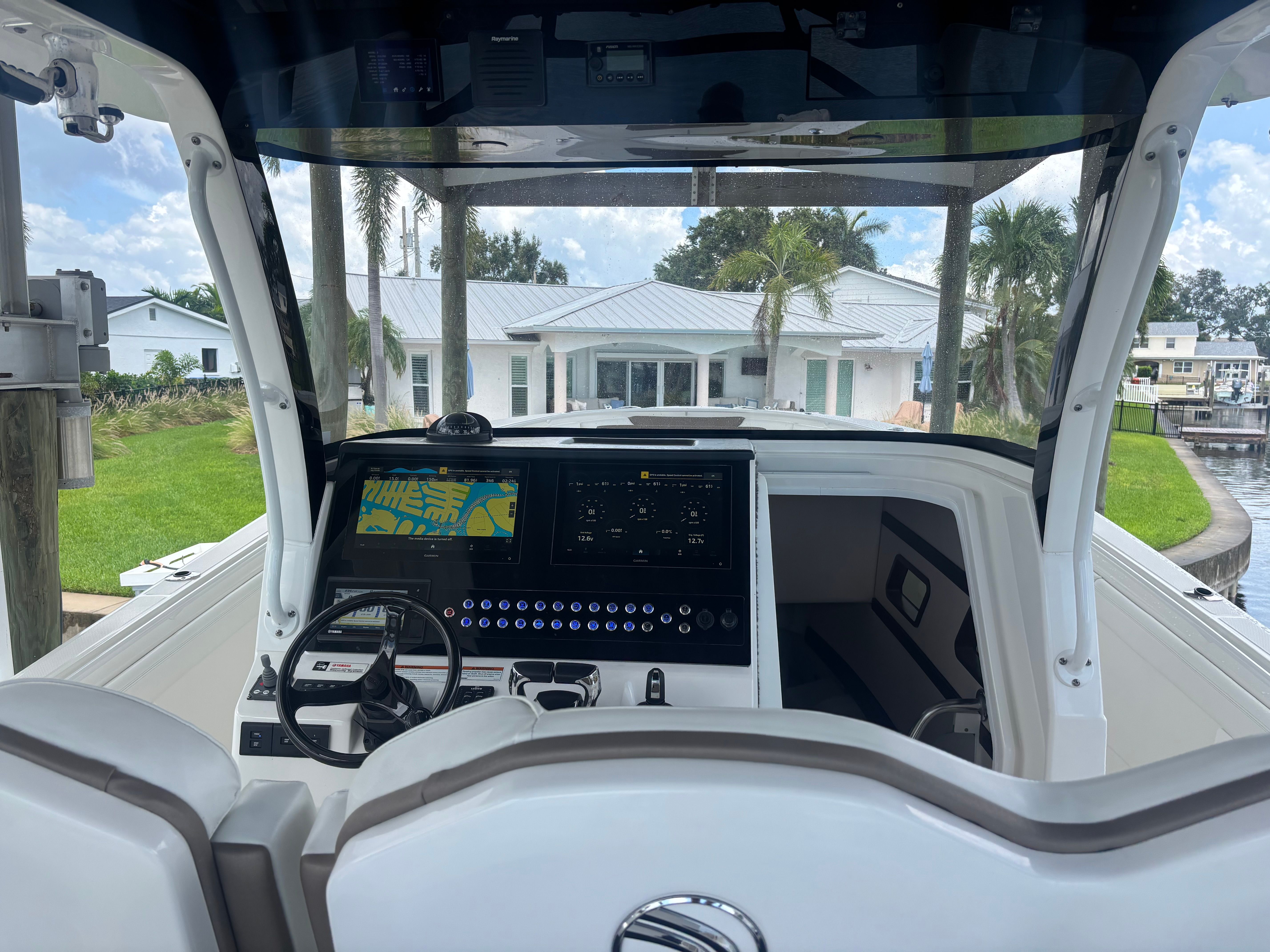 Powering the Edgewater 370 CC are three high-performance engines, delivering a combined 900 horsepower. With only 350 engine hours, these engines have been well maintained and are ready to provide years of reliable service. The triple-engine setup ensures that this Center Console boat for sale offers exhilarating acceleration, impressive top speeds, and smooth handling in a variety of sea conditions. Whether you are cruising along the coastline, heading offshore for a day of fishing, or simply enjoying a leisurely ride, the Edgewater 370 CC delivers a thrilling and responsive experience every time you take the helm.