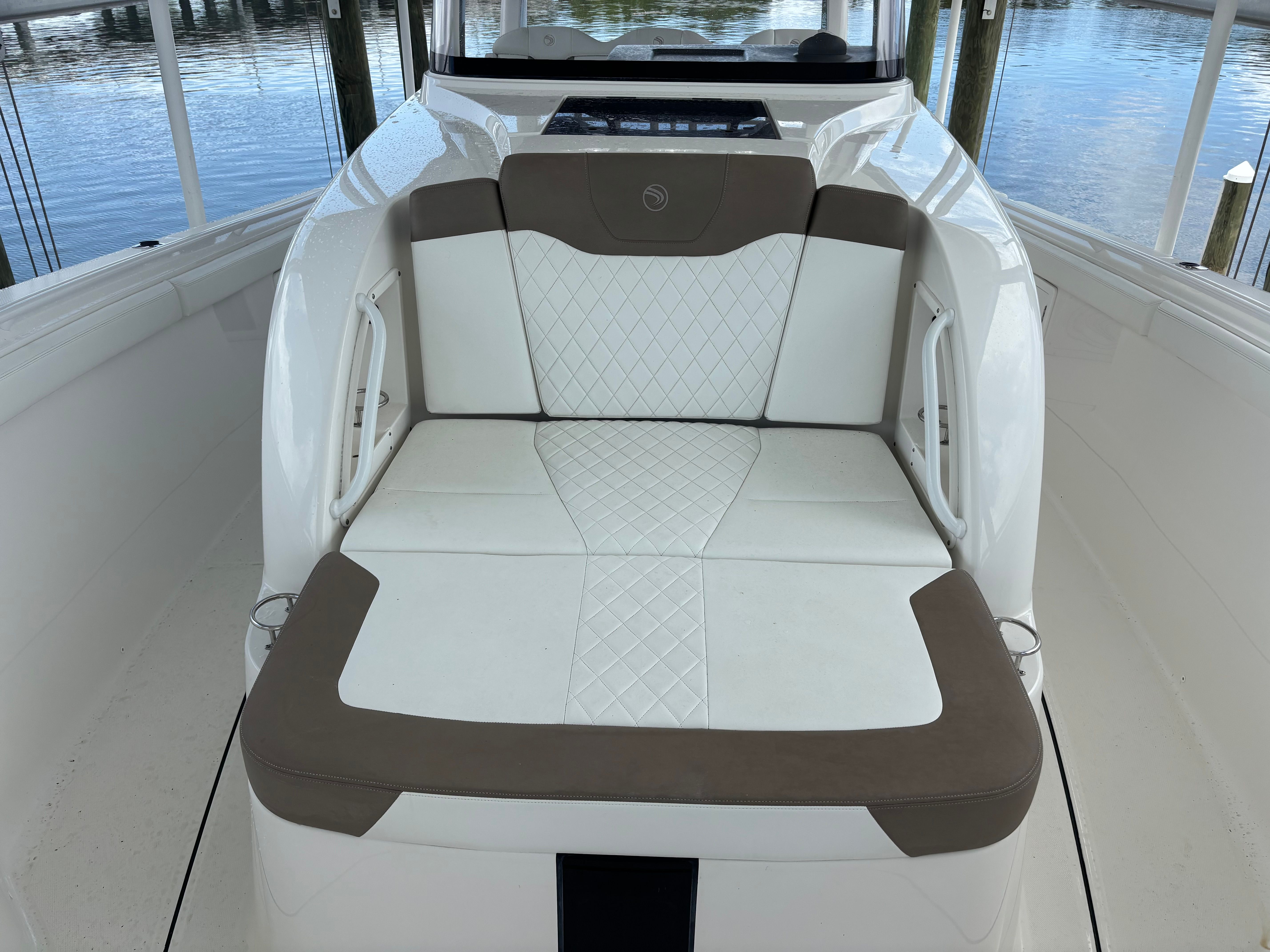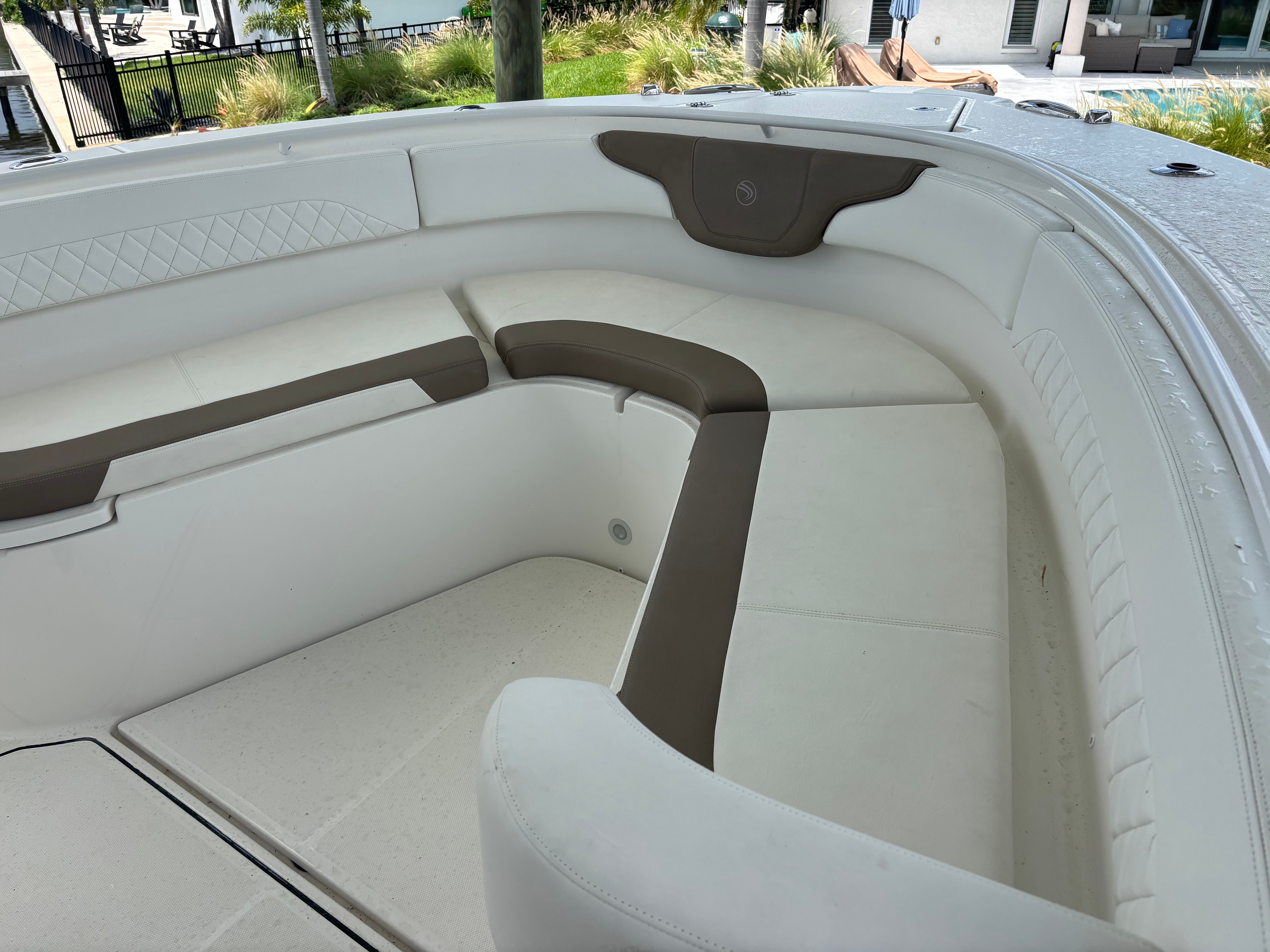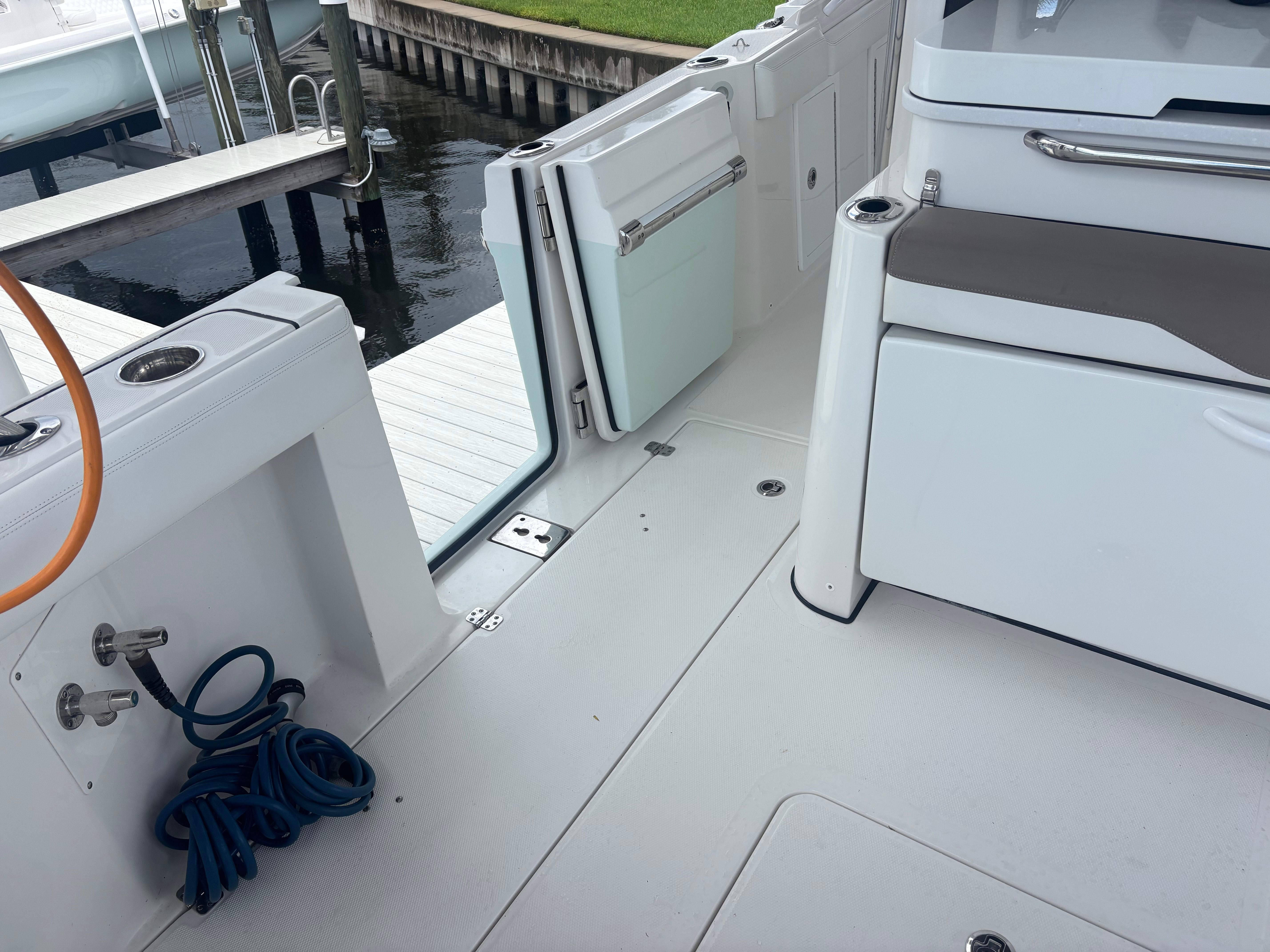 Powering the Edgewater 370 CC are three high-performance engines, delivering a combined 900 horsepower. With only 350 engine hours, these engines have been well maintained and are ready to provide years of reliable service. The triple-engine setup ensures that this Center Console boat for sale offers exhilarating acceleration, impressive top speeds, and smooth handling in a variety of sea conditions. Whether you are cruising along the coastline, heading offshore for a day of fishing, or simply enjoying a leisurely ride, the Edgewater 370 CC delivers a thrilling and responsive experience every time you take the helm.