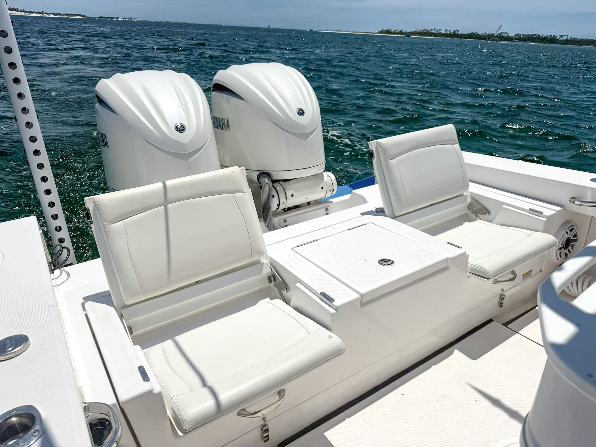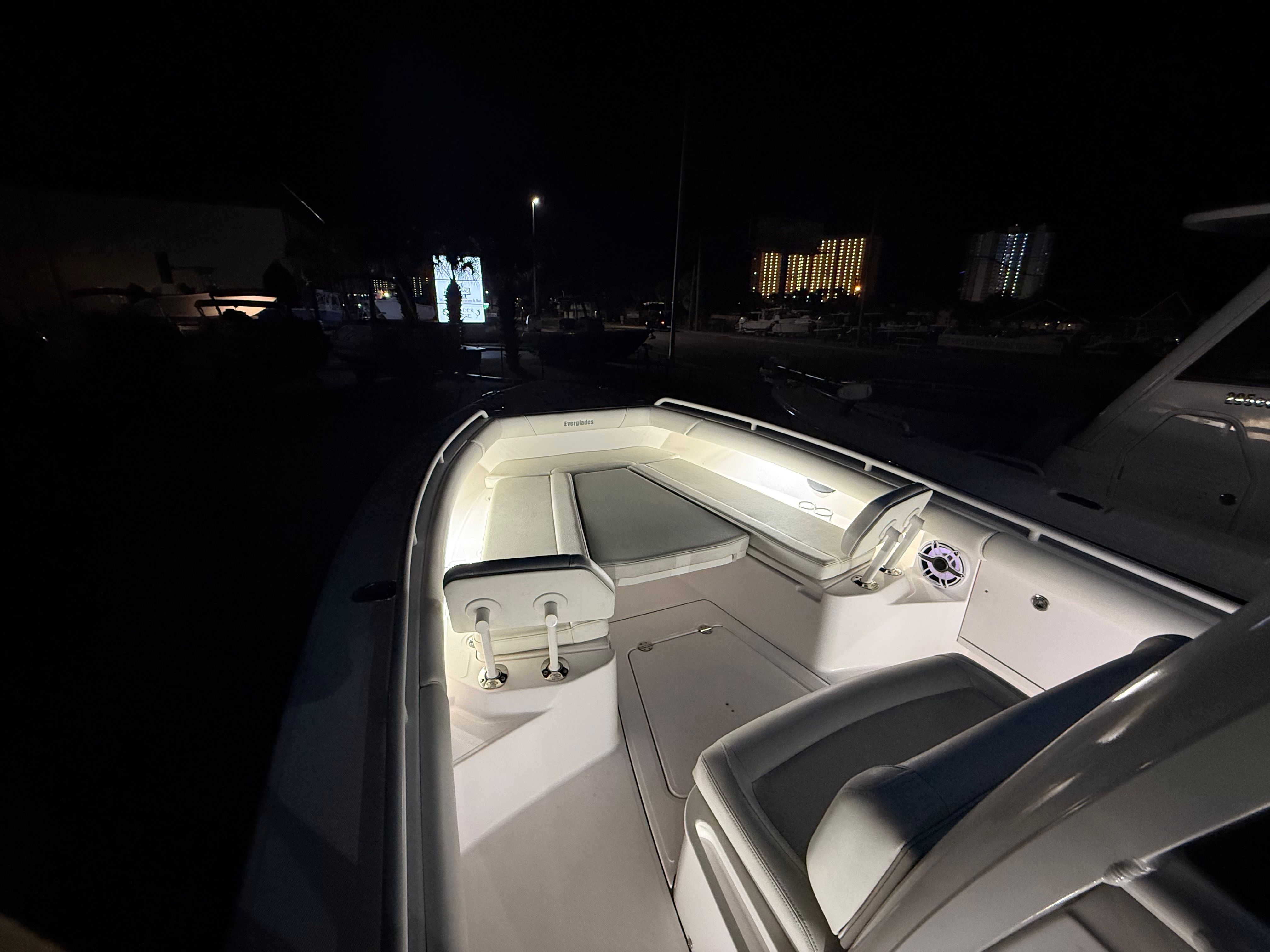 Powering the 2023 Everglades 273 CC are twin engines delivering a combined 600 horsepower. With only 6 hours on the engines, you can expect peak performance and longevity. The dual-engine setup ensures robust acceleration, smooth cruising, and impressive top speeds, making it ideal for offshore runs, quick trips to your favorite fishing spot, or leisurely cruises along the coast. The responsive handling and stability of the Everglades 273 CC make it a joy to captain, even in challenging conditions. Whether you are chasing the next big catch or enjoying a sunset cruise, this Center Console boat for sale delivers a thrilling and confident ride.