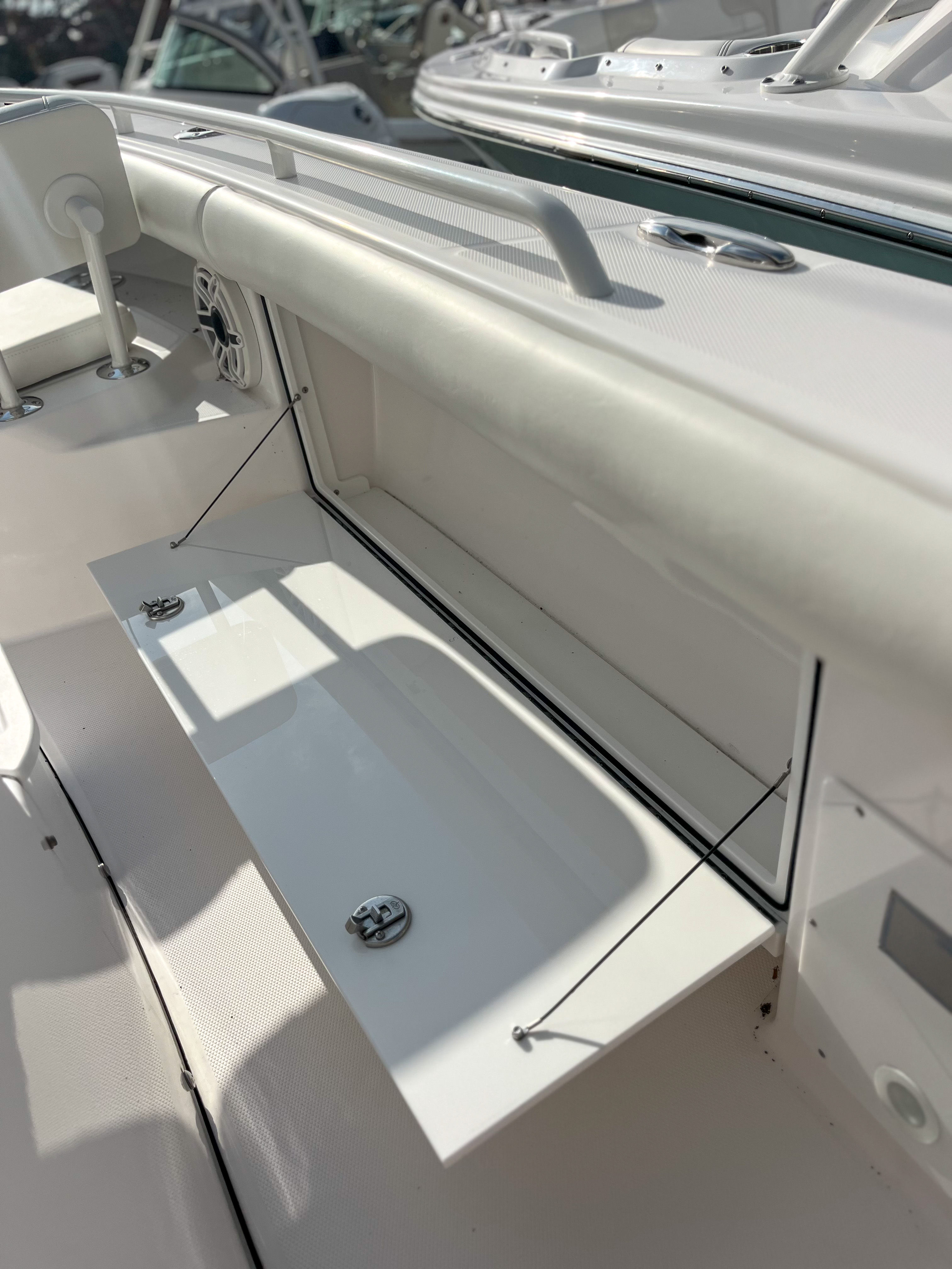 The Everglades 273 CC is designed with practicality in mind, offering features that make ownership easy and enjoyable. The efficient twin Yamaha engines not only provide impressive performance but also contribute to fuel efficiency, helping you make the most of every trip. The low-profile windlass simplifies the anchoring process, saving you time and effort when stopping to swim, fish, or relax. The intuitive layout and advanced electronics make navigation and docking straightforward, even for less experienced boaters. With plenty of storage for gear and supplies, this boat is ready for extended outings, ensuring you have everything you need for a successful day on the water.