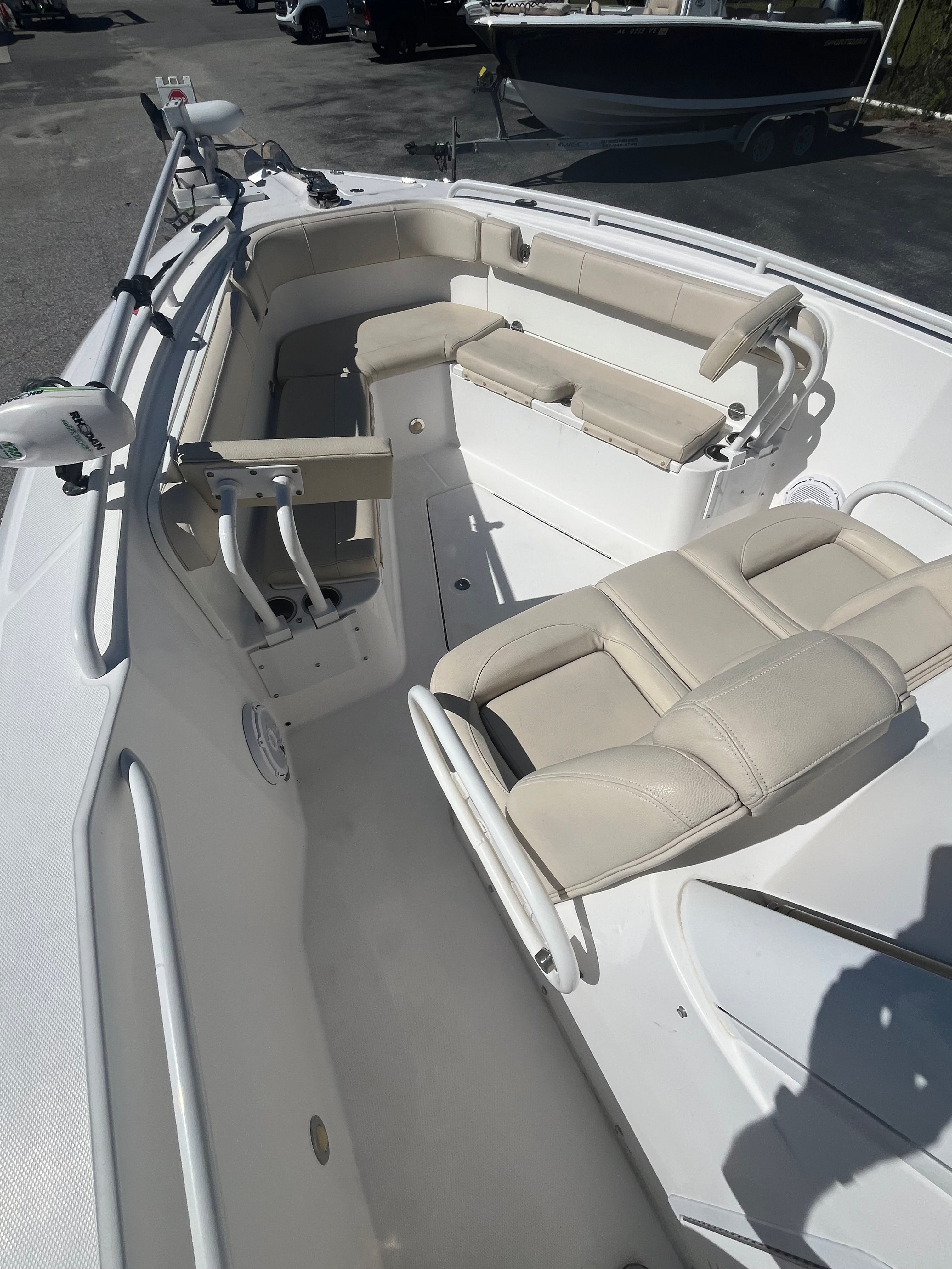 The Everglades 295 CC is designed with both functionality and comfort in mind. Its center console layout maximizes deck space, allowing for easy movement around the boat and unobstructed access to all areas. The helm is thoughtfully arranged, offering clear visibility and intuitive controls for a seamless boating experience. The boat’s construction reflects Everglades’ commitment to durability and safety, with high-quality materials and attention to detail evident throughout.Special features of the 295 CC enhance its appeal for both fishing enthusiasts and recreational boaters. The spacious cockpit provides plenty of room for casting lines or setting up gear, while the forward seating area offers a comfortable spot to relax and enjoy the view. Storage compartments are strategically placed to keep your equipment organized and out of the way, ensuring a clutter-free environment on board. The boat’s design also incorporates features that make maintenance and cleaning straightforward, so you can spend more time enjoying the water and less time on upkeep.