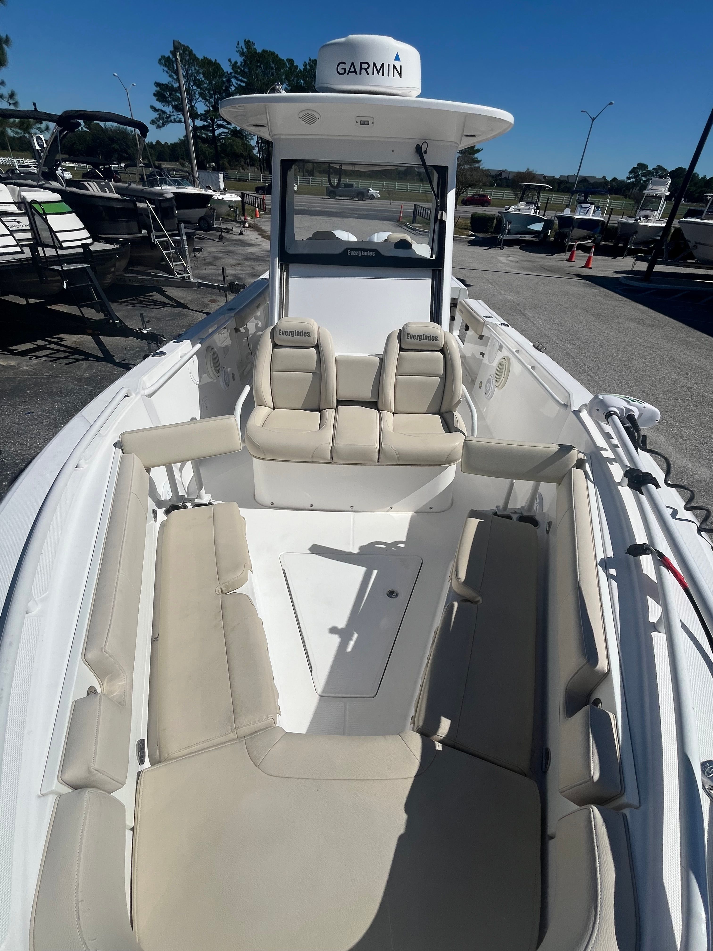 The 2018 Everglades 295 CC is a 28-foot center console that exemplifies the quality and craftsmanship Everglades is known for. With its sleek lines and commanding presence, this used Everglades boat for sale offers a modern aesthetic combined with practical features that make every outing enjoyable. The 295 CC’s spacious layout provides ample room for fishing, entertaining, or simply relaxing under the sun. Its 28-foot length strikes the perfect balance between maneuverability and onboard space, making it ideal for both offshore excursions and inshore adventures.