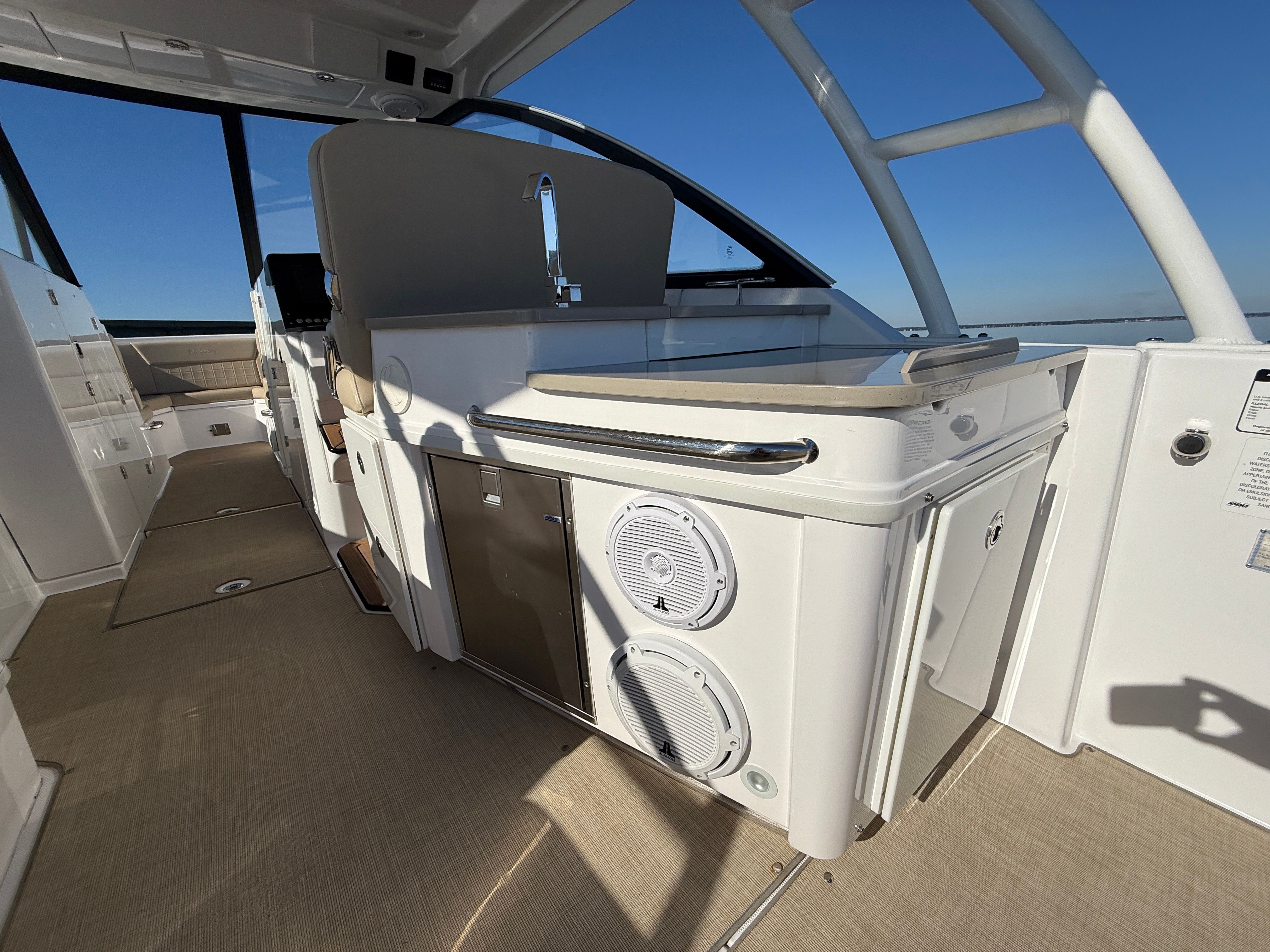 In summary, this 2020 Everglades 340 DC represents the pinnacle of dual console boating. With its powerful twin engines, spacious 33.5-foot layout, and only 228 engine hours, this used Everglades boat for sale offers exceptional value and performance. The thoughtfully designed features, versatile layout, and renowned Everglades quality make it an outstanding choice for anyone seeking a dual console boat for sale. Whether you are planning family adventures, fishing excursions, or leisurely cruises, the Everglades 340 DC is ready to deliver unforgettable experiences on the water. Do not miss your chance to own this remarkable boat—contact the dealer today to learn more and schedule a viewing.