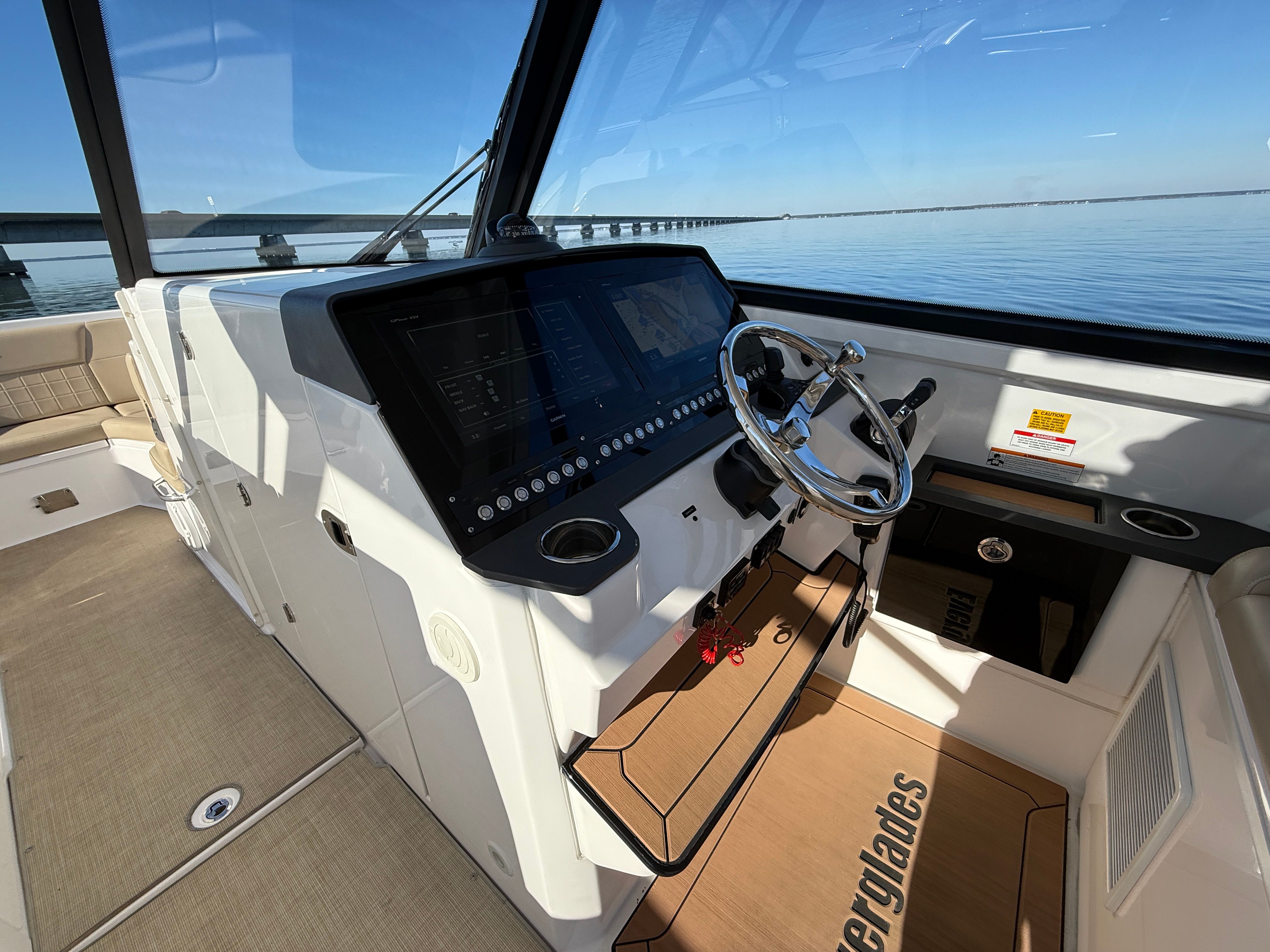 The versatility of the Everglades 340 DC shines in a variety of scenarios. For family outings, the spacious seating and safety features make it an ideal platform for creating lasting memories. Anglers will appreciate the ample deck space and easy access to all areas of the boat, making fishing trips both productive and enjoyable. If luxury getaways are more your style, the comfortable seating, stylish design, and smooth ride ensure every journey is a pleasure. The dual console configuration allows for both relaxation and adventure, adapting to your needs whether you are seeking excitement or tranquility. This dual console boat for sale is truly a do-it-all vessel, ready to accommodate your boating lifestyle.
