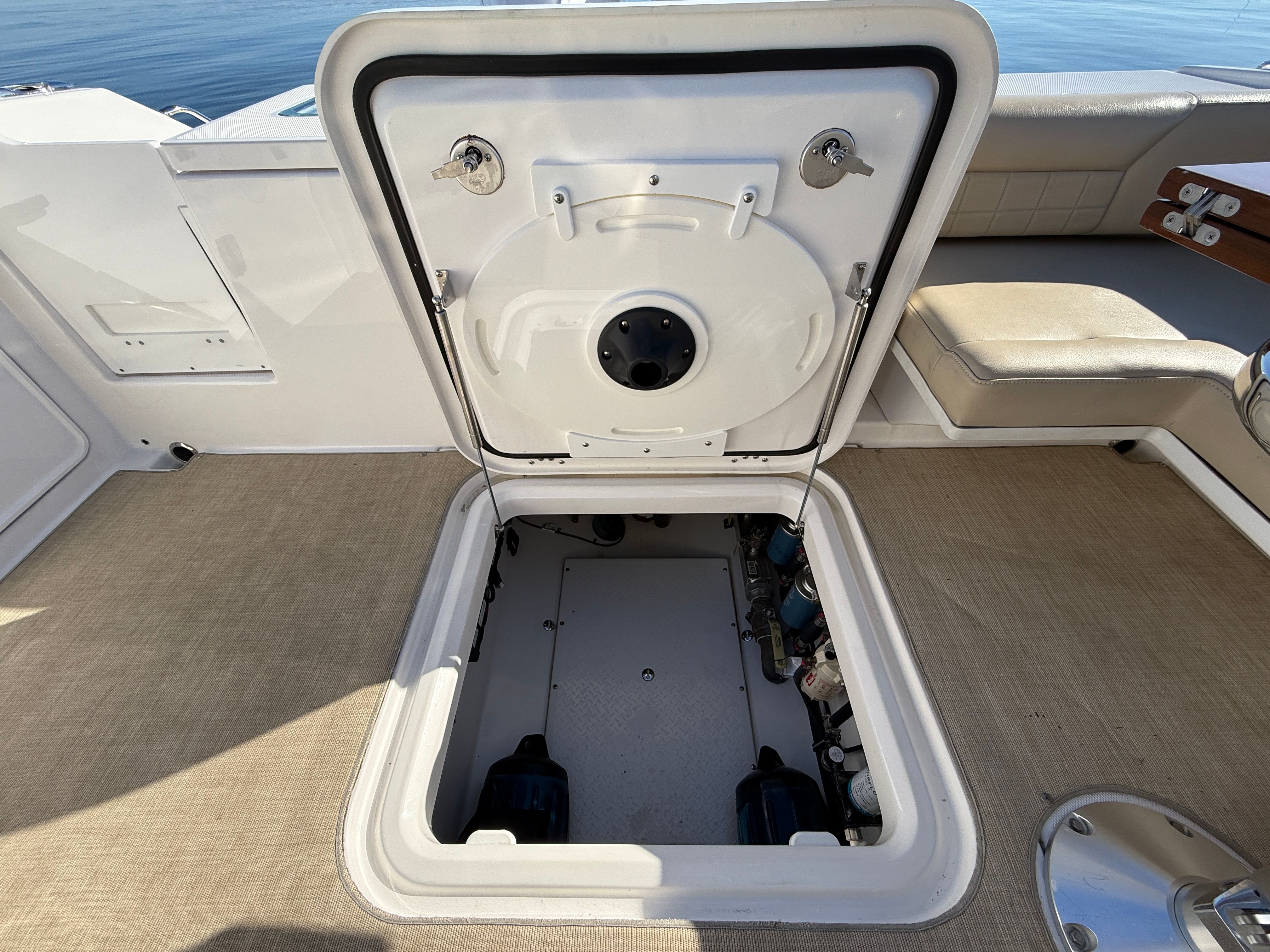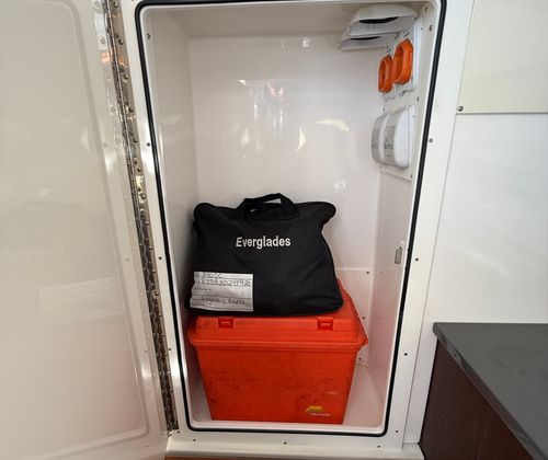 Power and precision define the performance of the Everglades 340 DC. Equipped with twin engines delivering a combined 850 horsepower, this dual console boat is built for speed, agility, and smooth handling. The twin-engine setup ensures optimal balance and maneuverability, allowing you to navigate with confidence whether you are cruising along the coastline or heading offshore for a day of fishing. With only 228 engine hours, these engines have been lightly used, offering peace of mind and dependable power for your next adventure. The Everglades 340 DC is engineered to deliver exhilarating acceleration, impressive top speeds, and a stable ride in a variety of water conditions.