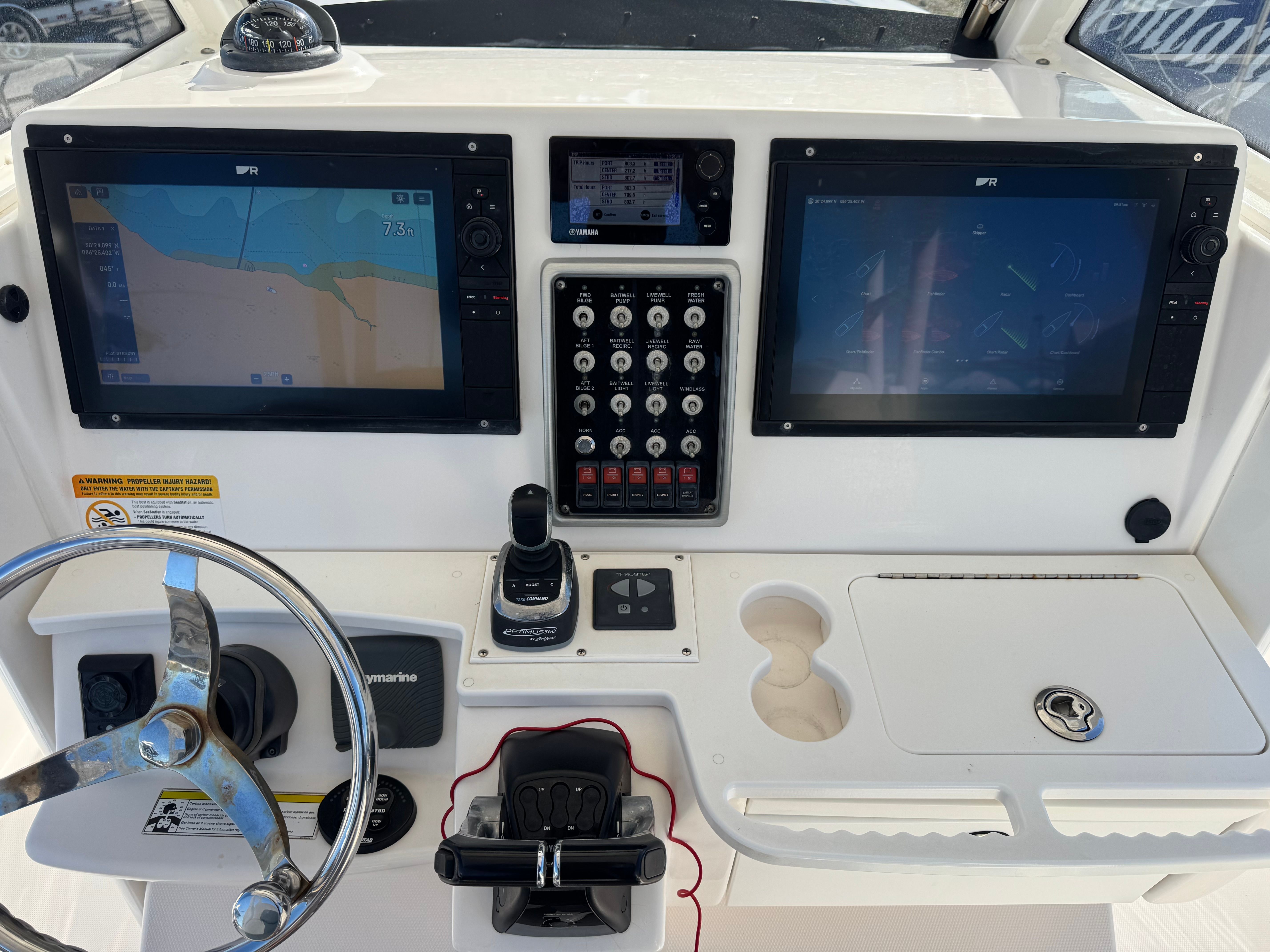 The Everglades 355 CC is as practical as it is fun. Its spacious design provides ample storage for fishing gear, water toys, and personal belongings, keeping the deck clutter-free and organized. The Center Console layout makes docking and maneuvering straightforward, even for less experienced boaters. The efficient triple-engine configuration offers impressive fuel economy for a boat of this size and power, allowing you to enjoy extended trips without frequent refueling stops.Maintenance and upkeep are simplified thanks to Everglades’ reputation for durability and reliability. The robust construction and high-quality materials ensure that this used Center Console boat remains in excellent condition for years to come. Whether you’re storing the boat at a marina or trailering it to different locations, the Everglades 355 CC is designed for hassle-free ownership.