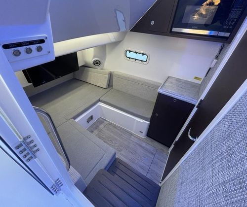 Powering the 2021 Everglades 395CC are three high-performance engines, delivering a combined 1,275 horsepower. This triple-engine setup ensures exhilarating speed, responsive handling, and the confidence to tackle both calm bays and challenging offshore conditions. Whether you are chasing the horizon or navigating tight marinas, the Everglades 395CC offers a thrilling yet stable ride. The advanced hull design enhances efficiency and provides a smooth, dry ride, making every journey enjoyable and comfortable. For those seeking a center console boat for sale that delivers both power and precision, the 395CC is an outstanding choice.