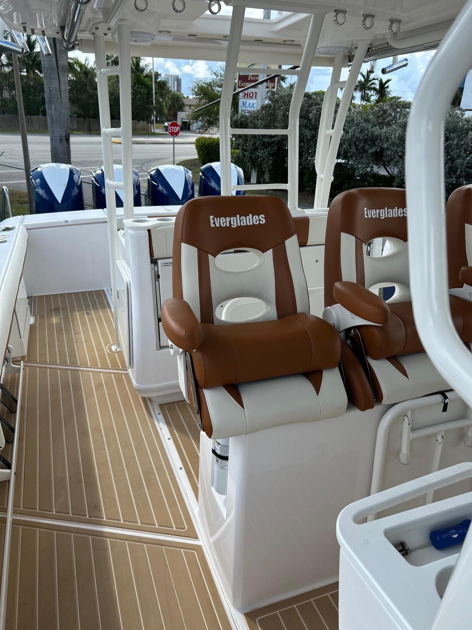 The Everglades 435 CC is packed with features that cater to both serious anglers and those seeking luxury on the water. Its spacious Center Console layout provides unobstructed movement around the deck, making it easy to transition from fishing to socializing. The ergonomic helm station offers intuitive controls and excellent visibility, ensuring a comfortable and safe driving experience. With advanced engineering and attention to detail, this Everglades boat for sale is built to withstand the rigors of offshore boating while providing a refined environment for relaxation.Special features of the Everglades 435 CC include its four-engine configuration, delivering a total of 1400 horsepower for unmatched performance. The 43-foot length offers generous deck space, allowing for multiple seating options, storage compartments, and versatile areas for fishing or entertaining. The durable construction and high-quality materials used throughout the boat ensure longevity and low maintenance, making it a smart investment for any boating enthusiast.