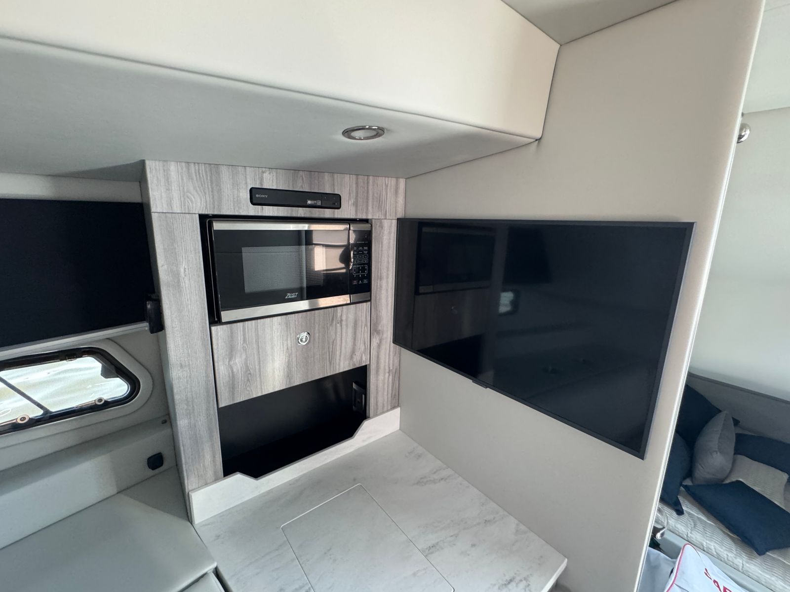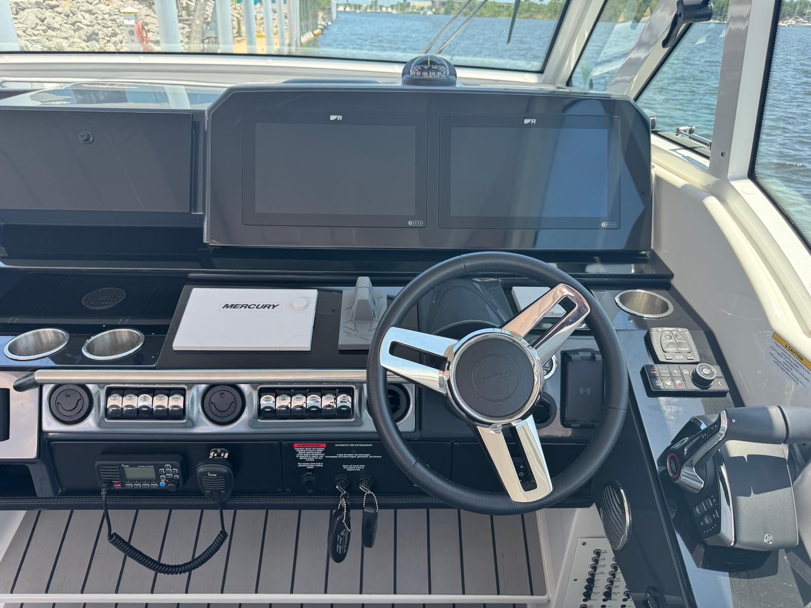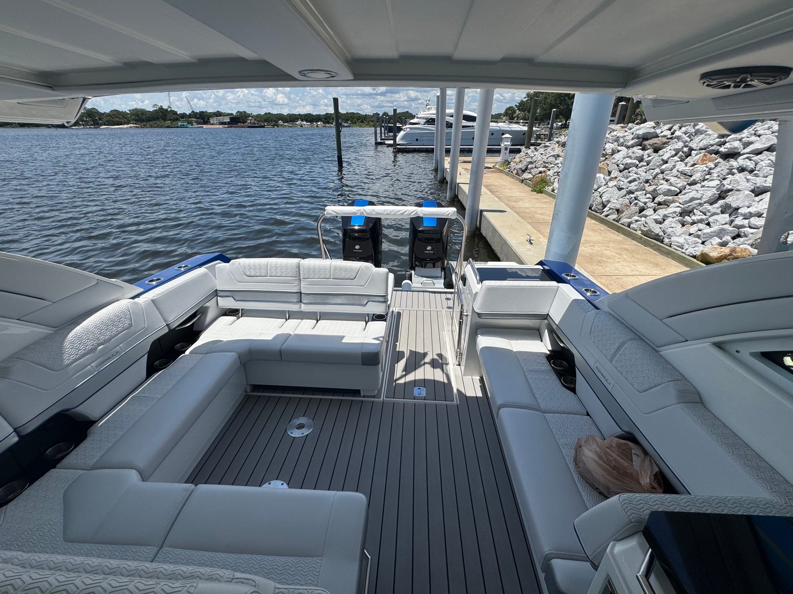 The Formula 380 SSC is loaded with features that elevate every moment on the water. Its spacious layout is designed for both relaxation and entertainment, offering plenty of room for family and friends. The cockpit is thoughtfully arranged to maximize comfort and functionality, with premium seating, ample lounging areas, and intuitive controls that put everything you need within easy reach. The attention to detail in the design ensures that every outing is enjoyable, whether you are hosting a sunset gathering or embarking on a weekend getaway.This cruiser’s innovative design also provides excellent storage solutions, making it easy to stow gear, water toys, and essentials for extended trips. The high-quality materials and finishes throughout the boat reflect Formula’s commitment to luxury and durability, ensuring your investment stands the test of time.