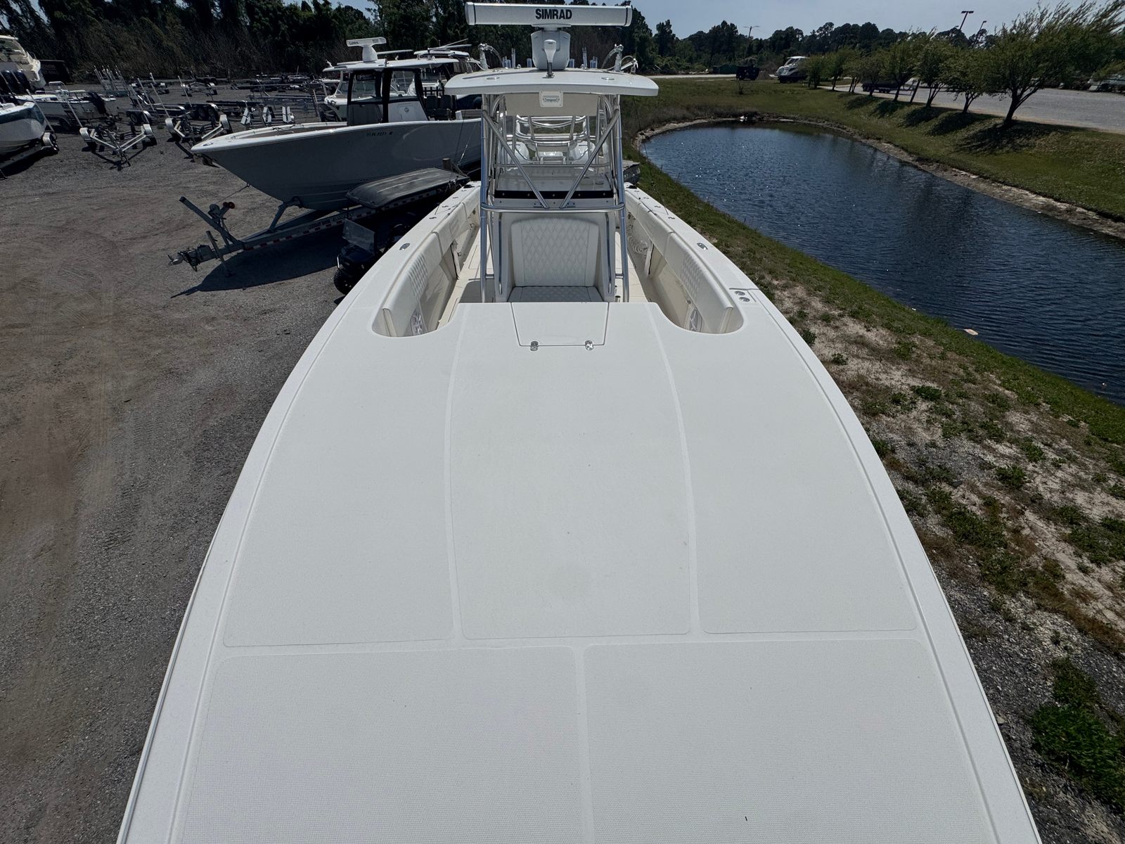 The Fountain 38 TE Center Console is packed with features that elevate both its functionality and comfort. Its spacious layout is designed to maximize usability, offering ample room for movement and storage. The center console design ensures unobstructed access around the deck, making it easy to fish, entertain, or simply enjoy the open water. The 38-foot length provides a stable platform, ideal for handling rough seas and accommodating larger groups.Special features of the Fountain 38 TE include a thoughtfully arranged helm, ergonomic seating, and generous storage compartments. The console is equipped with intuitive controls and displays, allowing for effortless navigation and monitoring of engine performance. The deck layout is optimized for fishing, with plenty of space for gear and tackle, while also providing comfortable seating for passengers. The Fountain 38 TE’s design reflects a perfect balance between rugged utility and refined comfort, making it a versatile choice for a wide range of boating activities.