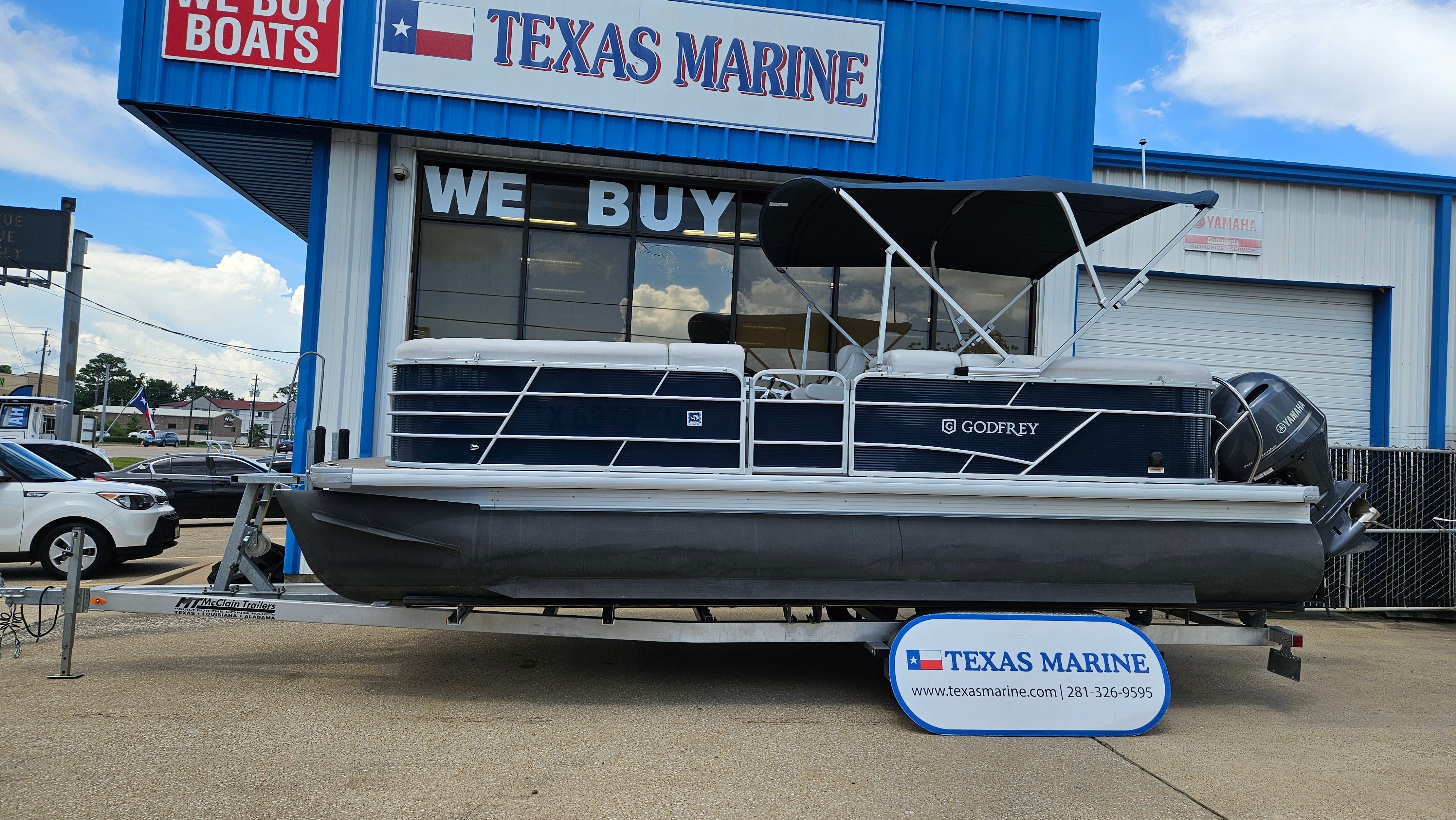 Step aboard the 2023 Godfrey SW 2286 SB and experience the ultimate in pontoon luxury. Measuring 22 feet in length, this spacious vessel offers plenty of room for socializing, lounging, and enjoying the great outdoors. The Godfrey SW 2286 SB stands out with its sleek lines and modern aesthetics, ensuring you’ll turn heads at every marina and lake. As a used pontoon boat for sale, it boasts only 84 engine hours, reflecting its well-maintained condition and readiness for many more adventures.