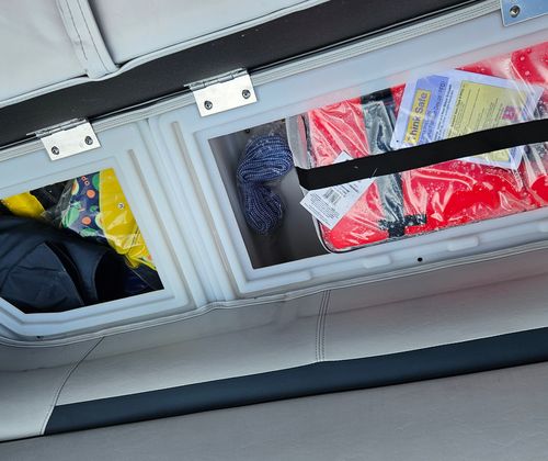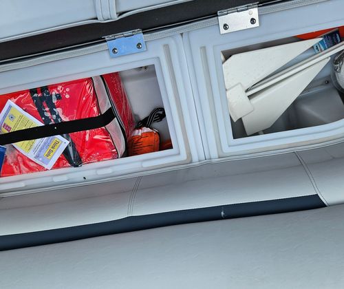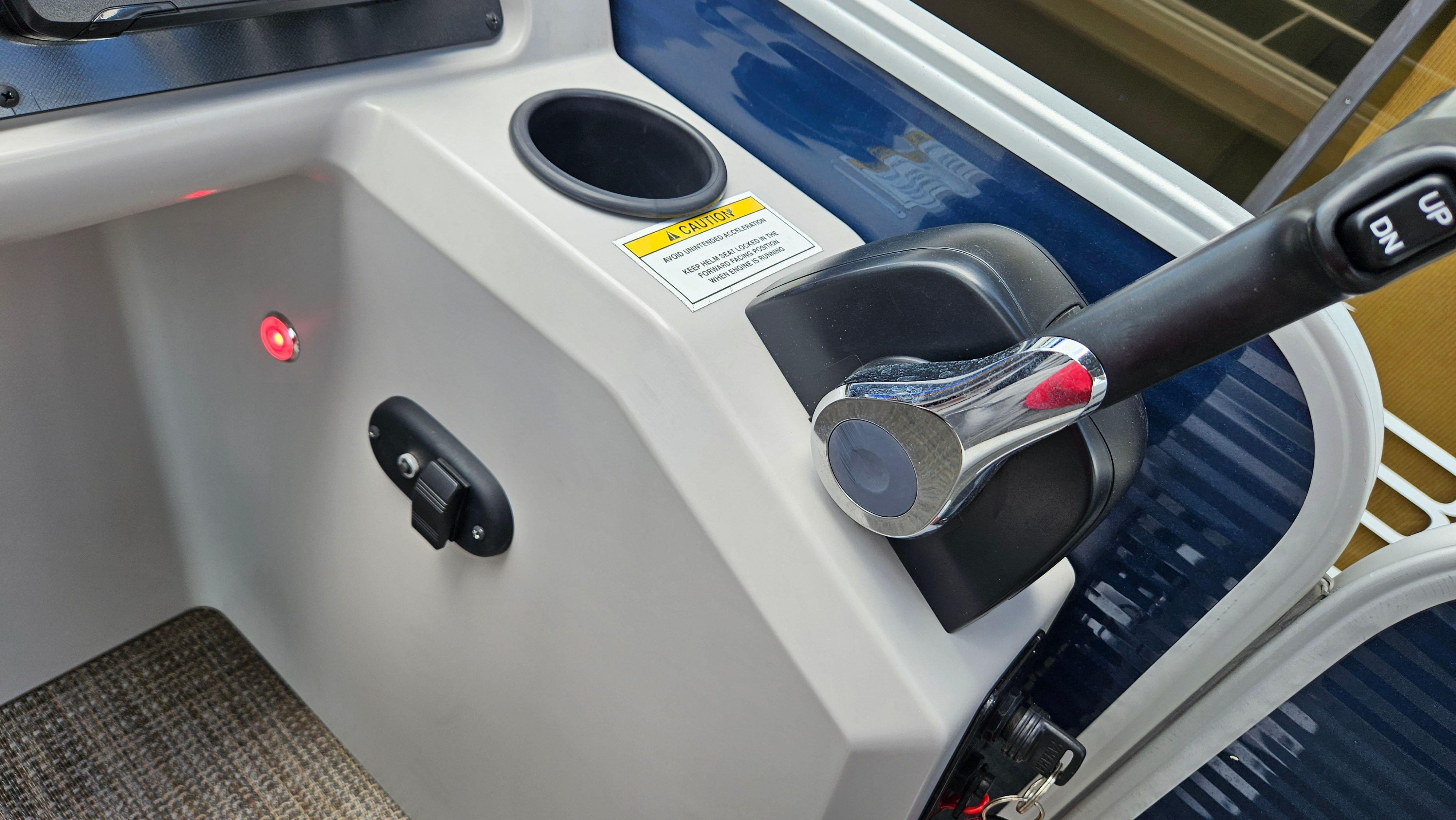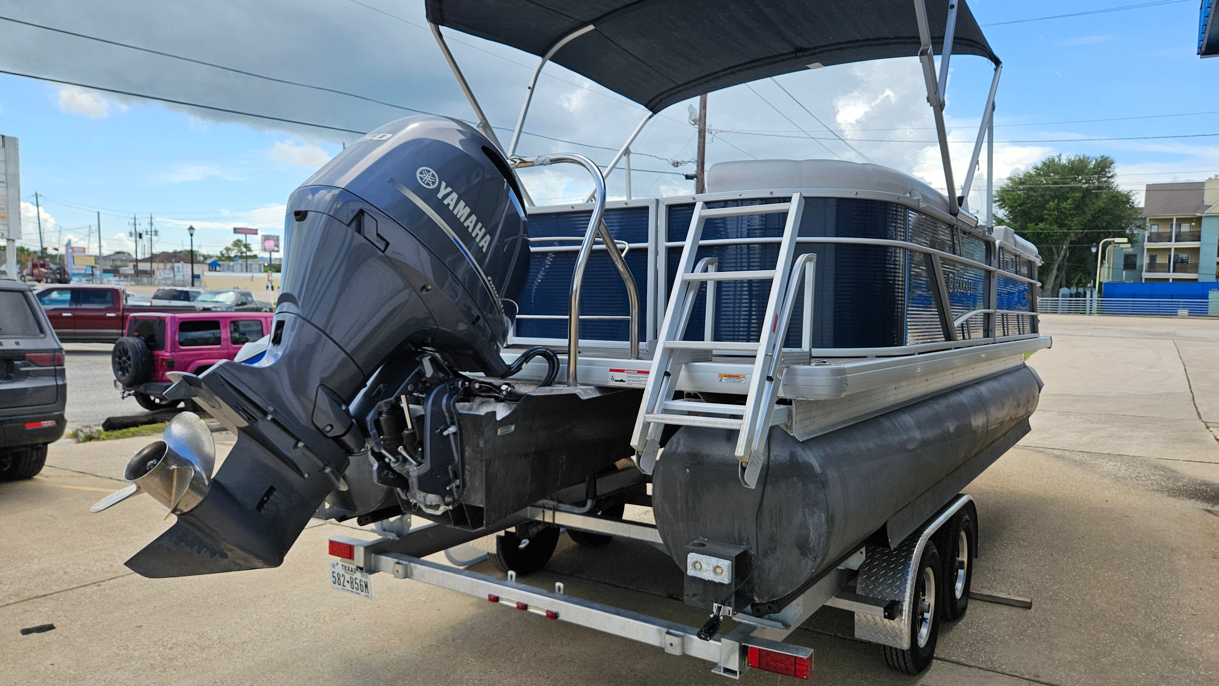 This Godfrey boat for sale is designed with practicality in mind, offering features that make ownership easy and enjoyable. The Aluminum Tandem Axle Trailer provides hassle-free transport and storage, allowing you to take your pontoon wherever adventure calls. Docking is straightforward thanks to the boat’s maneuverable size and responsive engine, while the Electric Bimini adds convenience by letting you adjust shade with the touch of a button. The efficient Yamaha engine helps keep fuel costs manageable, so you can spend more time on the water and less time at the pump. Whether you’re storing gear for a day of fishing or packing supplies for a family picnic, the ample deck space ensures you have everything you need within reach.