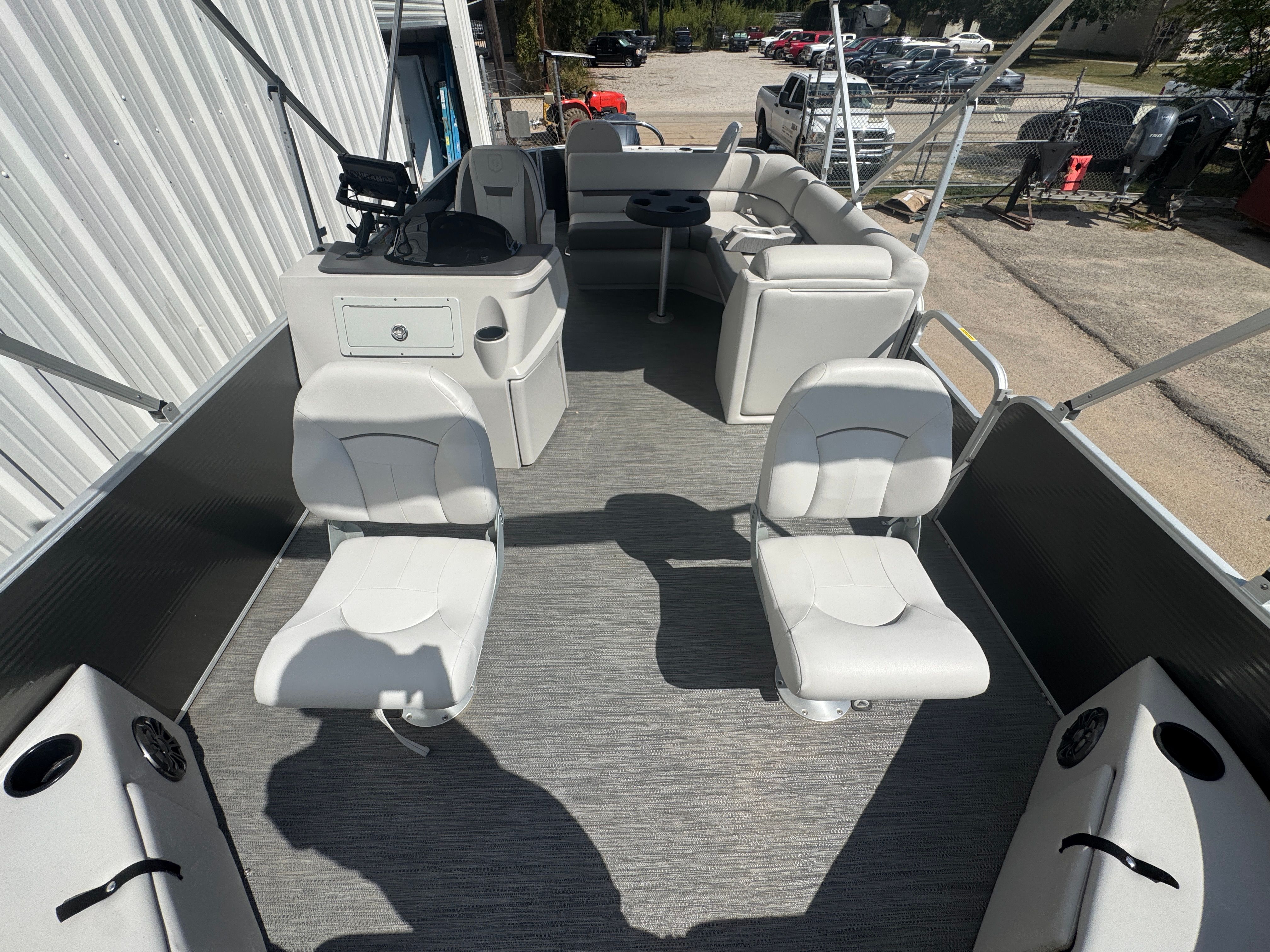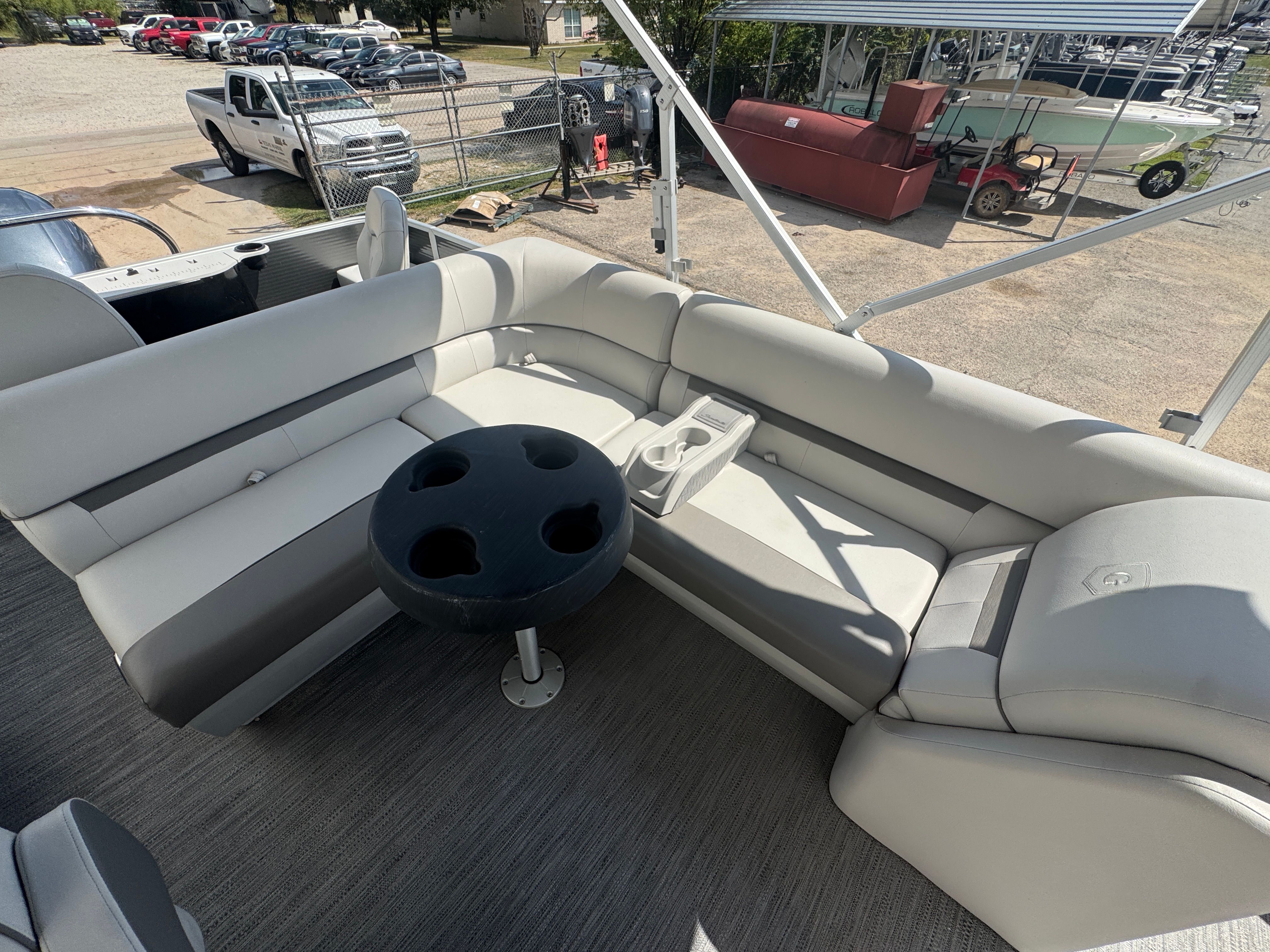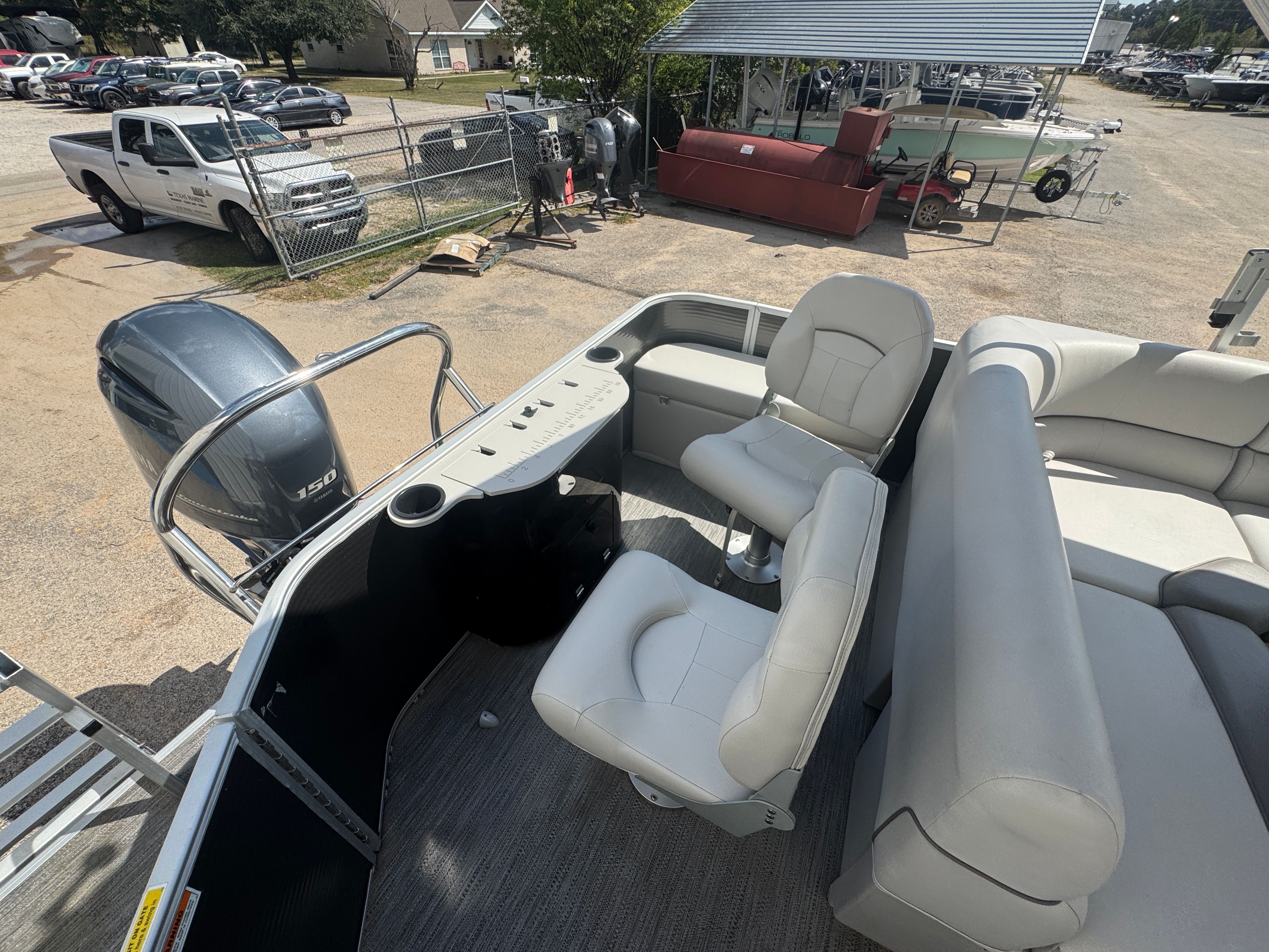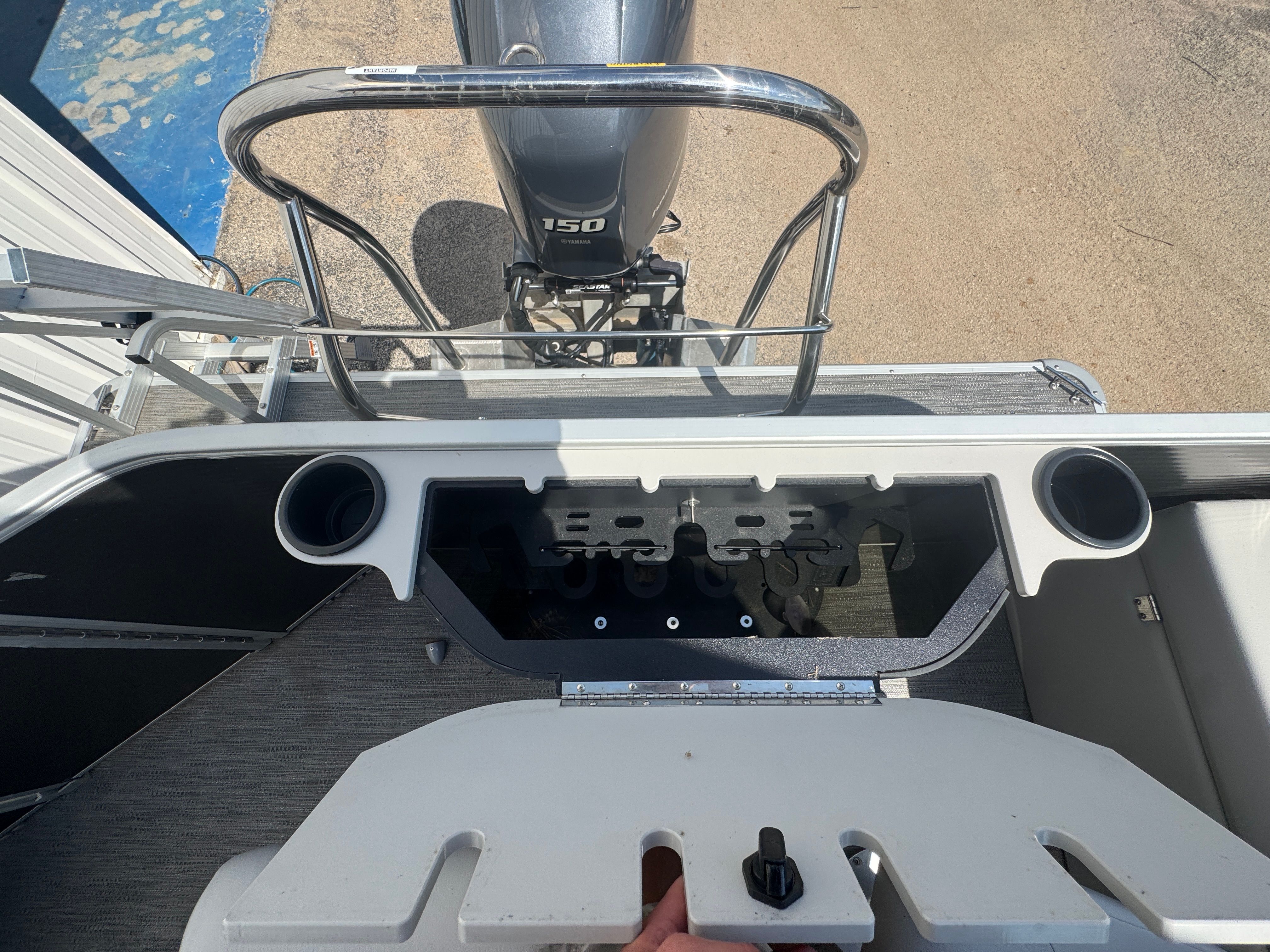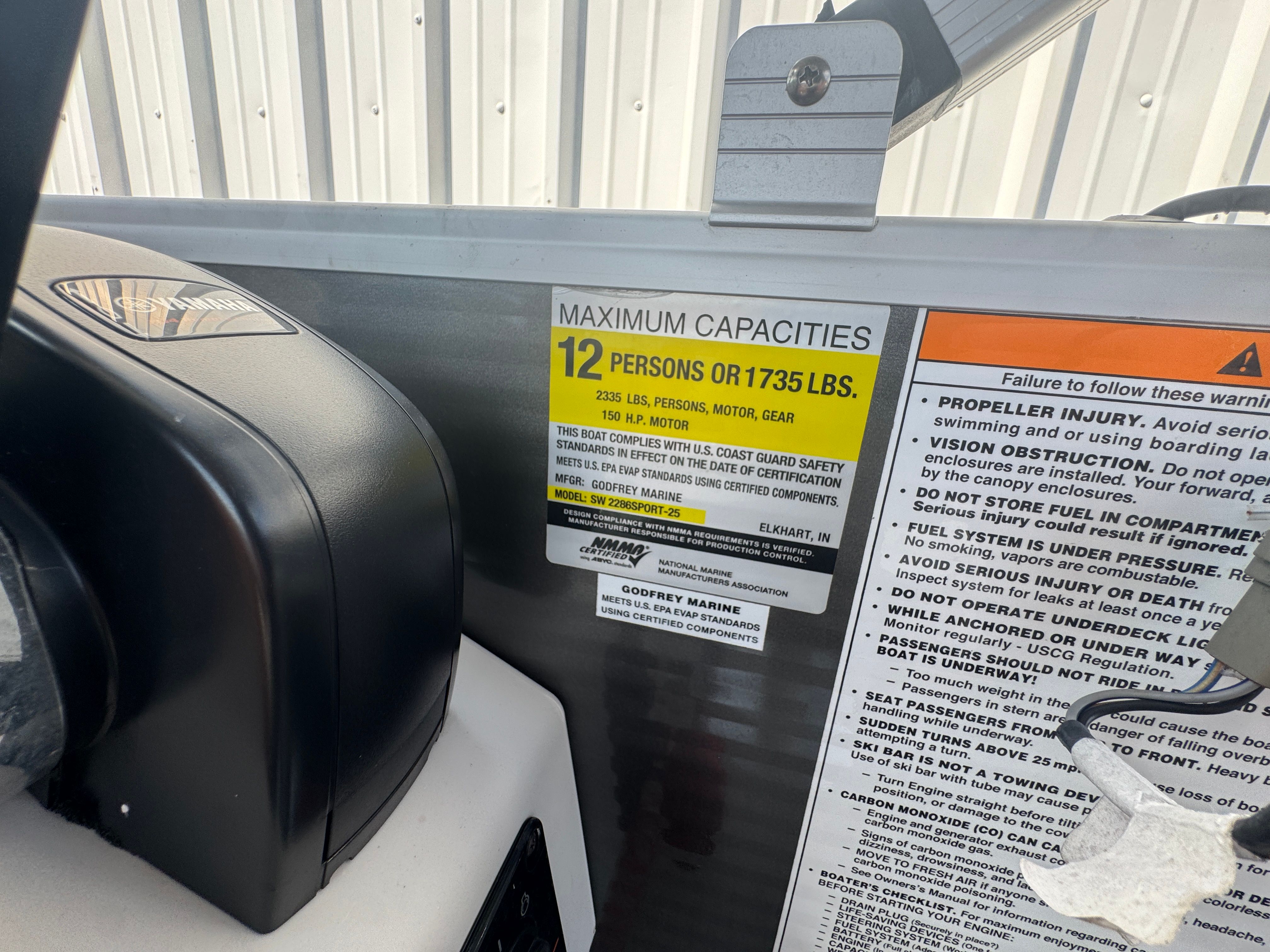 In addition to its recreational appeal, the Godfrey 2286 F is packed with practical features that make ownership a breeze. The pontoon’s manageable size and responsive handling make docking and maneuvering simple, even for those new to boating. The efficient 150-horsepower engine delivers a great balance of power and fuel economy, allowing you to enjoy longer outings without worrying about frequent refueling stops.Storage is another highlight of this pontoon boat. The well-designed layout includes ample storage compartments for all your gear, keeping the deck clutter-free and organized. Whether you’re stowing life jackets, fishing equipment, or picnic supplies, you’ll appreciate the thoughtful storage solutions that make every trip more enjoyable.