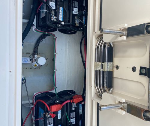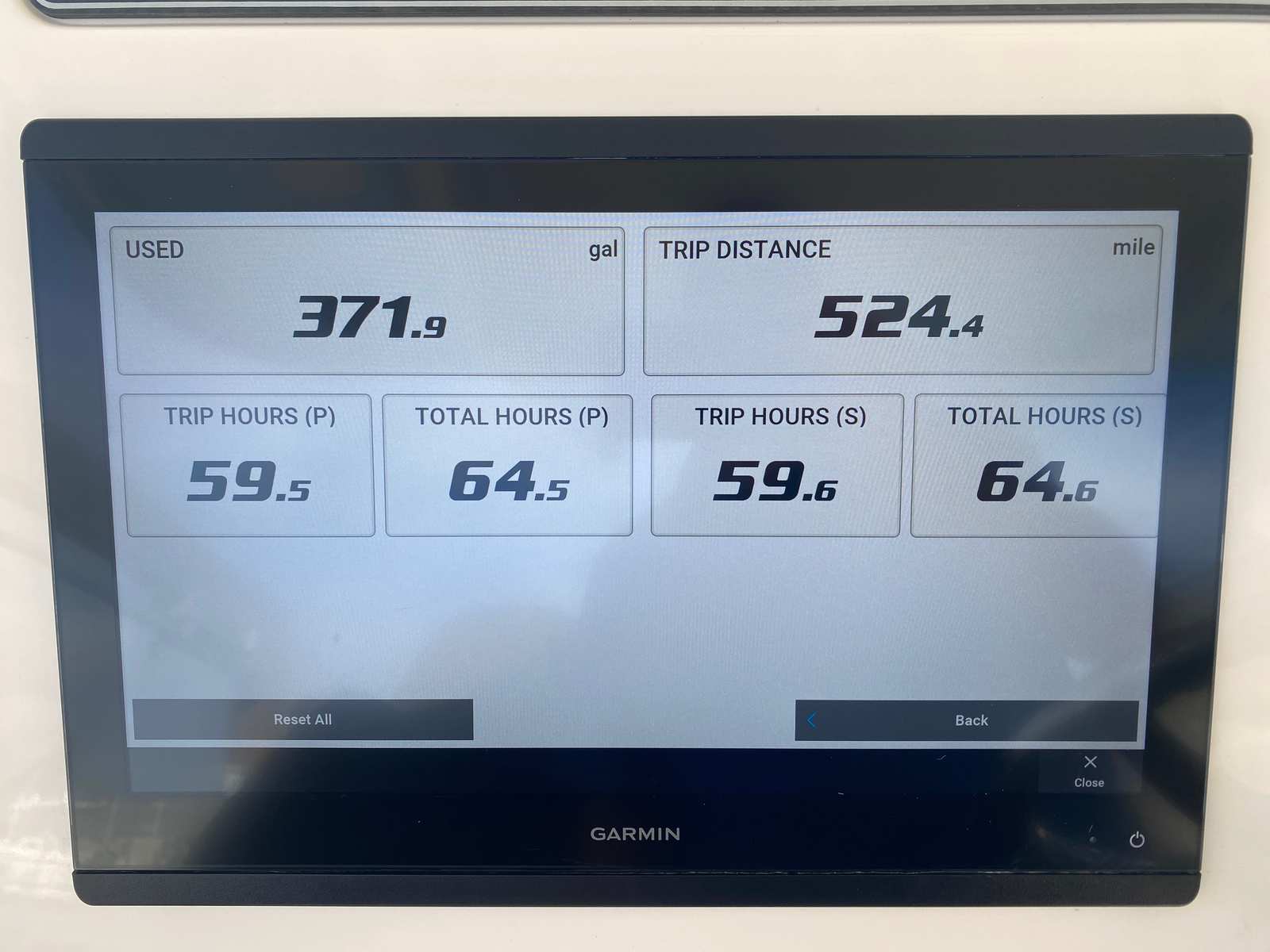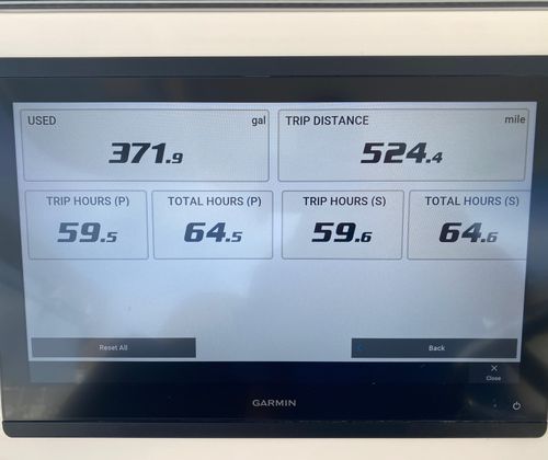 Under the hood, the Grady-White Canyon 326 is powered by twin engines, delivering a combined 600 horsepower. This impressive setup ensures smooth acceleration, responsive handling, and the ability to tackle a variety of water conditions with confidence. Whether you’re heading offshore for a fishing expedition or cruising along the coastline, the Canyon 326’s powerful engines provide the speed and agility you need for an exhilarating ride. With only 65 engine hours, these engines are barely broken in, offering years of dependable performance ahead.