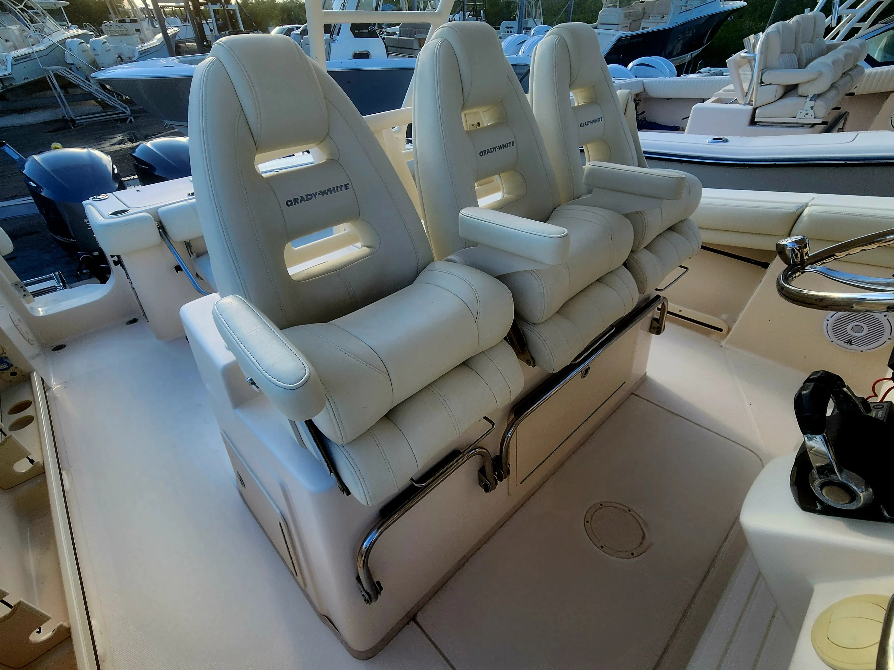 The Grady-White Canyon 336 is designed with practicality in mind, offering features that make ownership easy and stress-free. The ample storage compartments keep your gear organized and out of the way, while the intuitive helm layout simplifies navigation and control. Docking is made easier by the responsive handling and triple-engine configuration, allowing for precise maneuvering in tight spaces.Fuel efficiency is another key benefit, with the triple-engine setup providing the power you need without sacrificing economy. Whether you are planning a long offshore trip or a quick run to your favorite cove, the Canyon 336 is built to deliver reliable performance and minimize downtime. Maintenance is straightforward, thanks to Grady-White’s reputation for quality construction and attention to detail.