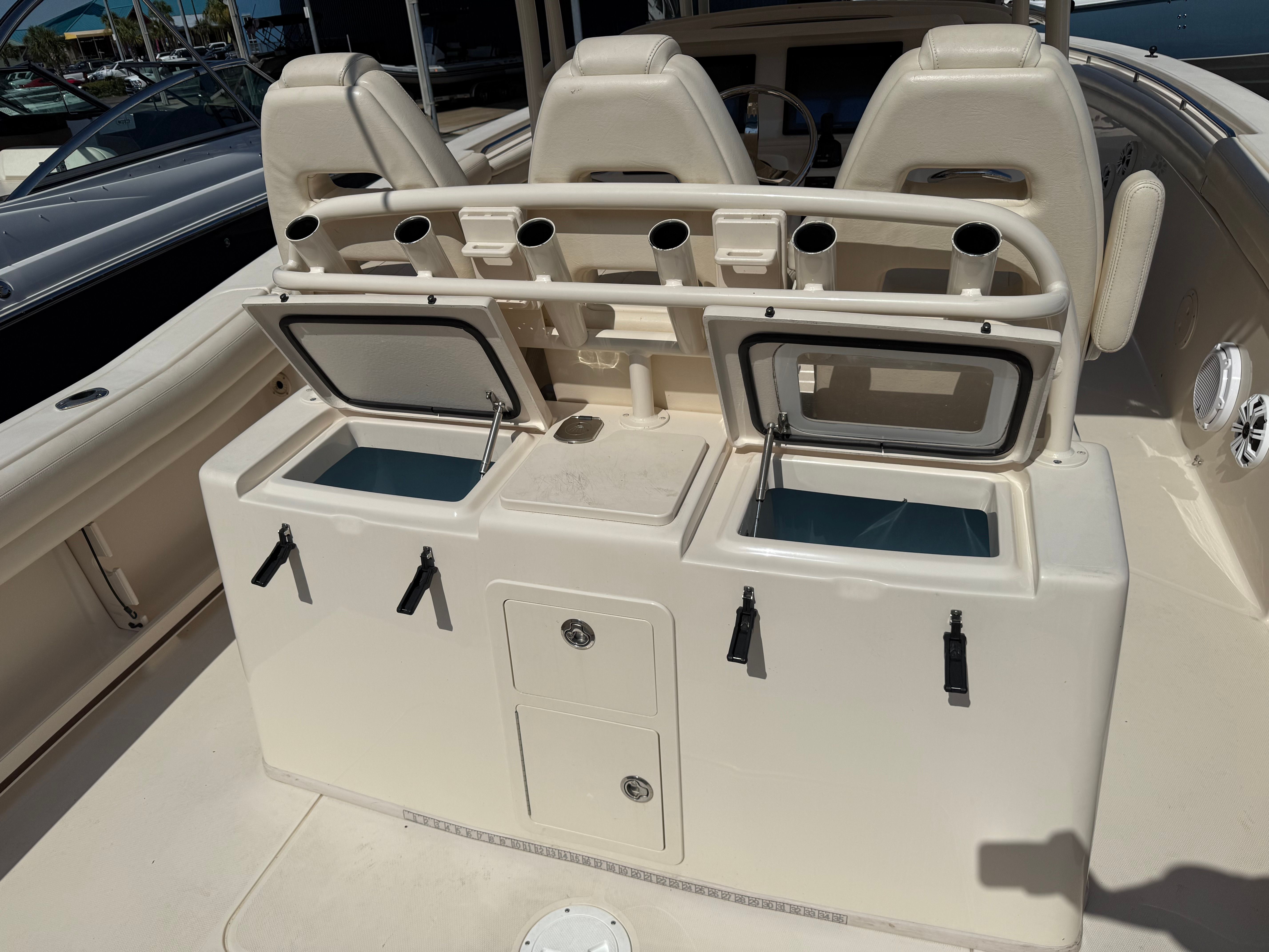 Practicality is at the heart of the Grady-White Canyon 336’s design. The boat’s ample storage options make it easy to stow fishing gear, water toys, and personal belongings, keeping the deck clutter-free and organized. The Center Console configuration allows for easy docking and maneuvering, making it a breeze to handle in marinas or tight spaces. The efficient twin-engine setup not only delivers impressive power but also contributes to better fuel economy, allowing you to spend more time on the water and less time at the fuel dock.The Canyon 336 is also designed with maintenance in mind, featuring accessible systems and high-quality components that simplify upkeep and ensure long-term reliability. Whether you are a seasoned boater or new to the world of Center Console boats, you will appreciate the ease of ownership that comes with a Grady-White.