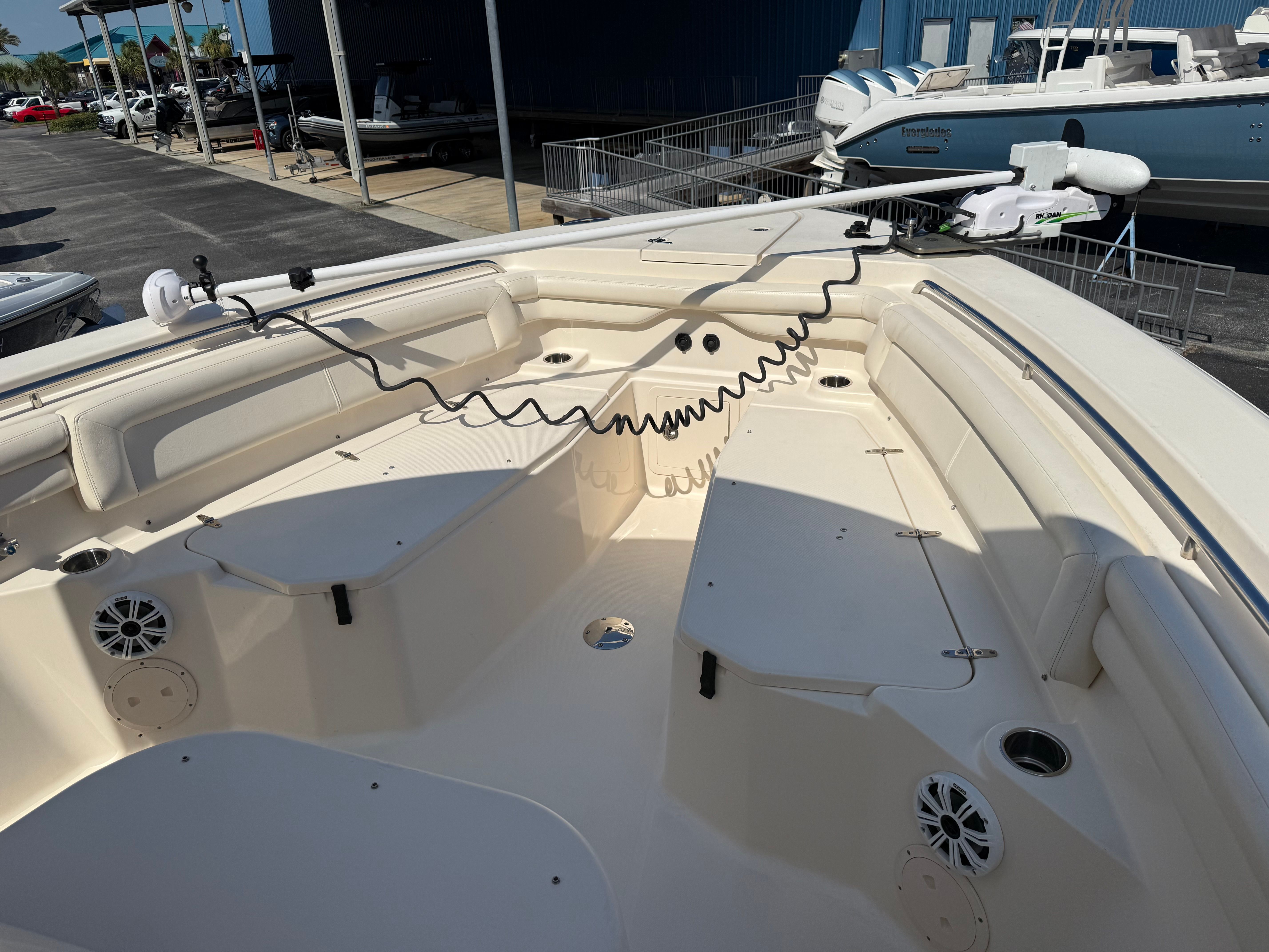 Equipped with twin engines delivering a combined 700 horsepower, the Grady-White Canyon 336 is engineered for exhilarating performance and reliable power. Whether you are cruising to your favorite fishing spot or embarking on a weekend adventure, this Center Console boat provides the speed and agility needed to handle a variety of water conditions. The dual-engine setup ensures not only impressive acceleration and top-end speed but also enhanced maneuverability and safety, giving you confidence on every outing. The Canyon 336’s hull design is optimized for stability and smooth rides, making it a pleasure to captain even in choppier waters.