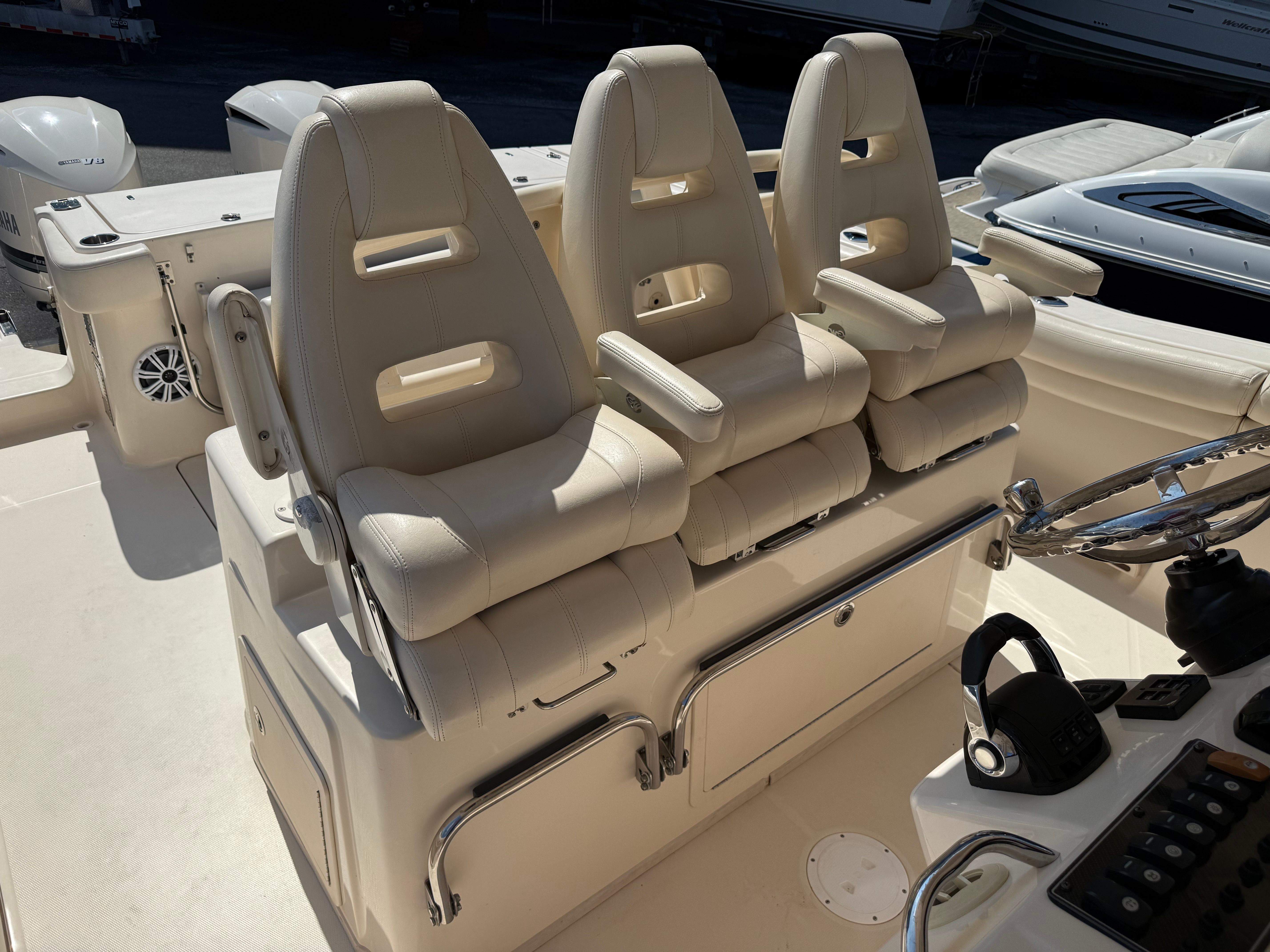 Owning a Grady-White Canyon 336 means enjoying the best of both worlds: serious fishing capabilities and luxurious comfort. The Center Console design is perfect for anglers, offering unobstructed access to all sides of the boat and plenty of space for gear and tackle. At the same time, the boat’s generous seating and social areas make it a fantastic platform for entertaining guests or spending quality time with family. The smooth ride and powerful engines ensure that every trip is enjoyable, whether you are chasing trophy fish offshore or cruising along the coastline.The Canyon 336’s reputation for reliability and performance means you can focus on making memories on the water, knowing your boat is built to handle whatever adventures come your way. Its spacious layout and thoughtful amenities make it easy to relax and unwind, turning every outing into a special occasion.
