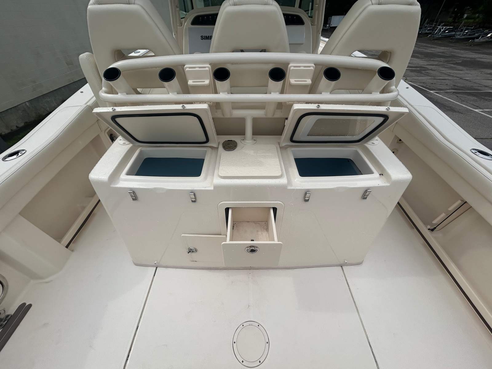 The Grady-White 336 Canyon is designed with practicality in mind, making ownership both enjoyable and convenient. The center console layout maximizes usable space, offering plenty of room for gear, coolers, and personal items. Docking and maneuvering are made easier by the responsive triple-engine setup, allowing you to navigate marinas and tight spaces with confidence. The efficient design also contributes to better fuel management, helping you make the most of every trip. Whether you are storing fishing equipment or preparing for a day on the water, the thoughtful storage solutions and easy-access compartments ensure everything you need is within reach.