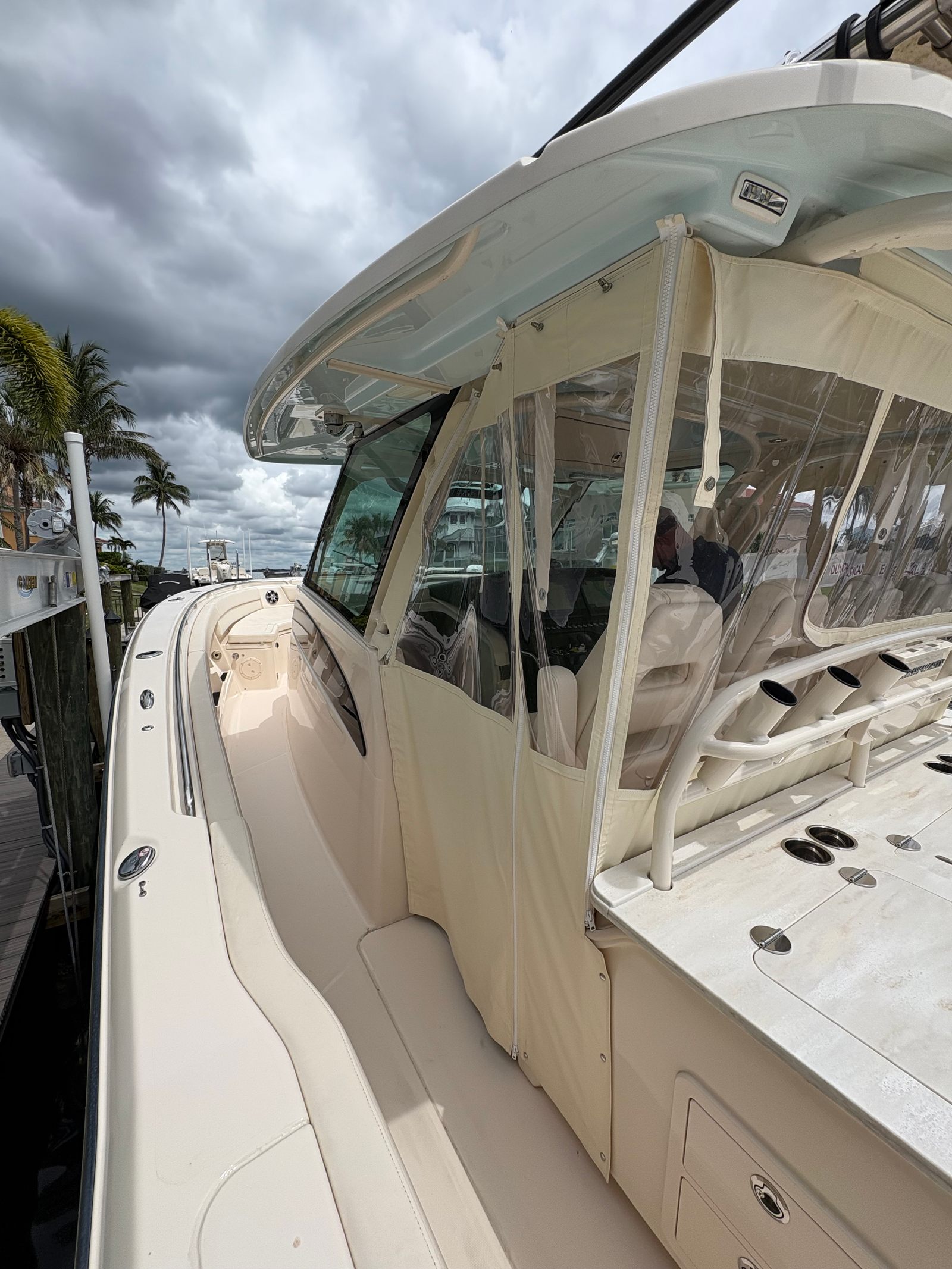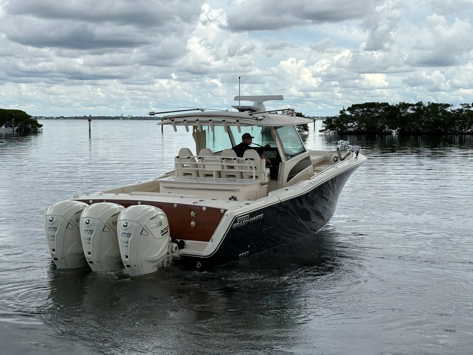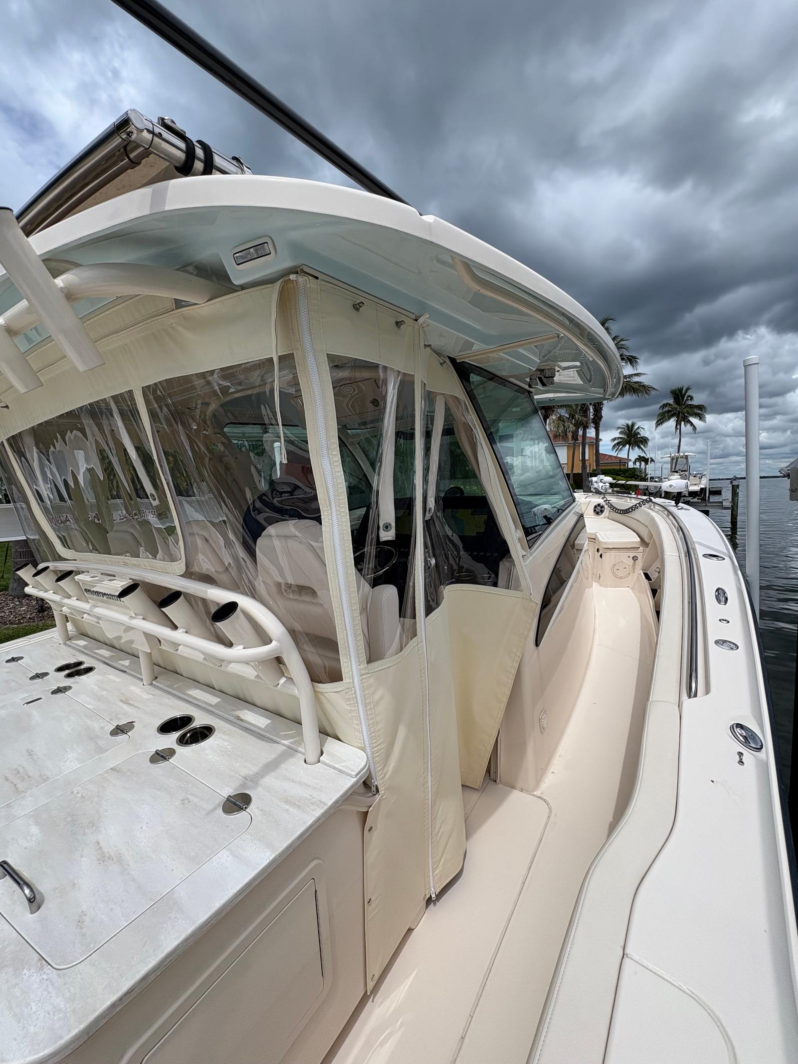 The Grady-White Canyon 386 is designed with practicality in mind, making ownership both enjoyable and convenient. The Center Console layout provides generous storage options for gear, supplies, and personal items, keeping the deck clutter-free and organized. The boat’s size and triple-engine setup make docking straightforward, while the efficient engines help optimize fuel consumption for longer journeys. Maintenance is simplified thanks to Grady-White’s reputation for reliability and thoughtful engineering. Whether you are planning a weekend getaway, a day of fishing, or a sunset cruise, the Canyon 386 adapts to your needs with ease.
