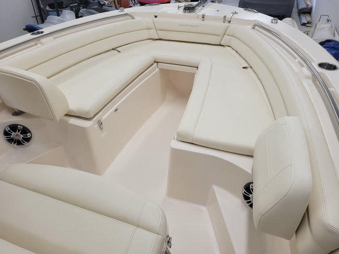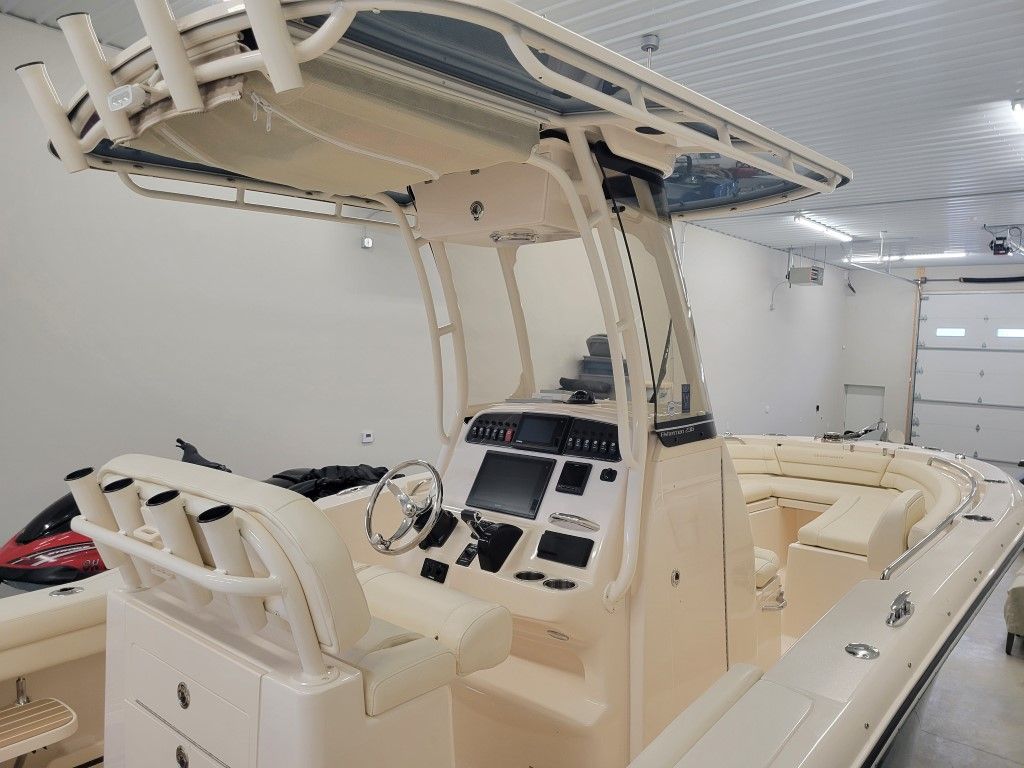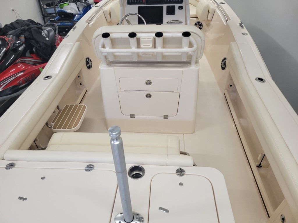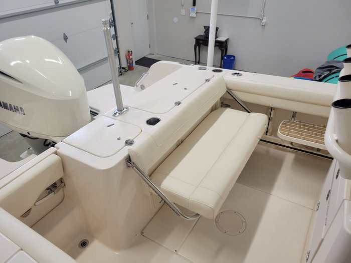 This Center Console boat for sale is designed with practicality in mind. The cockpit storage allows you to stow away fishing gear, water toys, and personal items, keeping the deck clutter-free and maximizing usable space. The full custom canvas cover makes it easy to protect your boat from the elements, reducing wear and tear and preserving its value. Docking and maneuvering are simplified by the boat’s responsive handling and well-thought-out design. The efficient Yamaha engine not only delivers impressive power but also helps manage fuel consumption, making longer trips more economical. The compass and depth sounder further enhance your ability to navigate safely, whether you’re exploring new waters or returning to your favorite marina.