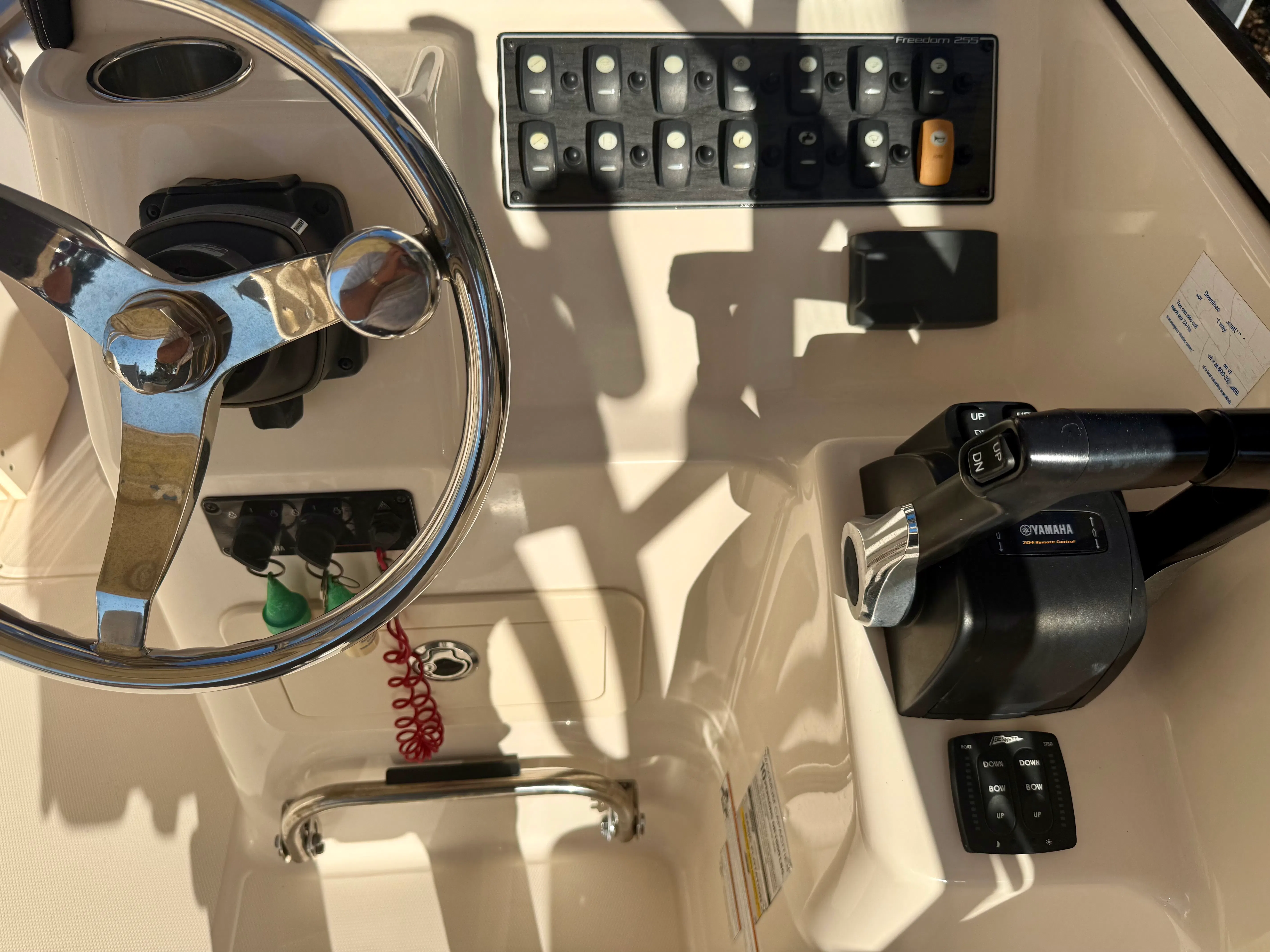 Designed with versatility in mind, this 255 Freedom includes both freshwater and raw water washdown systems, making cleanup after a day of fishing or cruising quick and easy. A fully enclosed marine head adds convenience for longer days on the water, while the spacious bow-to-stern seating layout ensures comfort for family and guests. Whether you’re heading offshore to fish, cruising the backwaters, or enjoying a relaxing day at the sandbar, this boat adapts effortlessly to any on-the-water adventure.