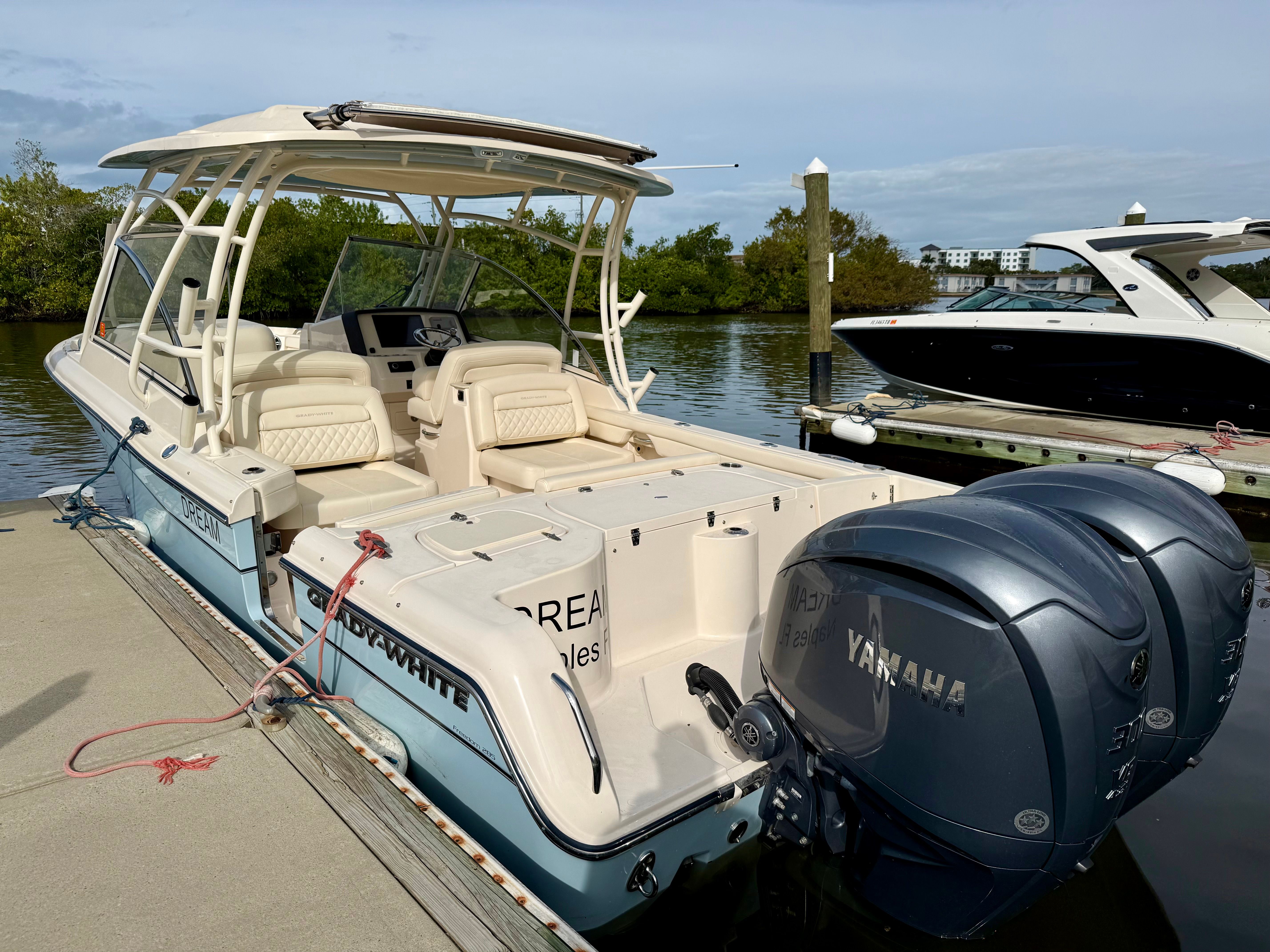 Owning a Grady-White Freedom 285 means embracing a lifestyle of fun, relaxation, and adventure. This dual console boat for sale is perfect for creating lasting memories with family and friends, thanks to its spacious layout and comfortable seating. The versatile design allows you to enjoy a wide range of activities, from sunbathing and swimming to fishing and watersports. The powerful twin engines ensure that you can reach your favorite destinations quickly and efficiently, while the smooth ride keeps everyone comfortable, even in choppy conditions. With its blend of luxury and practicality, the Freedom 285 is a boat that truly stands out on the water.