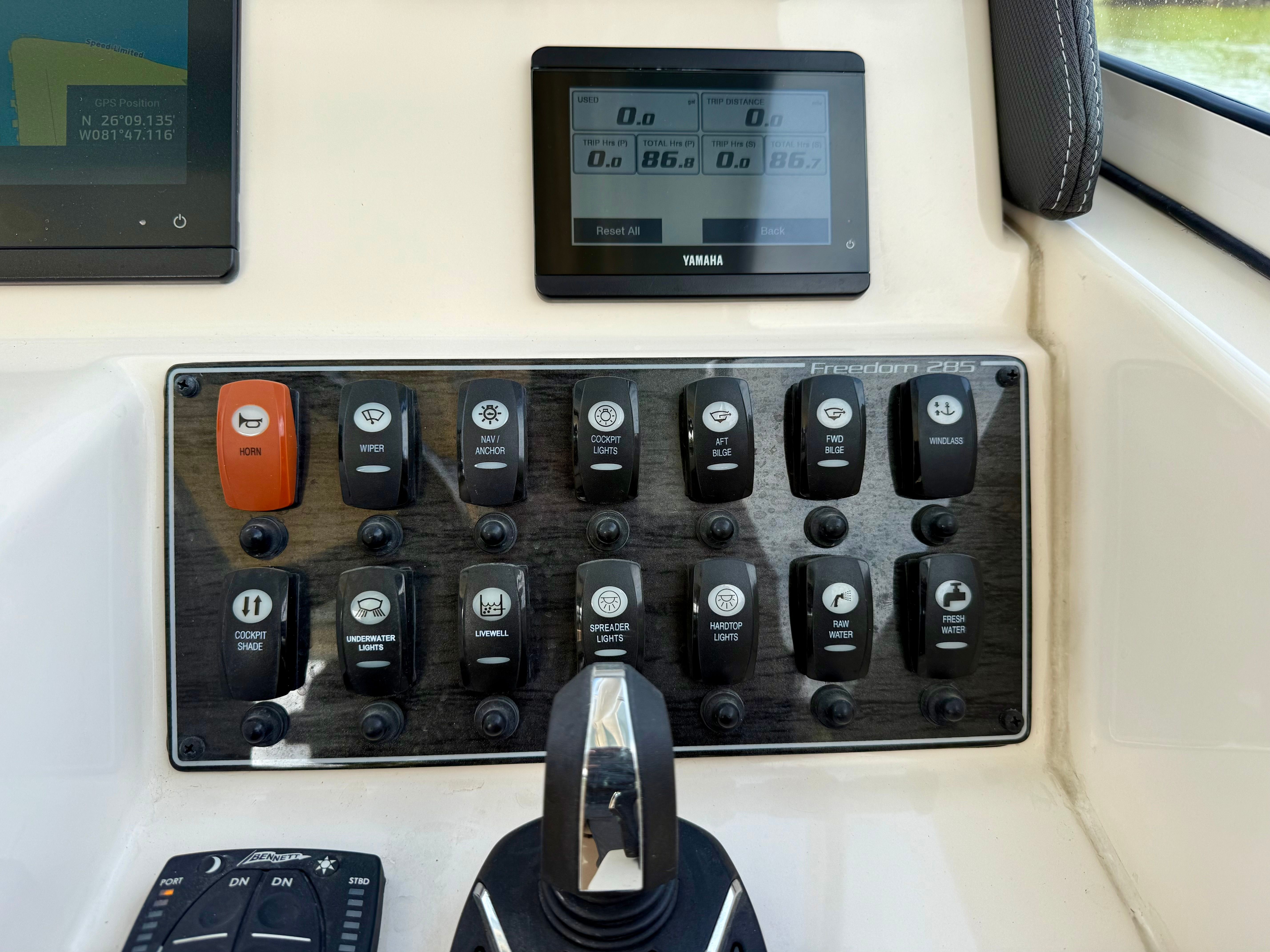 Power and reliability are at the heart of the 2024 Grady-White Freedom 285. Equipped with twin engines delivering a combined 600 horsepower, this dual console boat is engineered for exhilarating performance and smooth handling. The twin-engine setup not only provides impressive speed and acceleration but also enhances maneuverability and control, making docking and navigating tight spaces a breeze. With only 86 engine hours, these engines have plenty of life left, ensuring you can enjoy countless adventures with confidence. Whether you’re cruising along the coastline or heading offshore, the Freedom 285’s power and agility make every journey enjoyable.