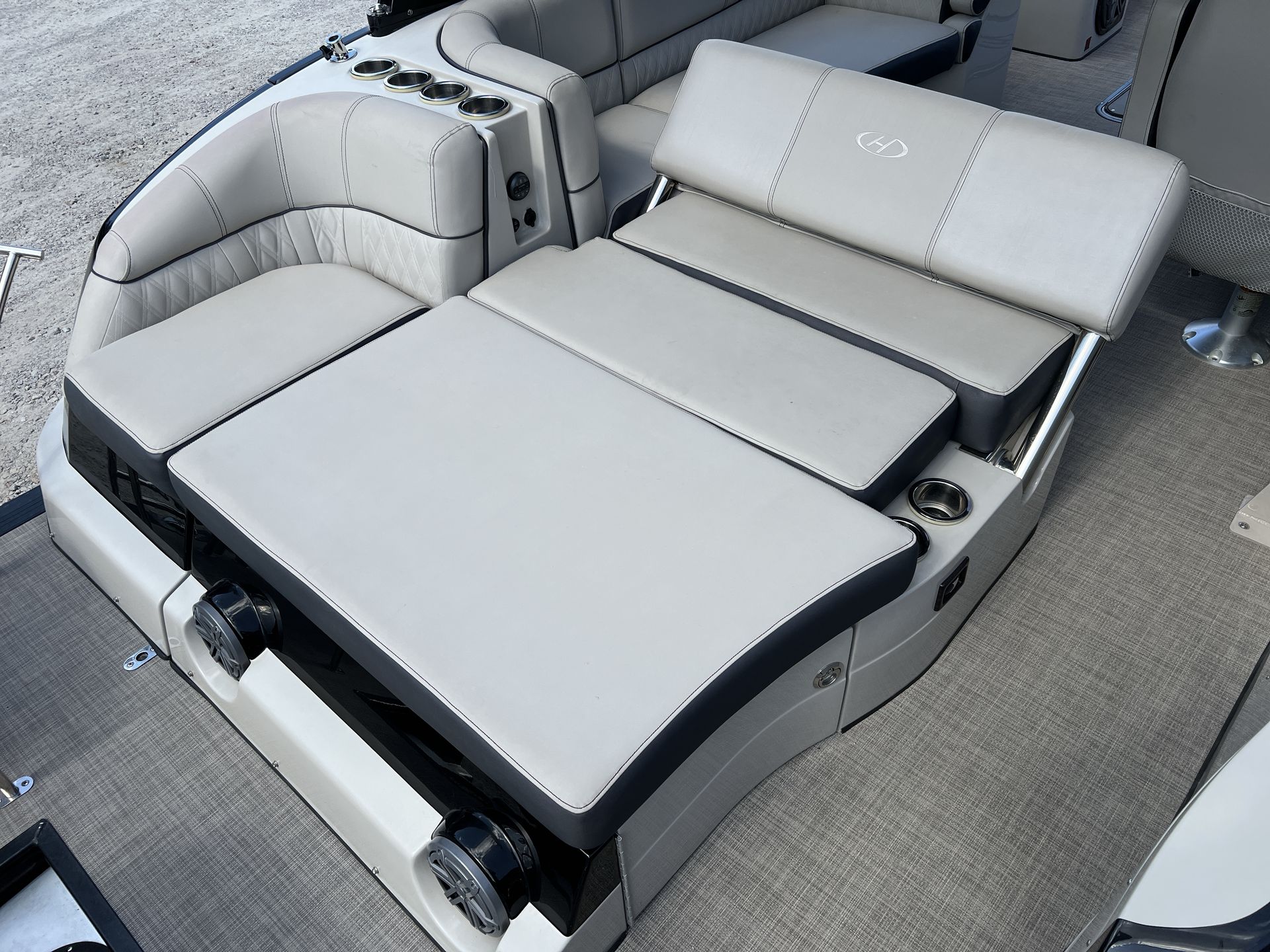 In addition to its luxurious features, the Harris Crowne 250 is designed with practicality in mind. The ample storage space allows you to bring along all the essentials for a day on the water, from water toys and fishing gear to picnic supplies and extra towels. The pontoon’s user-friendly design makes docking and maneuvering a breeze, even for those new to boating. Its efficient engine helps maximize fuel economy, allowing you to spend more time enjoying the water and less time at the fuel dock. Whether you are planning a day of fishing, a family outing, or a relaxing cruise, the Crowne 250 is equipped to handle it all with ease.