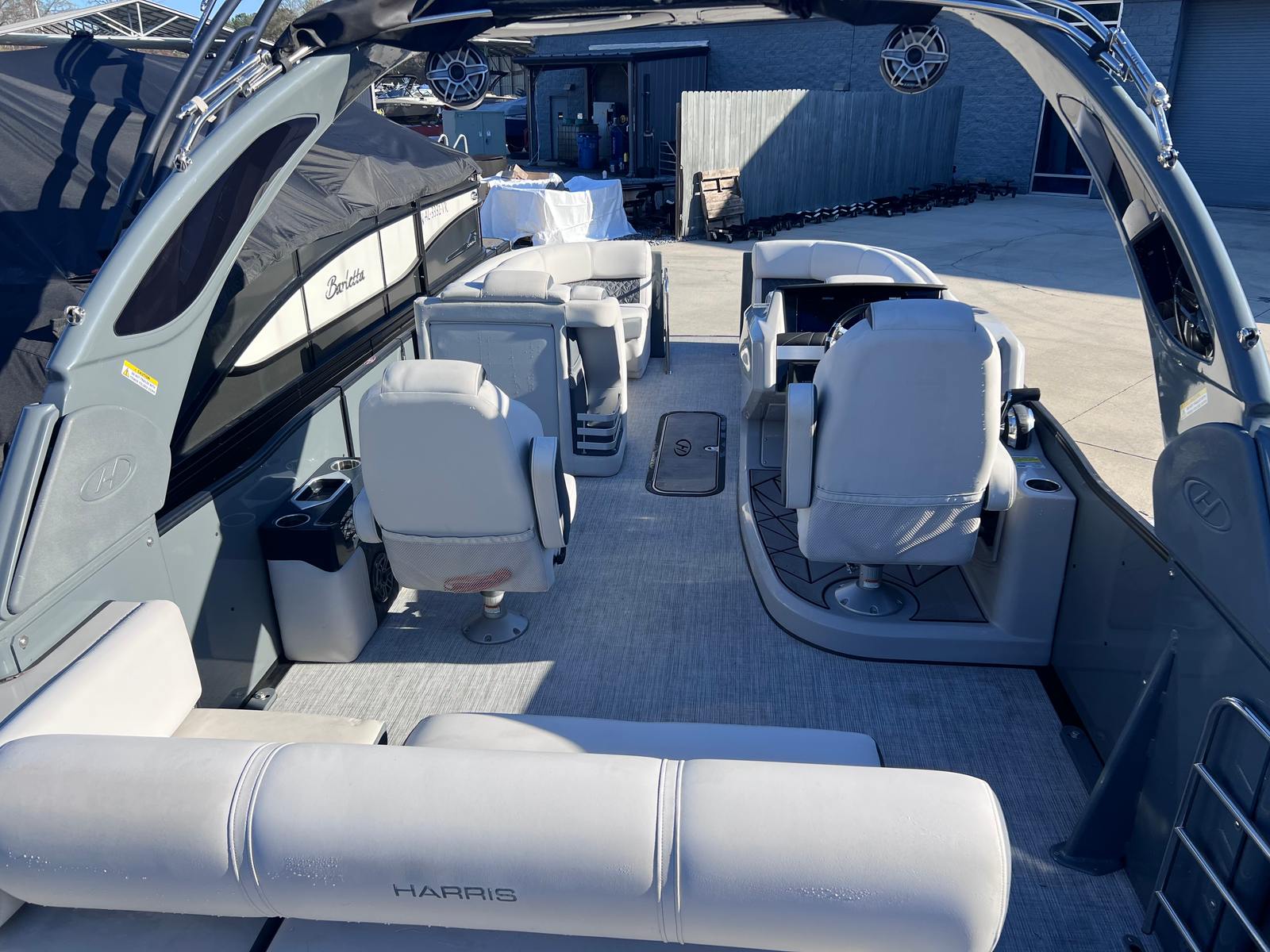 The 2022 Harris Grand Mariner 230 comes equipped with a range of features designed to enhance your time on the water. Its spacious deck layout provides plenty of room for guests to move about comfortably, while the plush seating invites you to sit back and unwind. The pontoon’s thoughtful design ensures that every inch of space is utilized efficiently, making it ideal for socializing, sunbathing, or enjoying a meal with loved ones. The high-quality construction and attention to detail are evident throughout, from the durable flooring to the stylish railings and fixtures. With its generous length and well-planned layout, this Harris boat for sale offers both functionality and elegance.