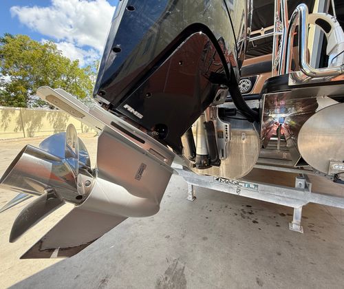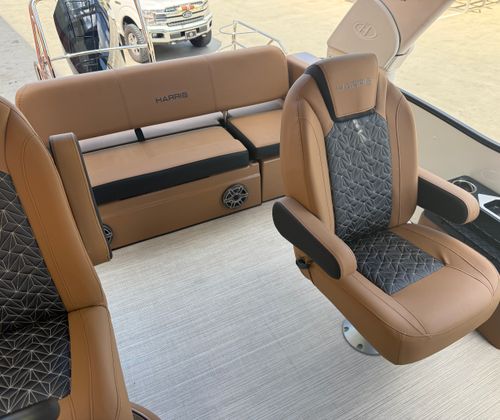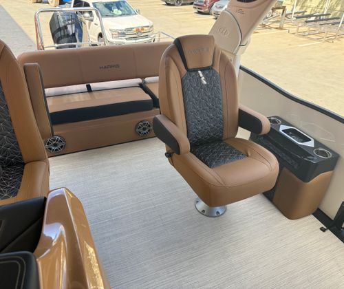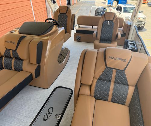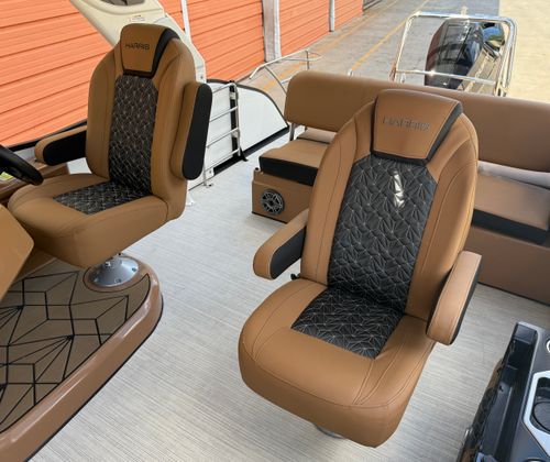 New to the market (9/2025), this 2024 Harris Grand Mariner 250 does not disappoint!! She is powered by a Mercury 350L V10 Verado with only 38 HOURS. She has a Collapsible Tower with Power Lift...press of a button at the Helm. Her Chestnut Brown upholstery with ONYX accents is stunning. She has double Captains Chairs with U-Lux (Hiback) and elevated Helm. Operating this GEM is extremely smooth with her Mercury Power Assist Steering.