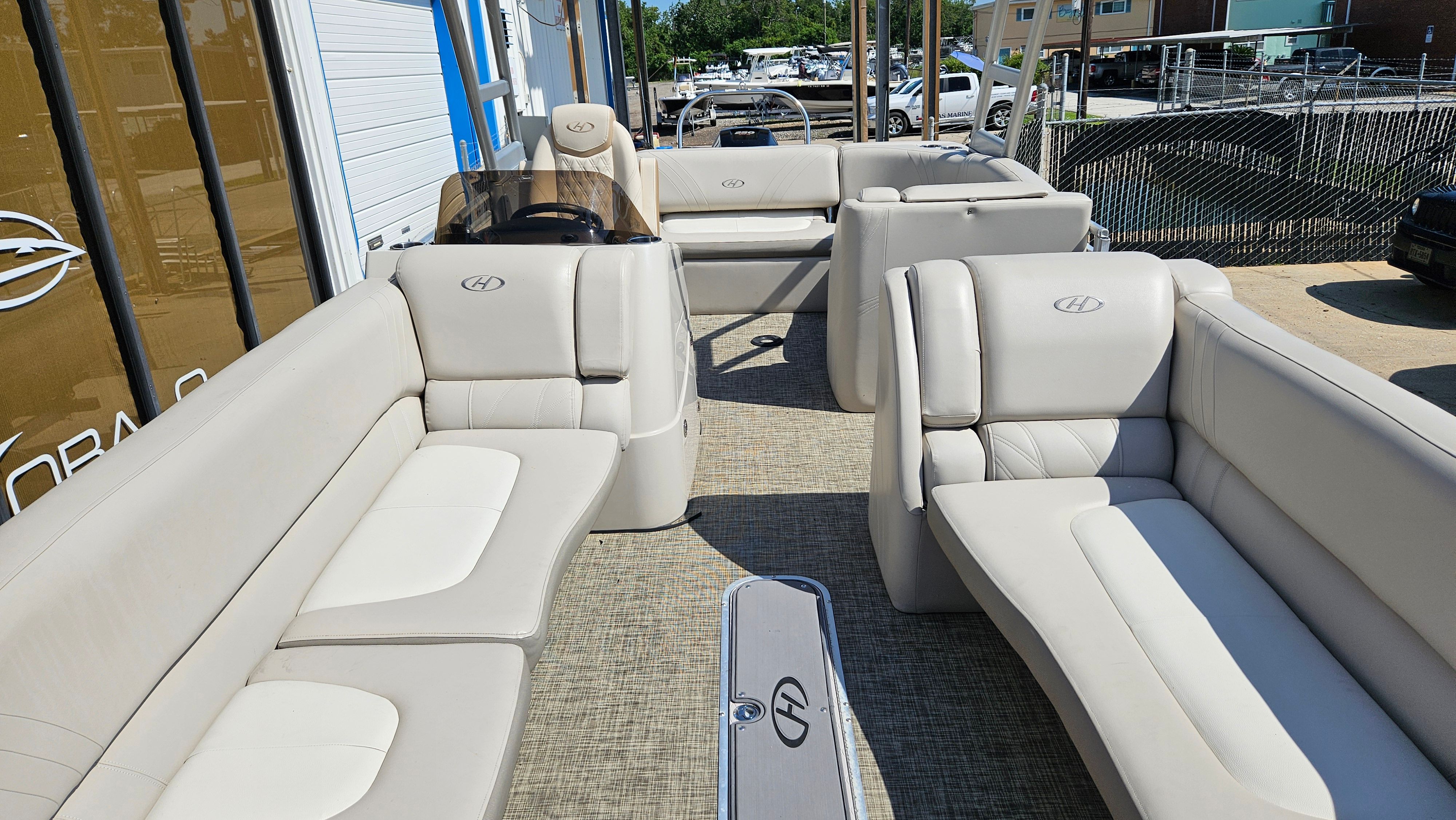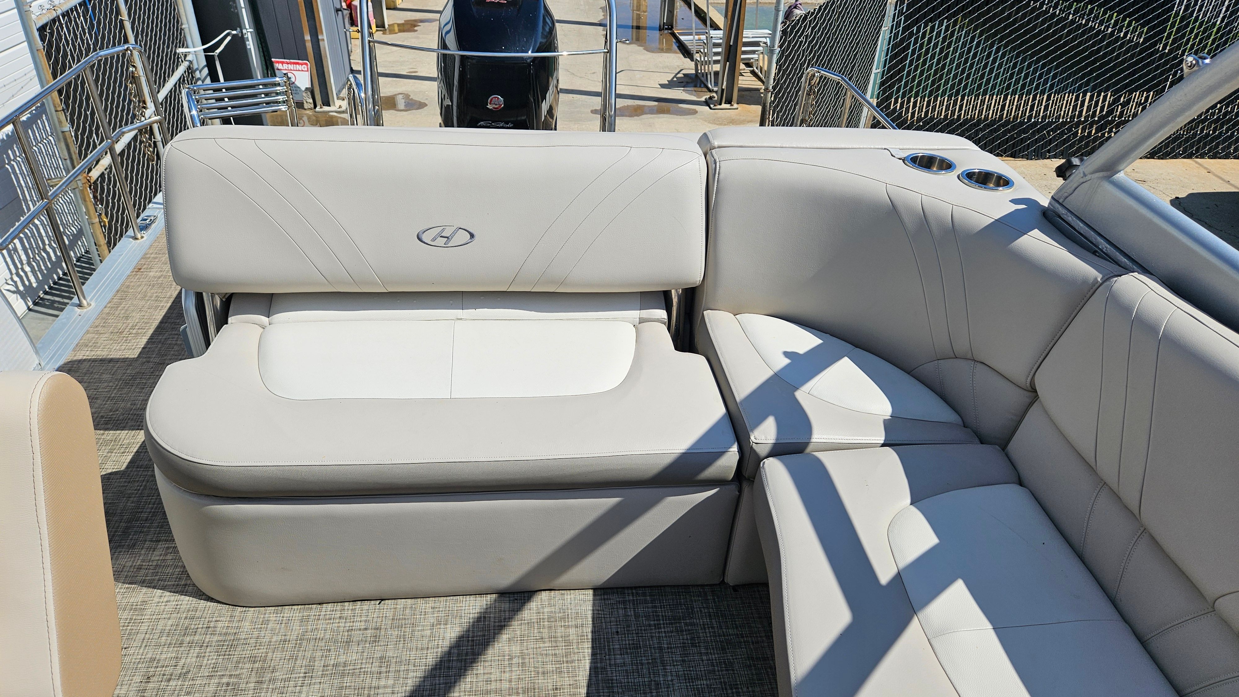 Equipped with a powerful single engine boasting 250 horsepower, the Harris Solstice 240 delivers impressive performance that sets it apart from other pontoon boats for sale. Whether you’re cruising at a leisurely pace or seeking a bit of excitement with higher speeds, this pontoon responds with smooth acceleration and agile handling. The engine’s 154 hours reflect careful use and maintenance, ensuring dependable operation for years ahead. With this level of horsepower, you’ll enjoy effortless navigation, responsive steering, and the ability to explore a wide range of waterways with confidence.