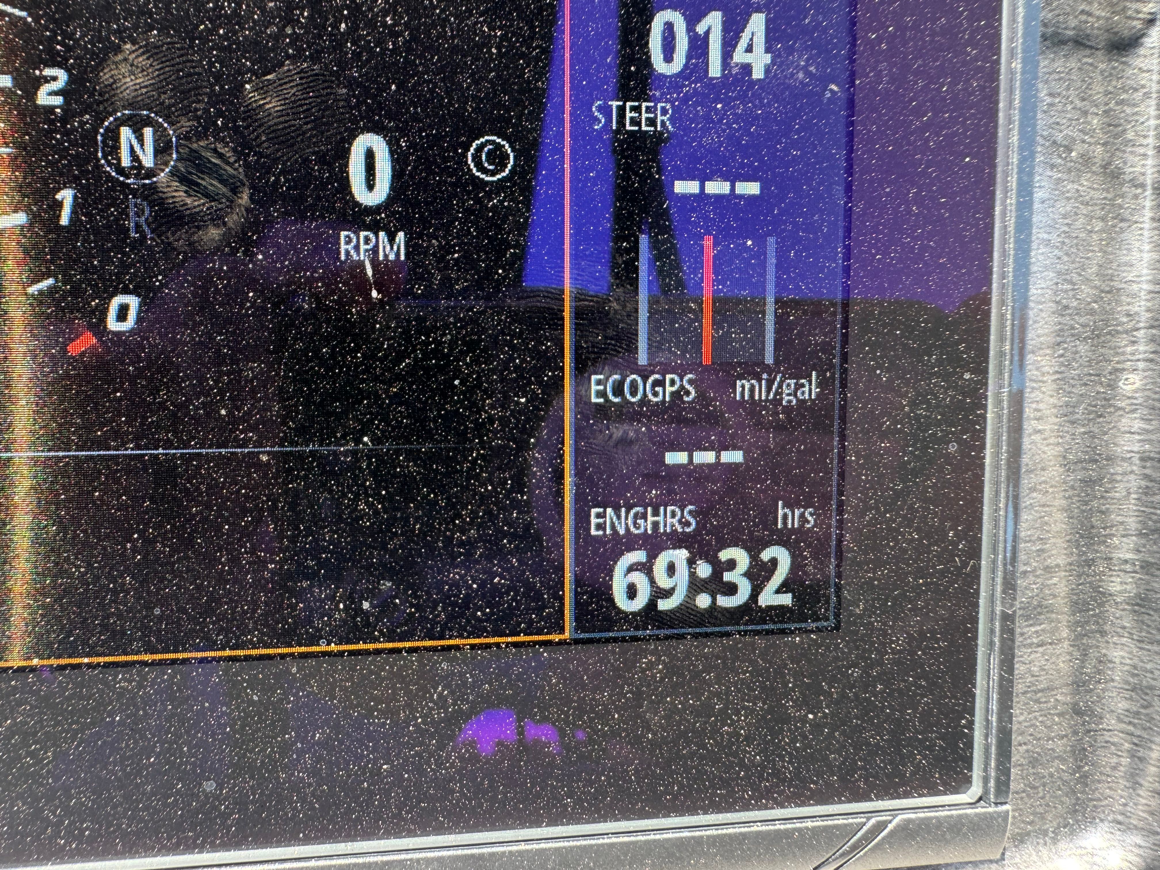 Under the deck, the Harris Sunliner 250 is powered by a single engine delivering an impressive 250 horsepower. This setup provides the perfect balance of power and efficiency, allowing you to glide effortlessly across the water or pick up speed for thrilling rides. With only 68 engine hours, the engine is in excellent condition, offering reliable performance for many seasons to come. Whether you are cruising along the shoreline, towing water toys, or exploring new coves, the Sunliner 250’s responsive handling and robust horsepower ensure every outing is smooth, safe, and exhilarating.