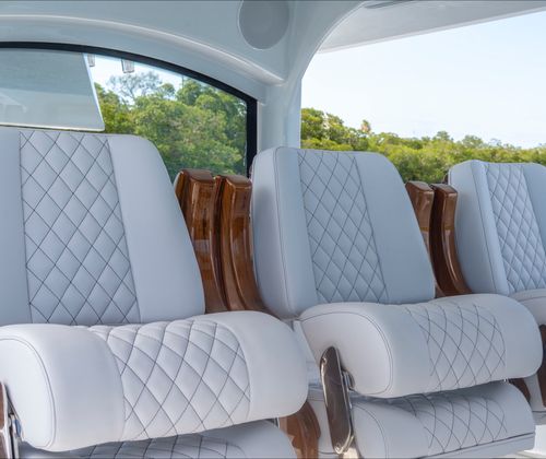 Rear Facing Mezzanine Seating - Includes (2) Refrigerators, (1) Freezer, Fold-Out Tackle Storage and Counter