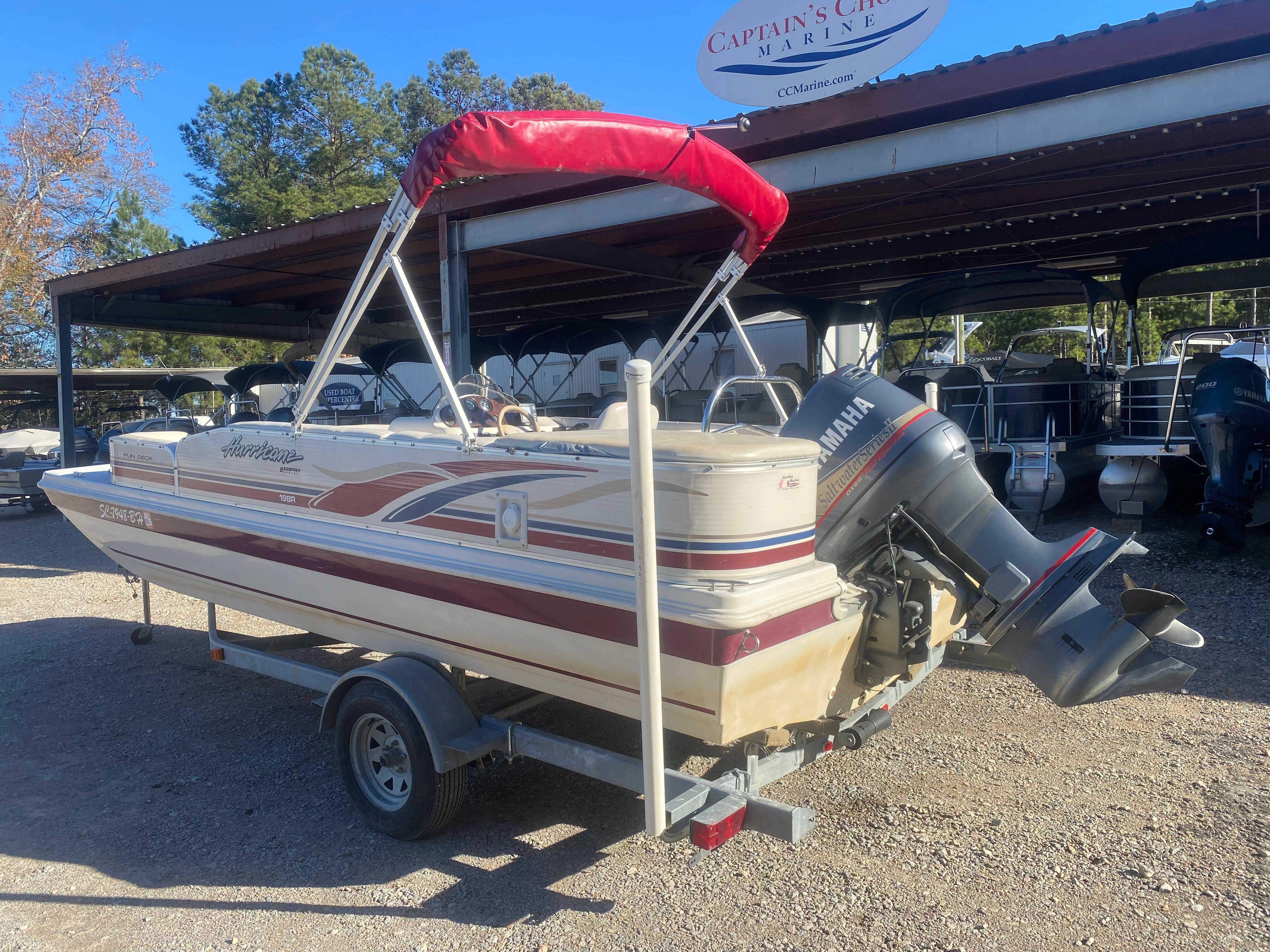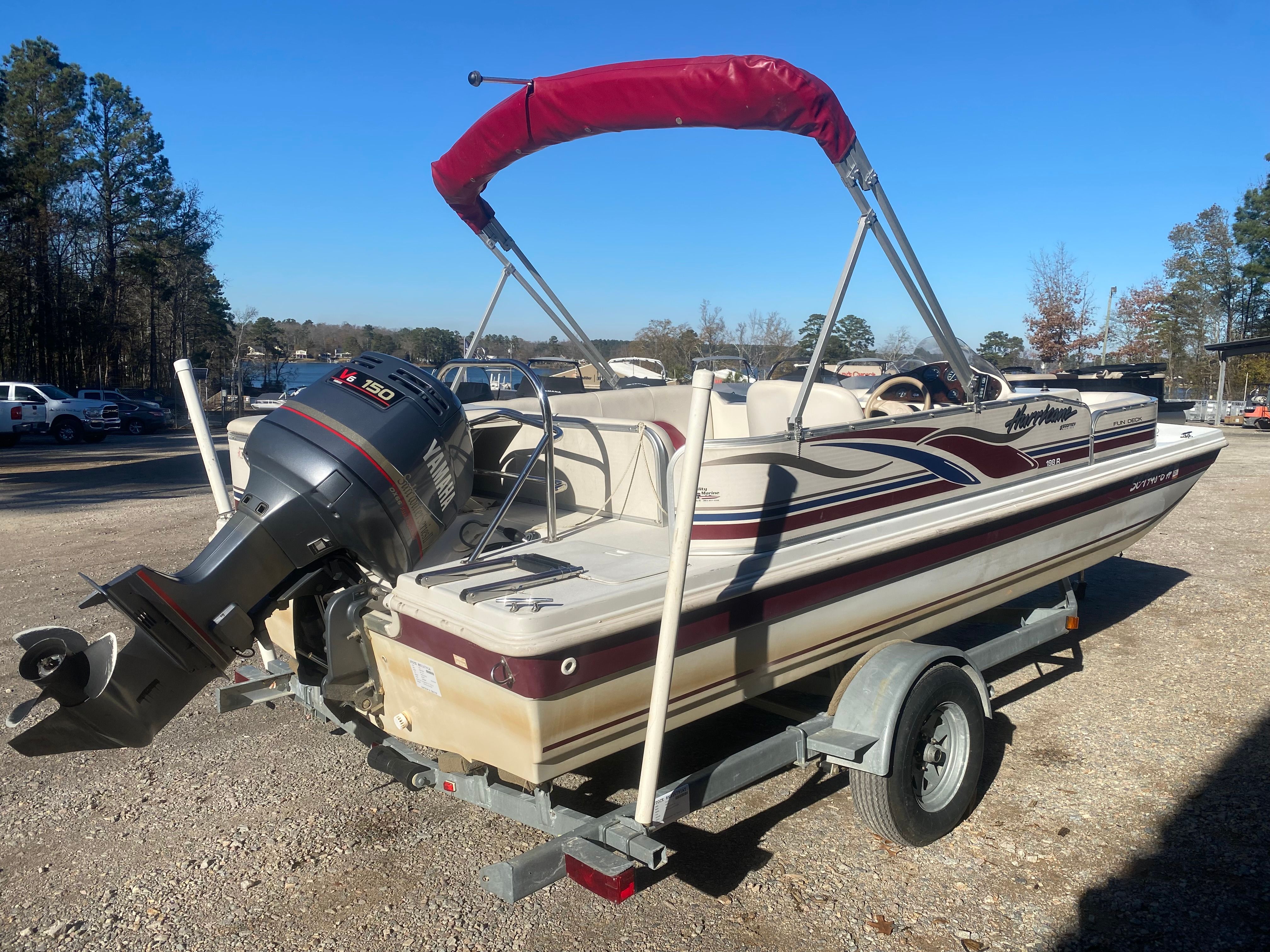 The 2000 Hurricane Fundeck 198 is a standout deckboat boat for sale, offering a winning combination of comfort, performance, and versatility. With its spacious 19-foot deck, powerful 150 HP engine with only 1 hour of use, and practical design, this used Hurricane boat for sale is ready to deliver years of enjoyment. Whether you’re seeking adventure, relaxation, or quality time with loved ones, the Fundeck 198 is your ticket to unforgettable days on the water. Don’t miss your chance to own this exceptional deckboat—contact the dealer today to learn more and make the Hurricane Fundeck 198 yours!