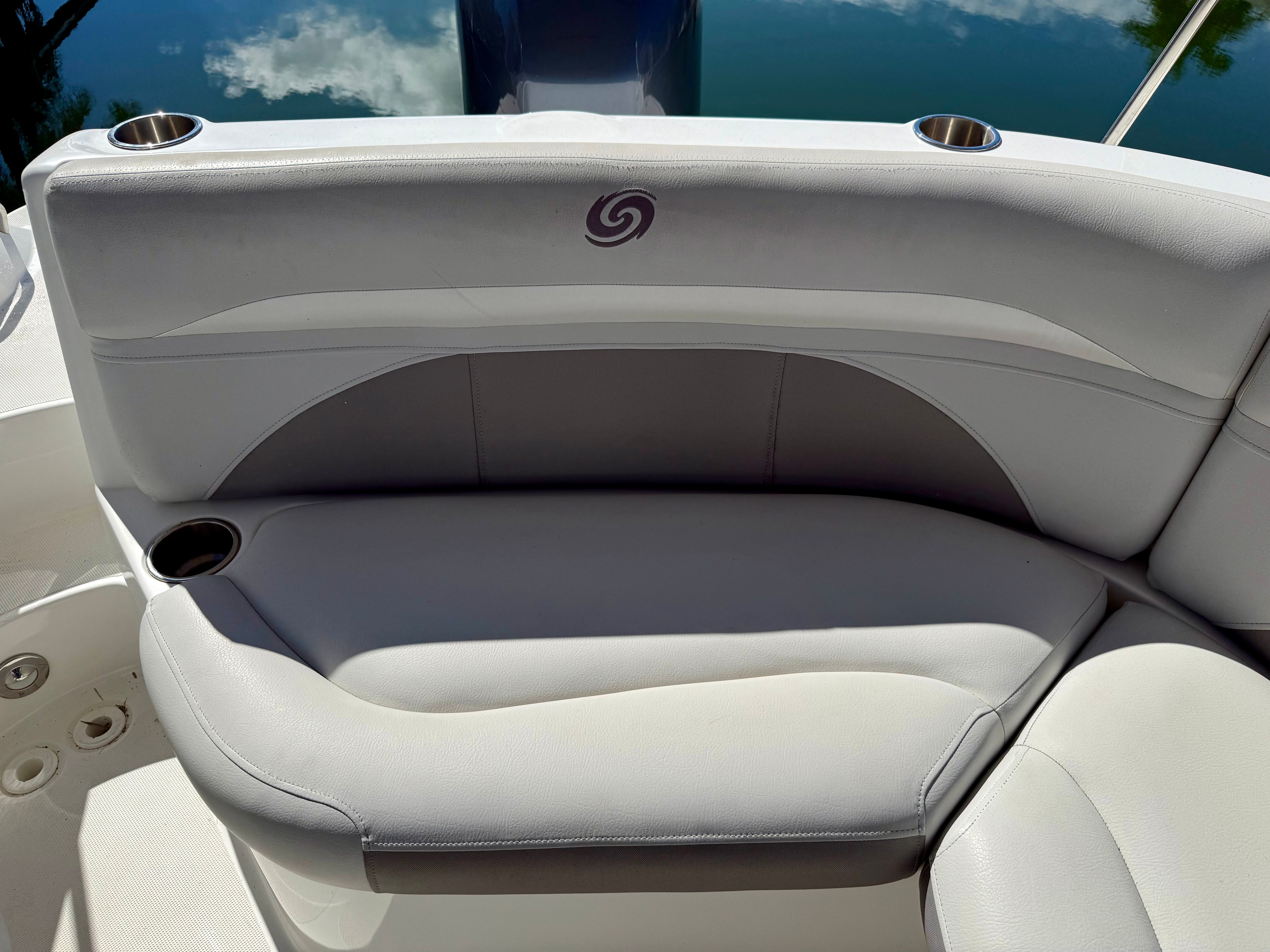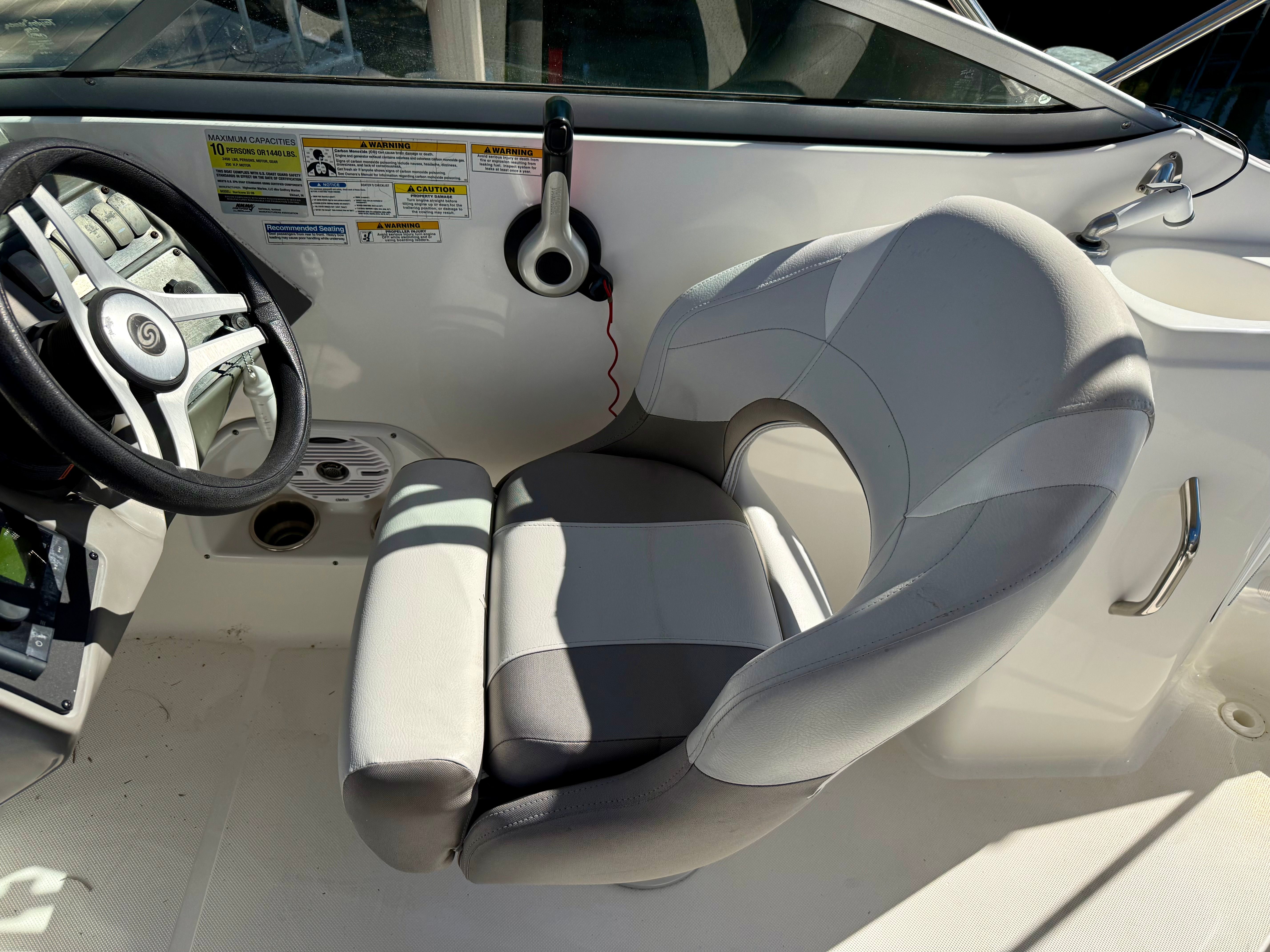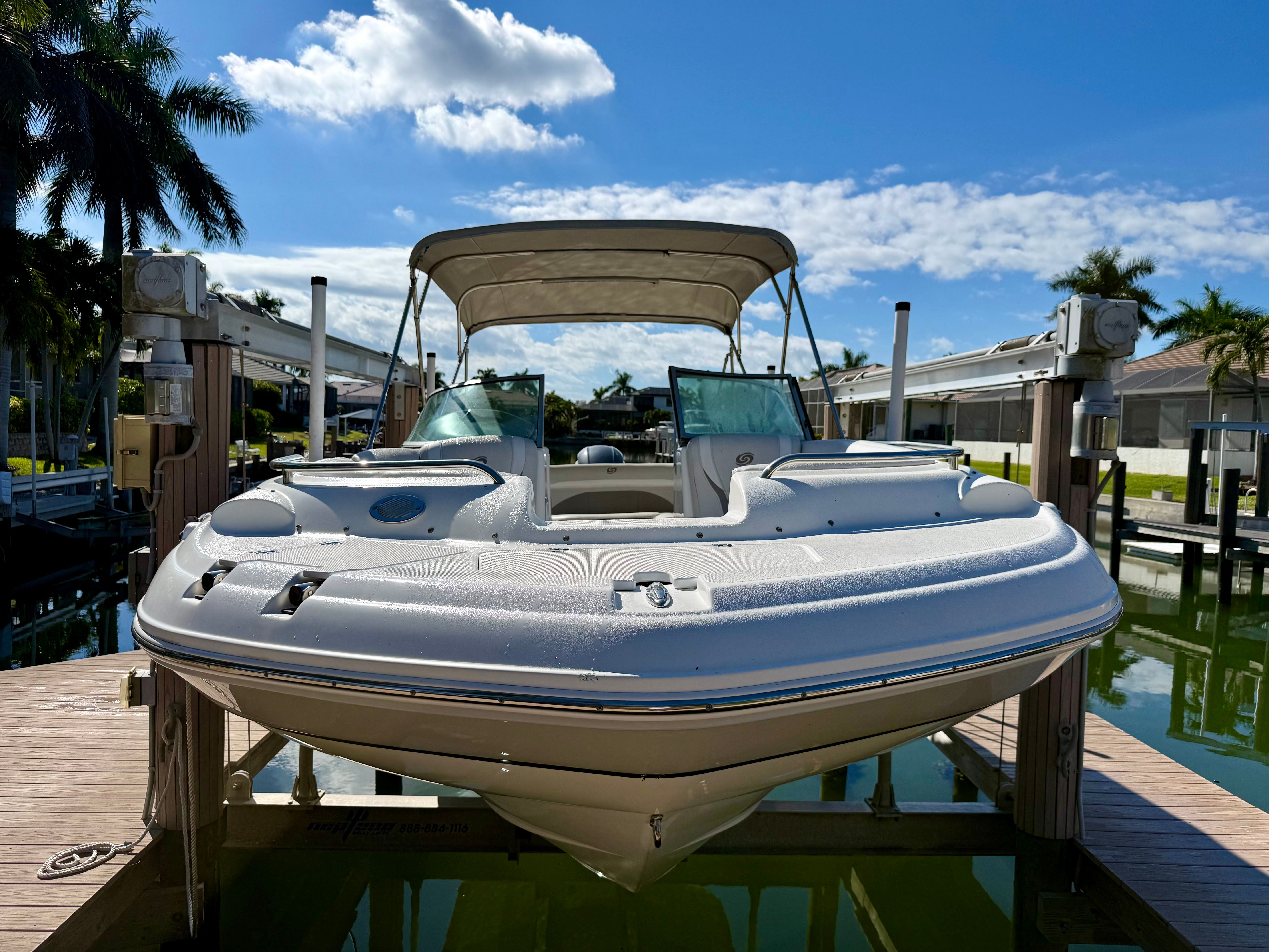 This 220DC comes well equipped with a Garmin 9-inch navigation display with integrated sonar for confident navigation, an AM/FM/Bluetooth stereo system with bow-to-stern speakers, a fully enclosed marine head, a convenient wet bar with freshwater sink, ample seating throughout, and generous storage options for gear and watersports equipment. Whether you’re out for a relaxing cruise, a day of sandbar hopping, or enjoying watersports with family and friends, this Hurricane is ready to deliver.
