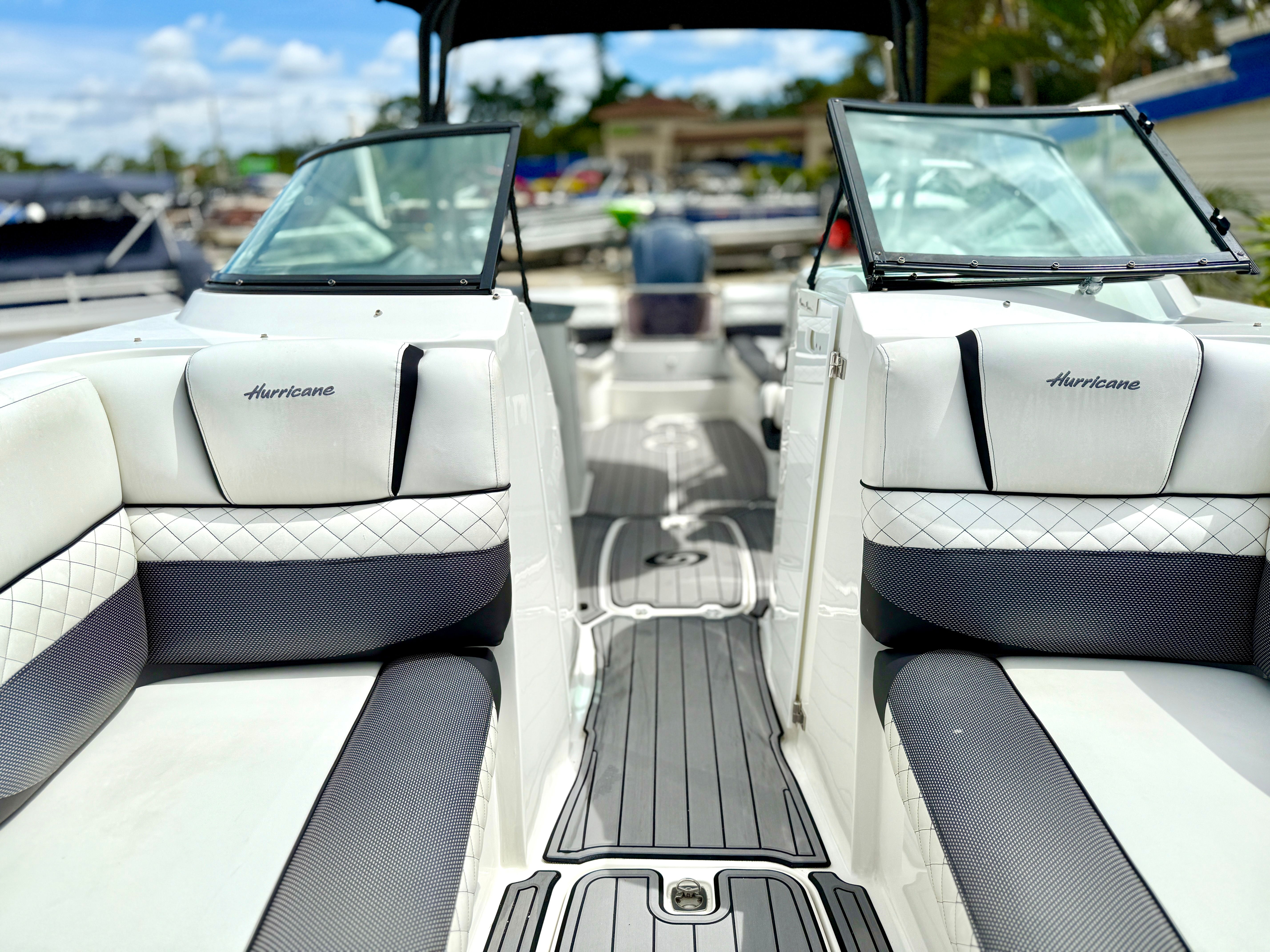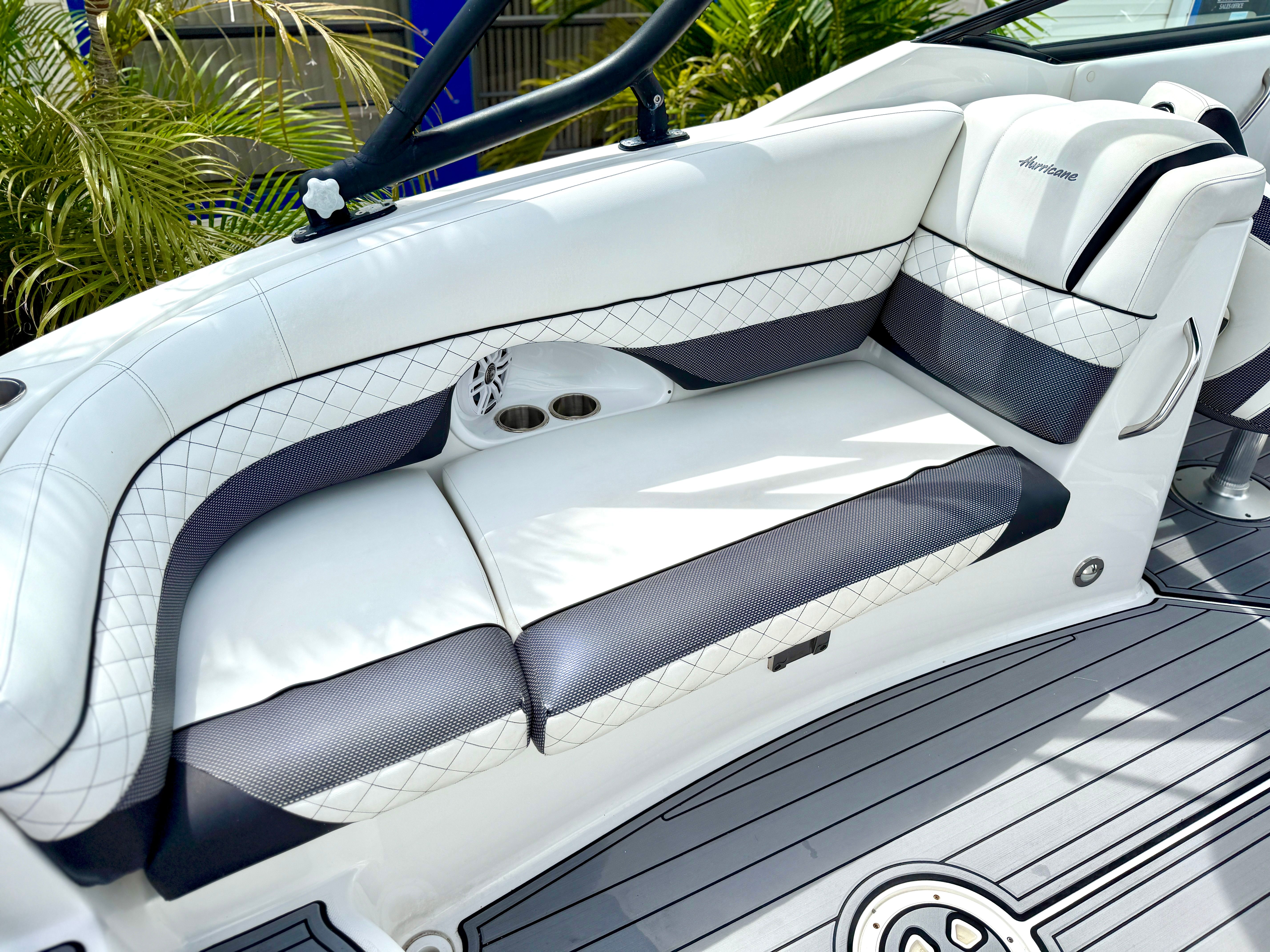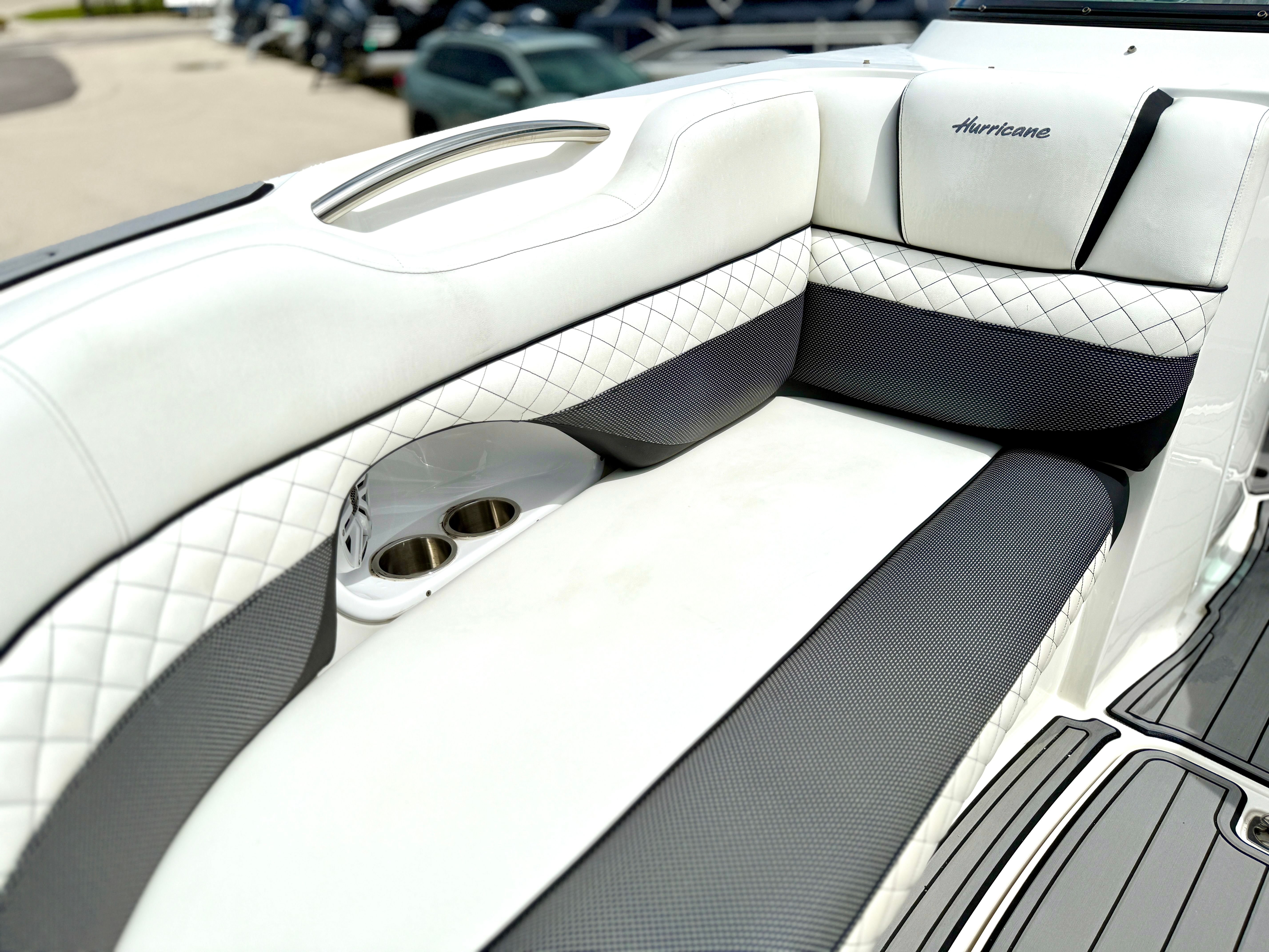 This Hurricane boat for sale truly shines in a variety of scenarios. Imagine taking your family out for a day of swimming, sunbathing, and picnicking on the open water. The spacious deck and comfortable seating make it easy to relax and enjoy each other’s company. For fishing enthusiasts, the Sundeck 2690 OB offers plenty of room to cast lines and store your catch, while the powerful engine ensures you can reach your favorite fishing spots with ease. If you’re looking for excitement, the boat’s performance capabilities make it perfect for towing water toys or exploring new waterways. Whether you’re seeking a luxurious escape or an action-packed adventure, this Dual Console boat adapts to your needs and delivers unforgettable experiences.