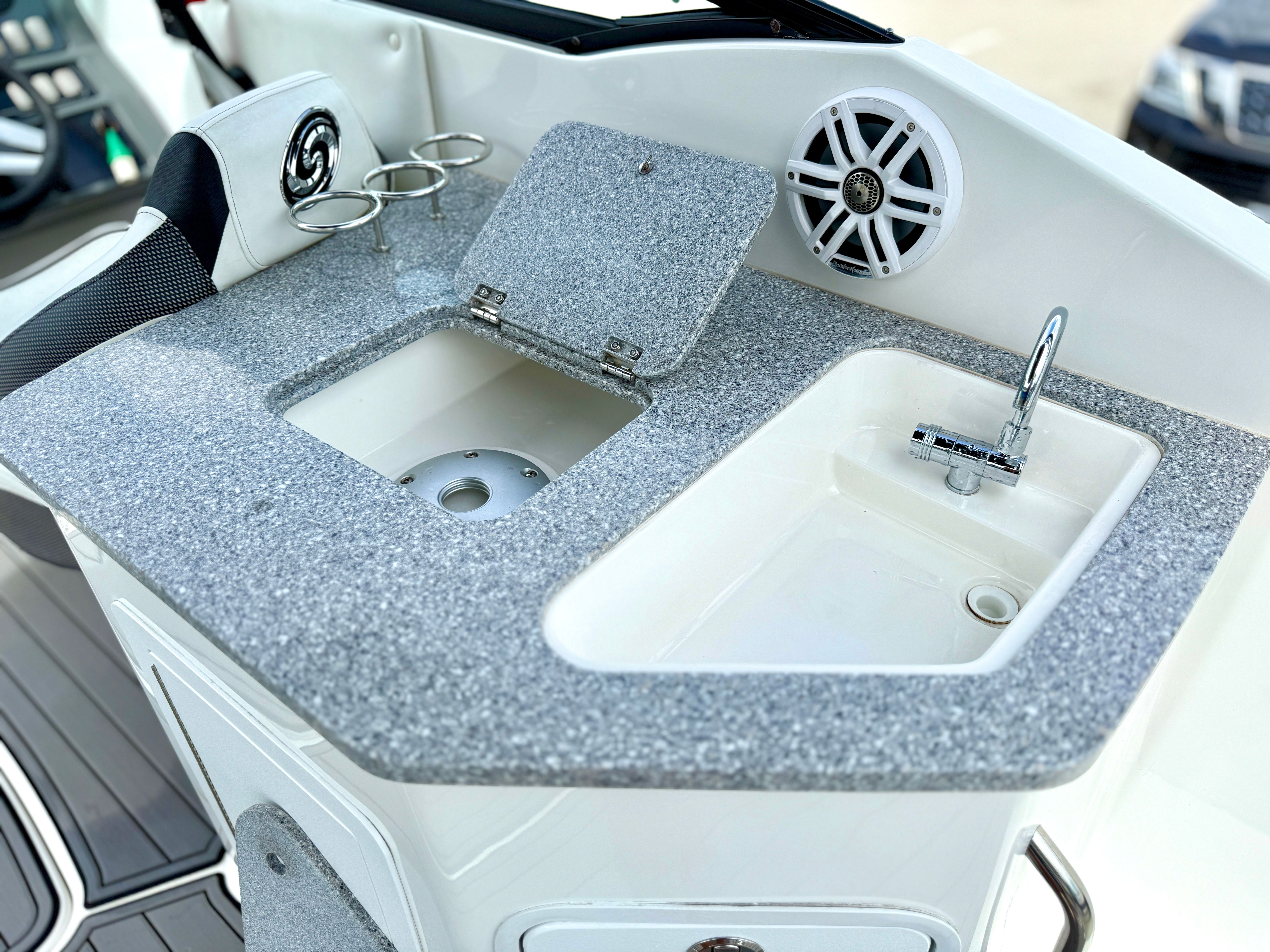 Powering the Hurricane Sundeck 2690 OB is a robust single engine with an impressive 300 horsepower. This setup ensures smooth acceleration, reliable handling, and plenty of power for towing water toys or navigating open waters. With 181 engine hours, this boat has been lightly used and is ready to deliver many more seasons of dependable performance. The combination of Hurricane’s renowned hull design and the powerful outboard engine means you’ll enjoy a stable, responsive ride, whether you’re cruising along the shoreline or heading out for a day of adventure.