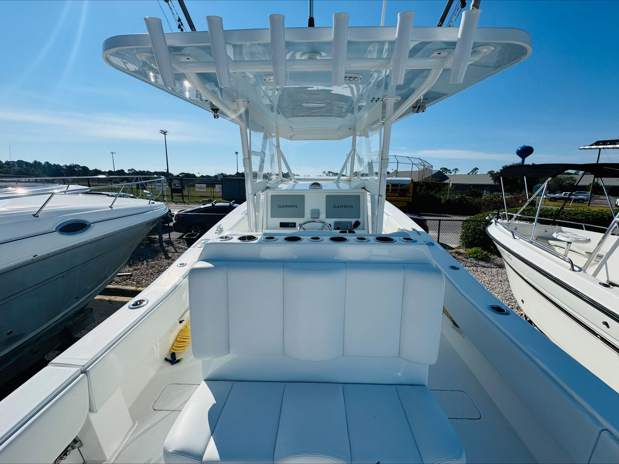 Equipped with three powerful engines delivering a combined 900 horsepower, the Invincible 36 Open Fisherman is built for speed and agility. With only 585 engine hours, these motors have plenty of life left, offering reliable performance for years to come. Whether you’re chasing game fish offshore or cruising along the coastline, this Center Console boat responds with impressive acceleration and smooth handling. The triple-engine setup ensures you have the power to tackle rough waters, reach distant fishing grounds, and enjoy exhilarating rides with confidence.