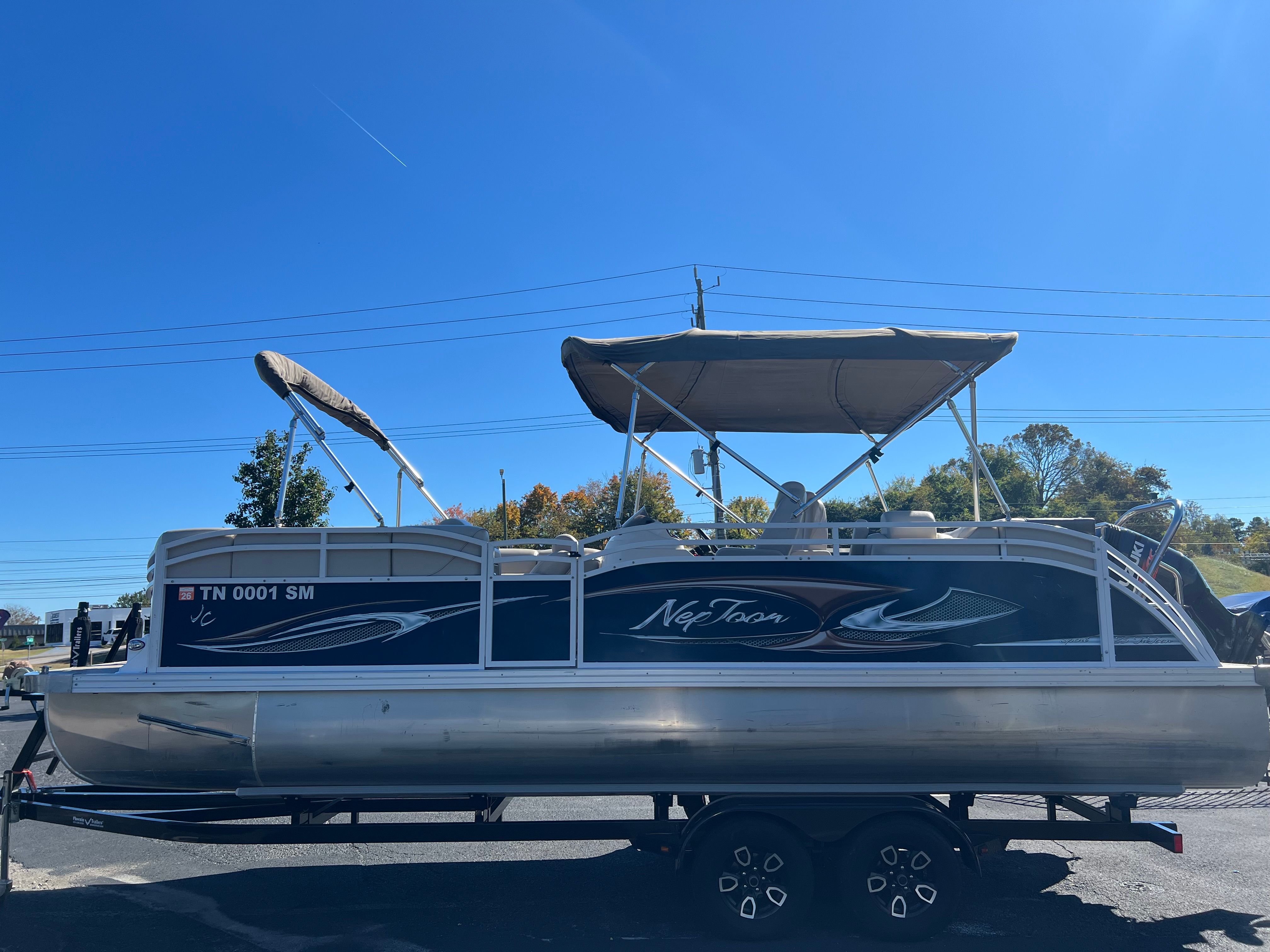 The Jc Neptoon 23 is as practical as it is enjoyable. Its ample storage space makes it easy to stow away life jackets, fishing gear, coolers, and other essentials, keeping the deck clutter-free and organized. The pontoon design simplifies docking and maneuvering, making it a great choice for both experienced boaters and newcomers. Fuel efficiency is another advantage, allowing you to spend more time on the water and less time refueling.Maintenance is straightforward thanks to the single engine setup and durable construction. With 434 engine hours, this used Jc boat for sale has been gently used and is ready for many more adventures. Whether you’re planning short outings or extended trips, the Neptoon 23 offers the reliability and convenience you need for hassle-free boating.