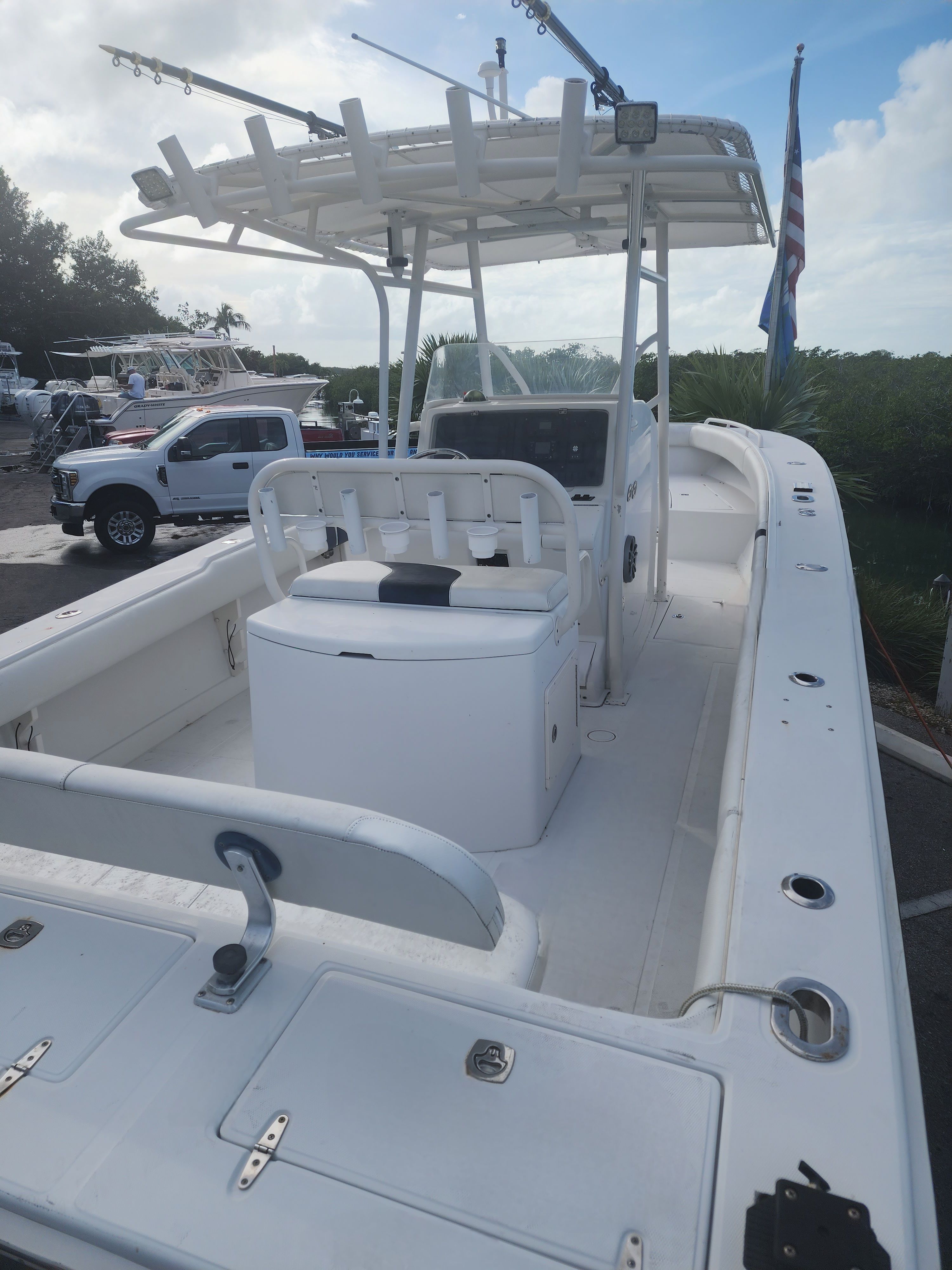 Practicality is a key advantage of the Jupiter 31 Center Console. The spacious deck provides ample storage for fishing gear, water toys, and other essentials, ensuring that everything you need is always within reach. The Center Console layout makes docking and maneuvering a breeze, even in tight spaces, while the efficient twin-engine setup offers both power and fuel efficiency for longer trips.Whether you are planning a weekend getaway, a day of serious fishing, or a leisurely cruise with friends, the Jupiter 31 is designed to make every outing enjoyable and hassle-free. The durable construction and reliable performance mean you can spend more time on the water and less time worrying about maintenance or repairs. This used Center Console boat is a smart investment for anyone who values both fun and functionality.