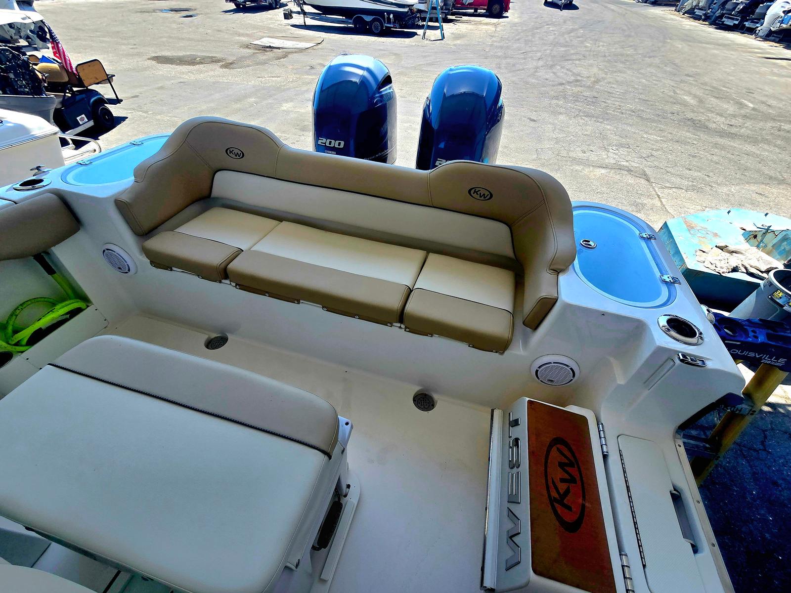 This very clean 2020 KeyWest 263 FS has many amenities such as side step dive door with an integrated ladder, forward seating with removable backrest in a full width rear bench seat, very large dual live wells located in the stern. Also has dual large in floor fish boxes. This is powered by twin Yamaha 200s with about 110 hours.