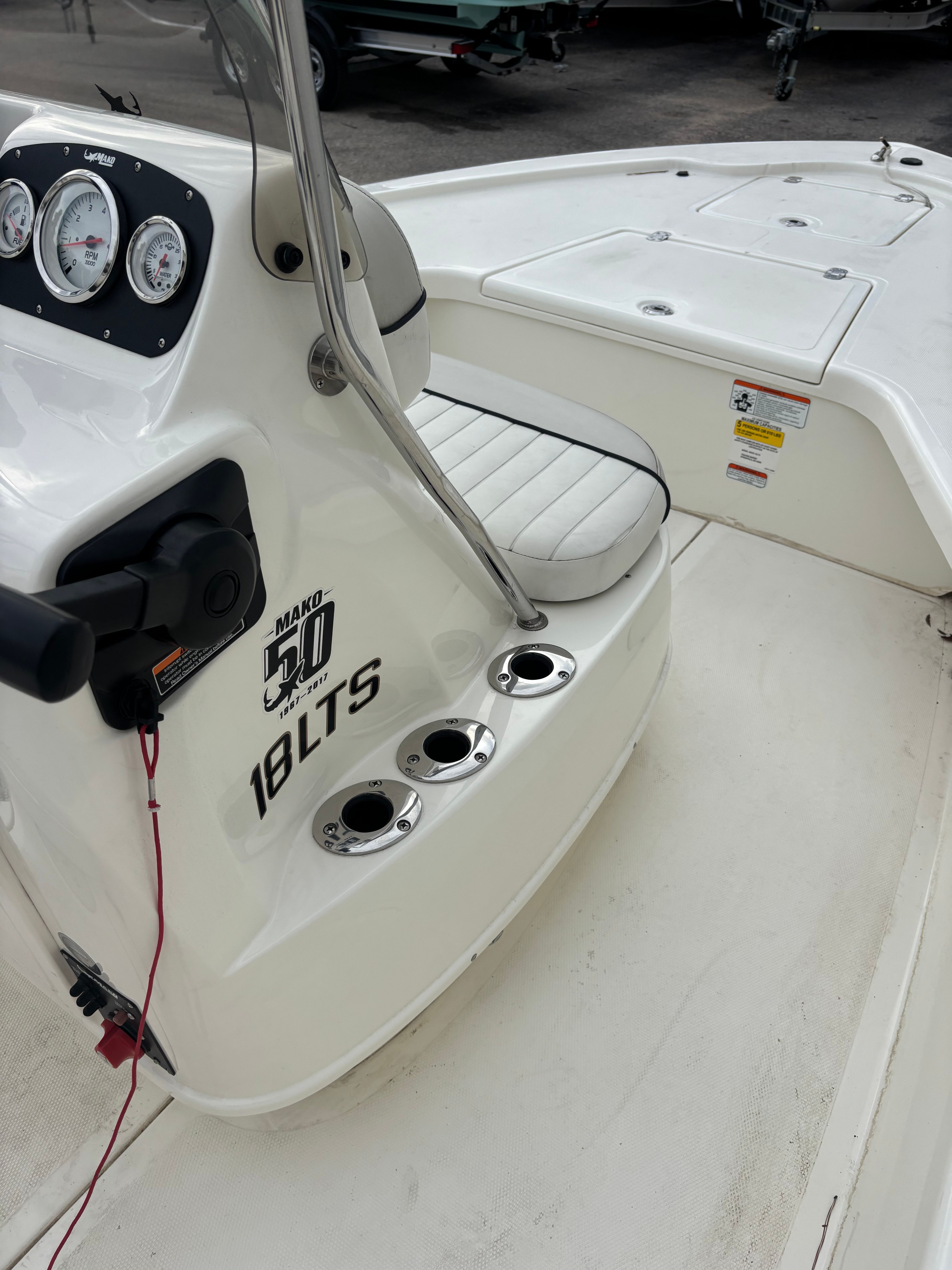 The 2017 Mako 18 LTS is thoughtfully designed to maximize both utility and comfort. Its Center Console layout provides unobstructed 360-degree access, making it a favorite among anglers who need freedom of movement while casting or reeling in the catch of the day. The spacious deck allows for multiple passengers to move about comfortably, while the sturdy hull ensures a stable ride even in choppier conditions.This Mako boat for sale is built with high-quality materials and attention to detail, ensuring long-lasting performance and reliability. The Center Console design also offers ample storage space for gear, tackle, and personal items, keeping the deck clutter-free and organized. The ergonomic helm station is designed for ease of use, with intuitive controls and clear instrumentation that make piloting the boat a pleasure.