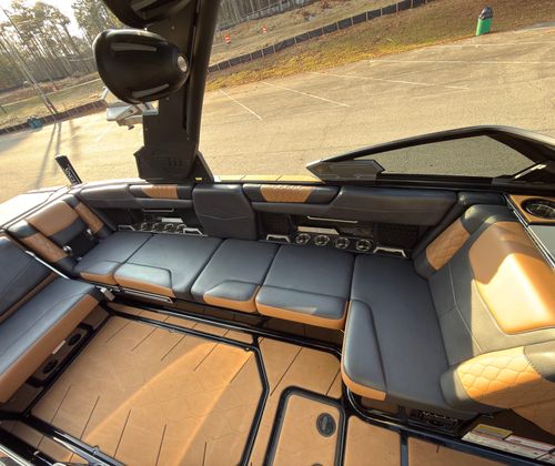 At the heart of the Malibu M240 is a single, high-performance engine boasting an impressive 606 horsepower. This powerhouse delivers exceptional acceleration, smooth handling, and the torque needed to create massive wakes and waves for all your favorite water sports. Whether you’re wakeboarding, waterskiing, or simply enjoying a fast-paced cruise, the M240’s engine ensures a responsive and thrilling ride every time. With only 119 engine hours, you can trust in its reliability and longevity, making this Ski & Wakeboard boat for sale a smart investment for years of aquatic adventures.