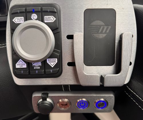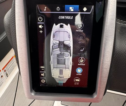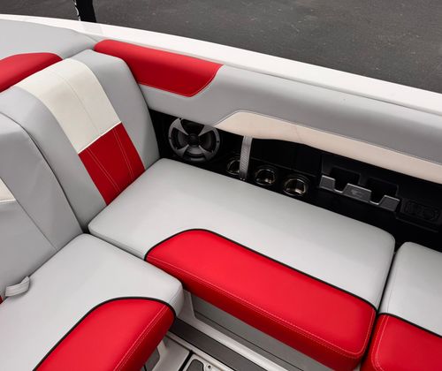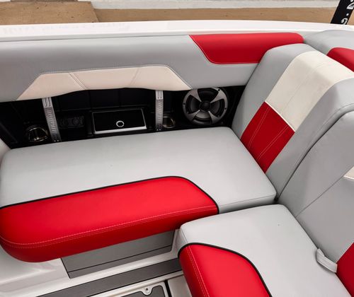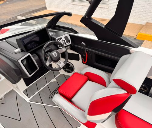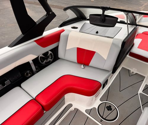 Designed for world-class wakes and waves, this boat features the Surf Gate surf system, Power Wedge, plug-and-play ballast, premium WetSounds audio, dual touchscreen controls with rider profiles, and luxury seating throughout.