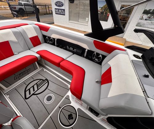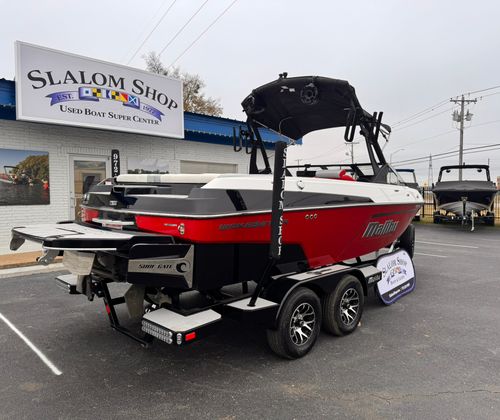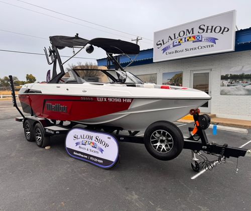 Now available on consignment at our Used Boat Super Center in Lewisville, this 2020 Malibu Wakesetter 20 VTX is a high-performance wake and surf boat built for serious riders and luxury cruising. Finished in striking red metal flake and black gelcoat with a white and red-accented interior, this VTX is powered by the reliable Indmar Raptor 6.2L Closed-Cooled engine producing 410 horsepower with only 19 hours.
