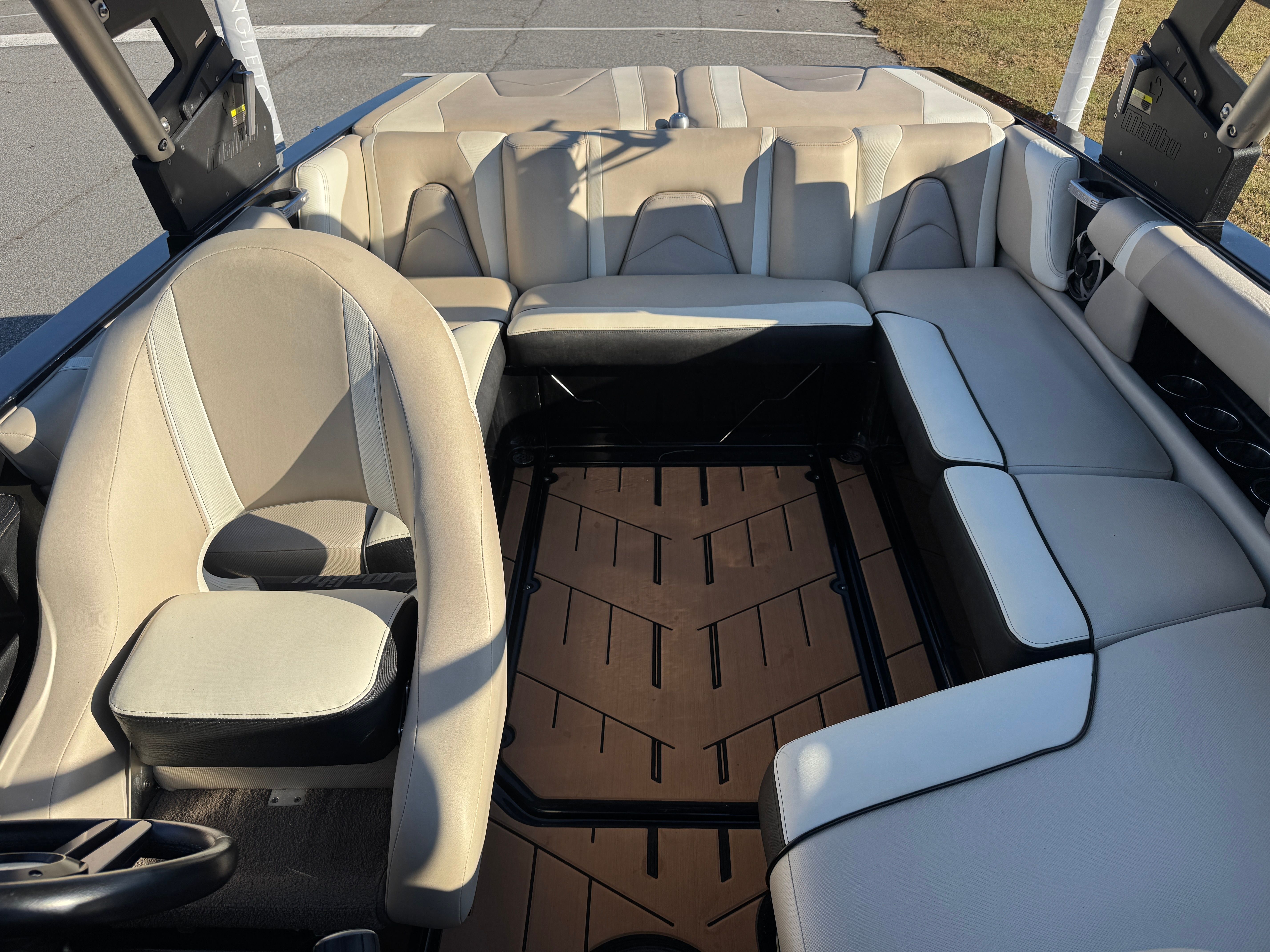 6.2L PCM 410 MONSOON MOTOR (264 HRS) -POWER WEDGE II / SURF GATES -FOLDABLE TOWER -(2) TOWER MOUNTED REV 8 TOWER SPEAKERS -SWIVEL BOARD RACKS -SUBWOOFER -PNP BAGS -SEA DECK FLOORING -COURTESY LIGHTS -COVER INCLUDED MUCH MORE THAN WHAT IS LISTED HERE. TRAILER SHOWN IS NOT INCLUDED.
